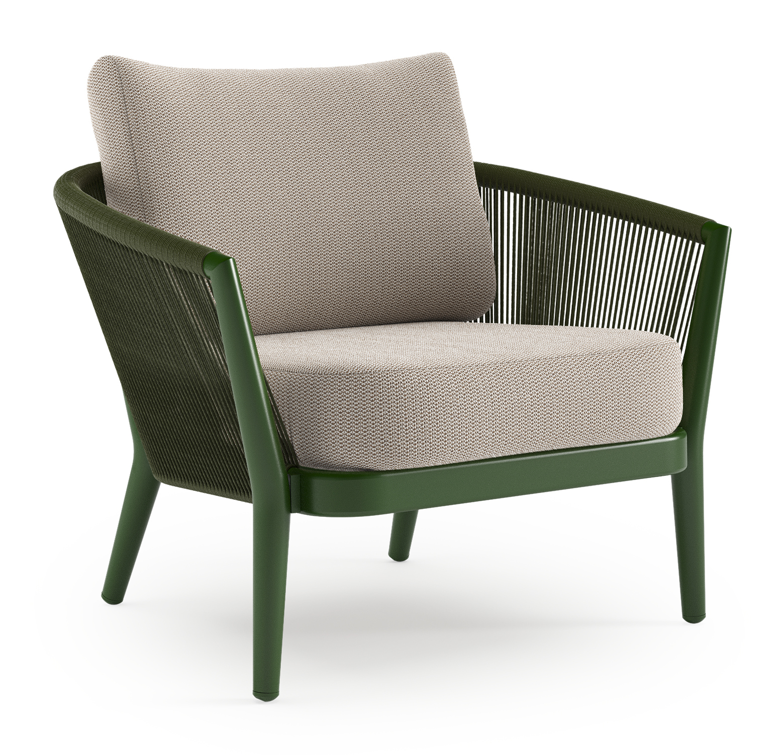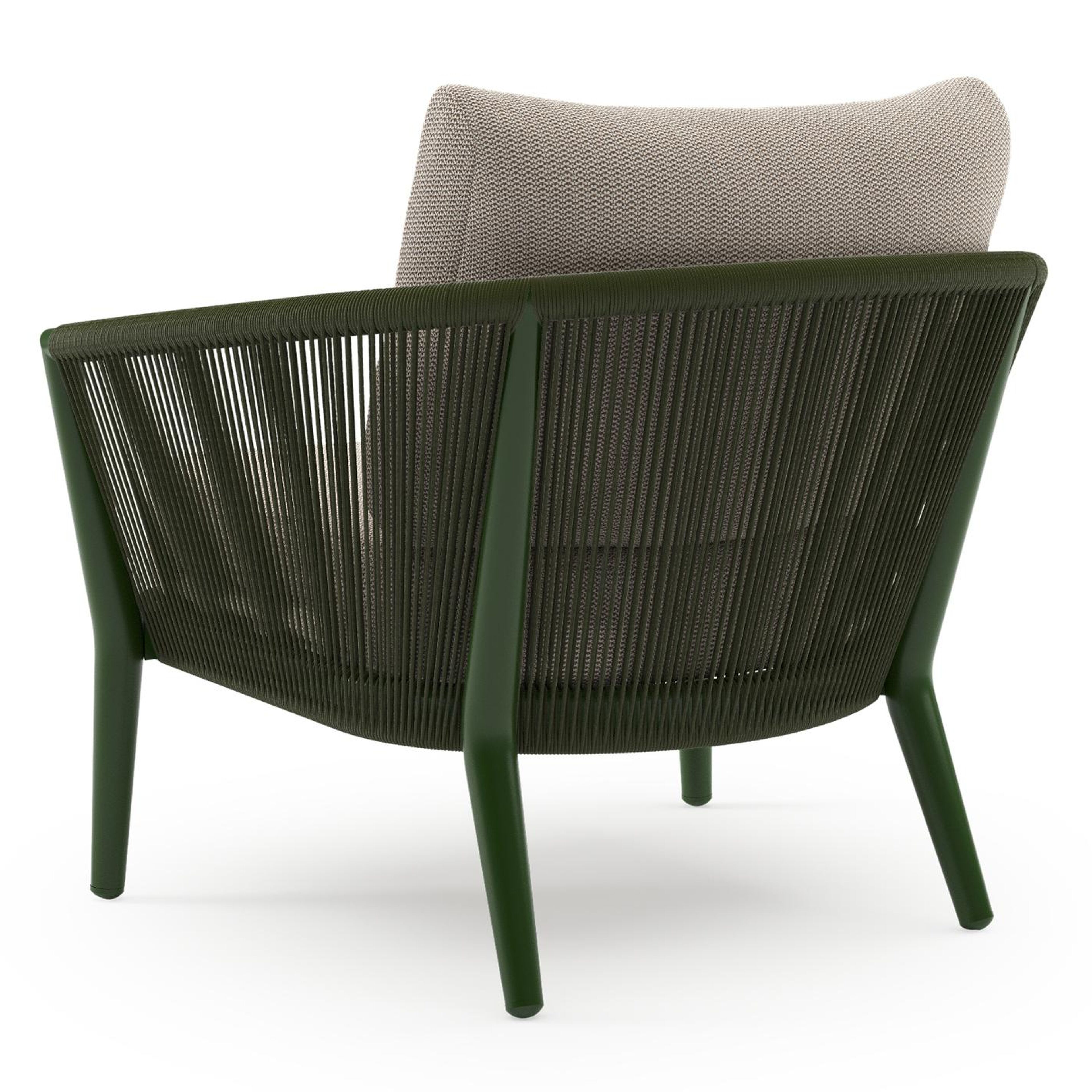 Orso loungestoel in groen aluminium en groen verticaal geweven ronde rope met Lopi Fossil all weather sunbrella® luxe kussen | Exterioo tuinmeubelen