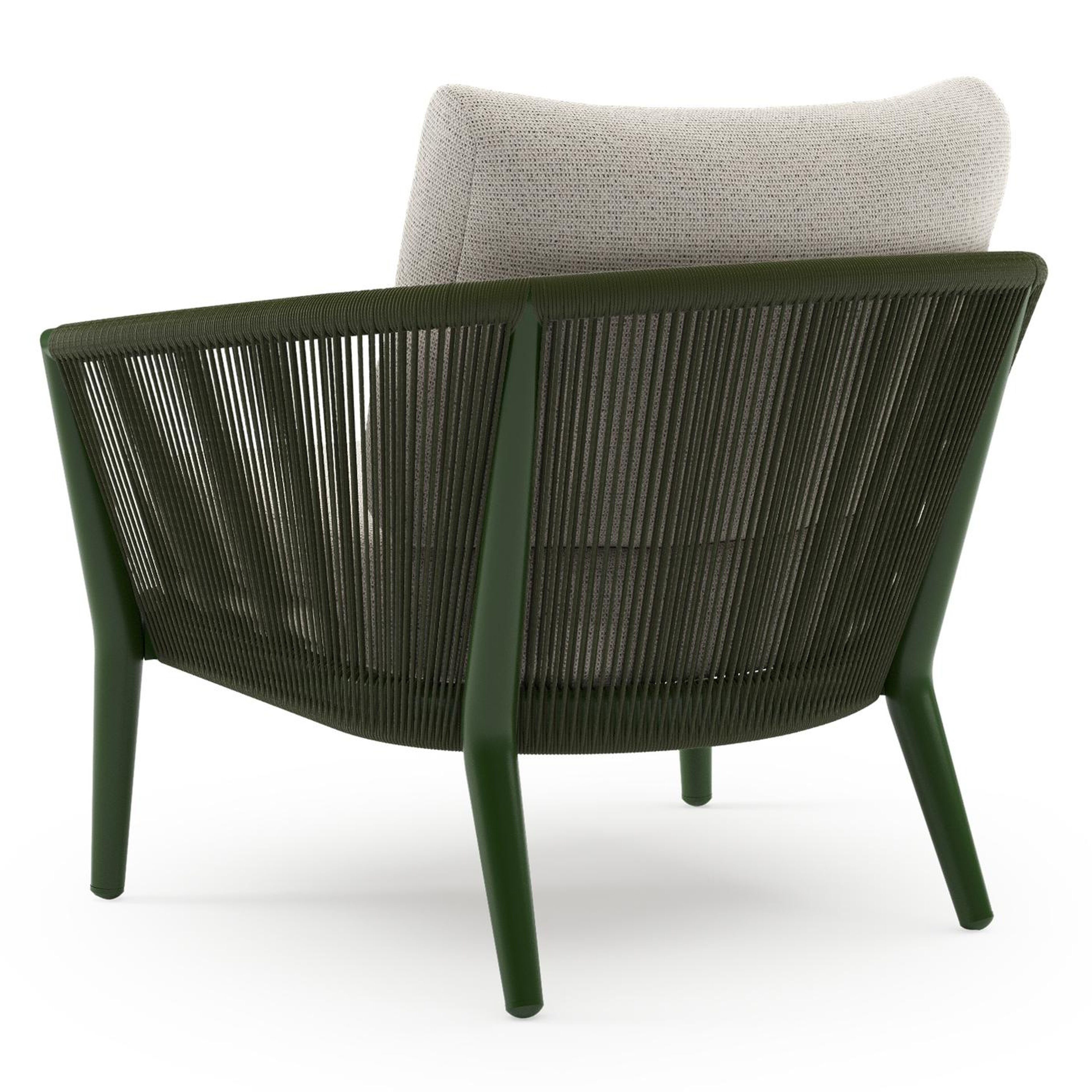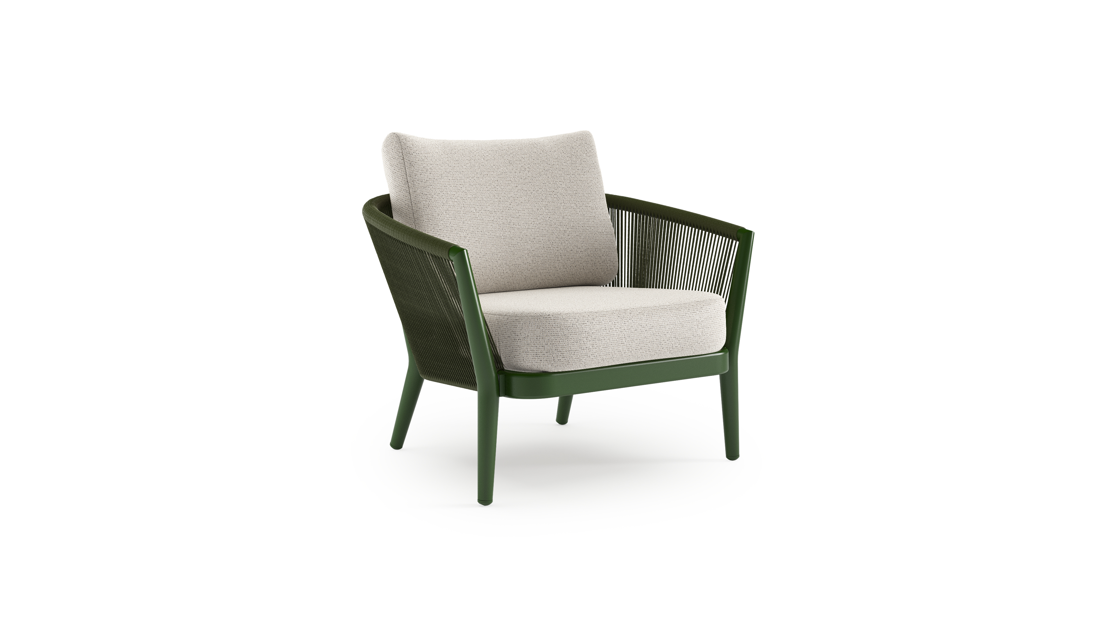 Orso loungestoel in groen aluminium en groen verticaal geweven ronde rope met Firenze Natural all weather solica kussen | Exterioo tuinmeubelen