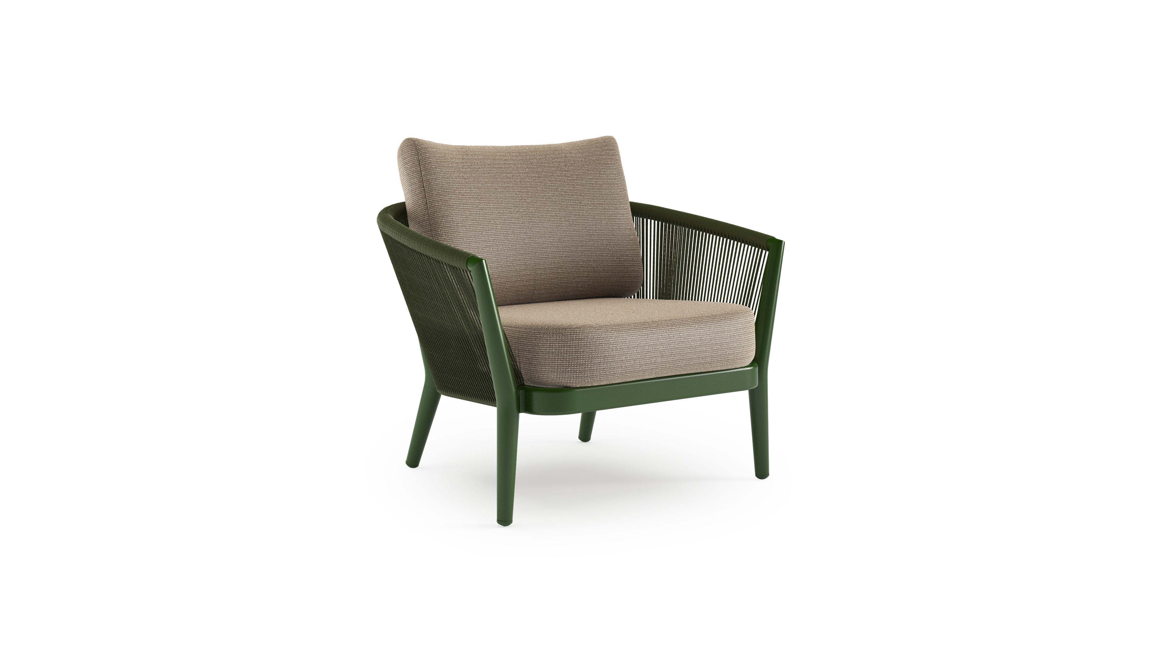 Orso loungestoel in groen aluminium en groen verticaal geweven ronde rope met Firenze Earth all weather solica kussen | Exterioo tuinmeubelen