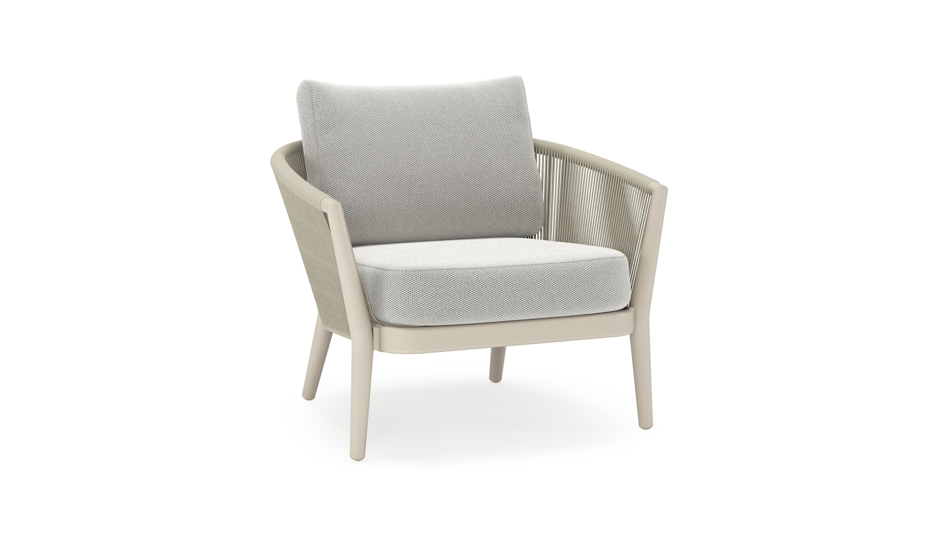 Orso loungestoel in beige aluminium en beige verticaal geweven ronde rope met Lopi Ash all weather sunbrella® luxe kussen | Exterioo tuinmeubelen