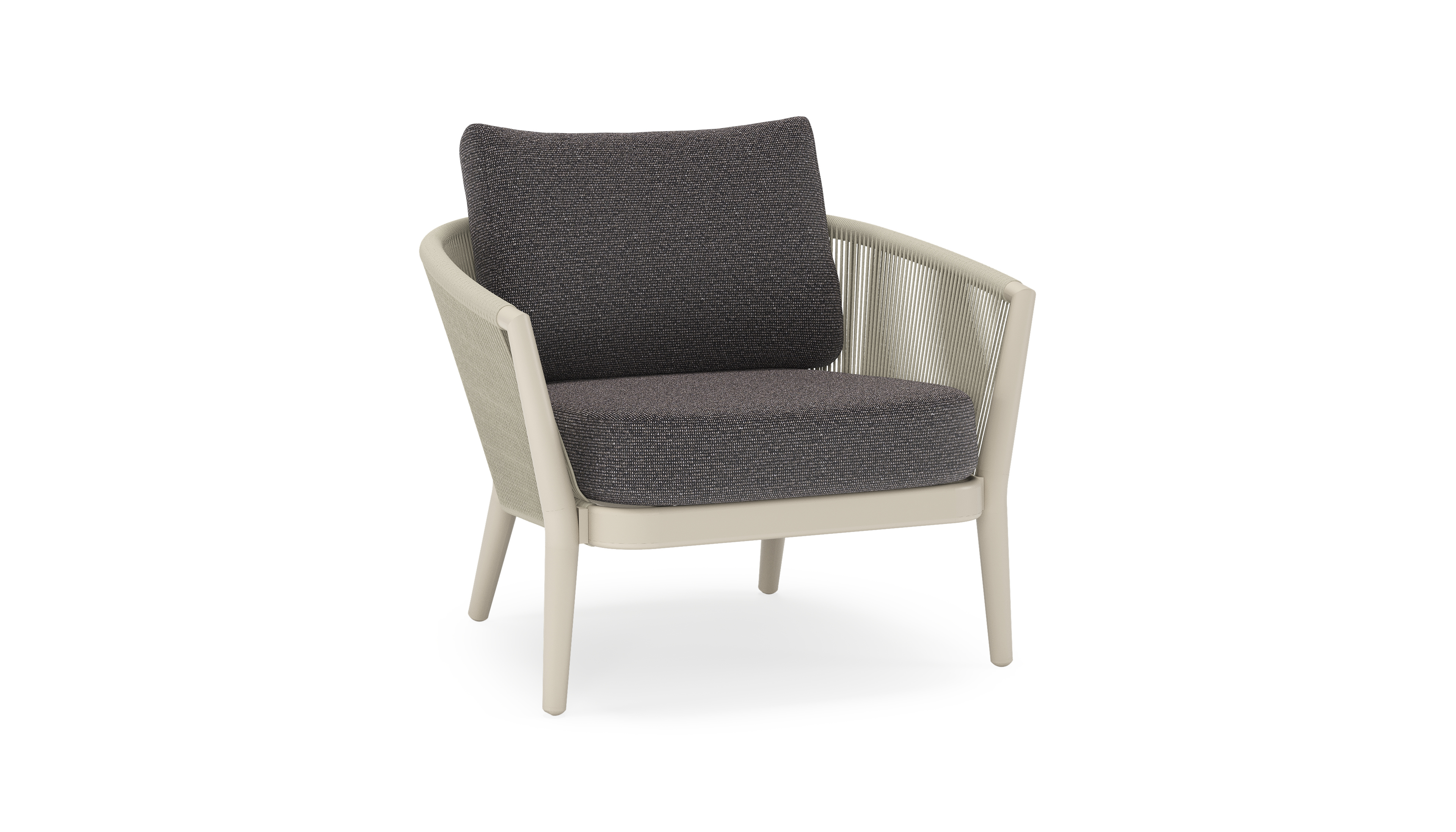 Orso loungestoel in beige aluminium en beige verticaal geweven ronde rope met Firenze Tunder all weather solica kussen | Exterioo tuinmeubelen