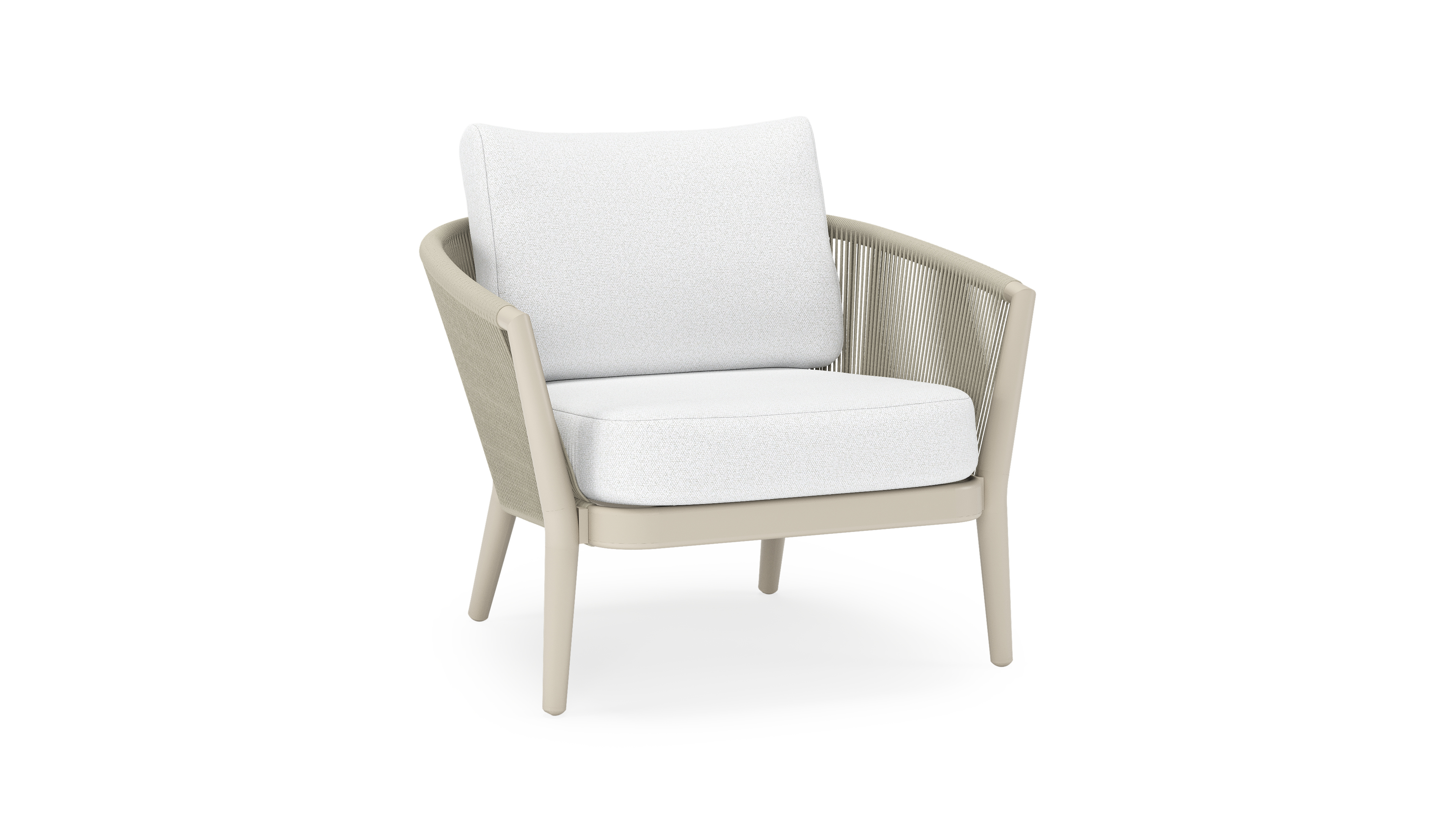 Orso loungestoel in beige aluminium en beige verticaal geweven ronde rope met Ego Birch all weather solica kussen | Exterioo tuinmeubelen