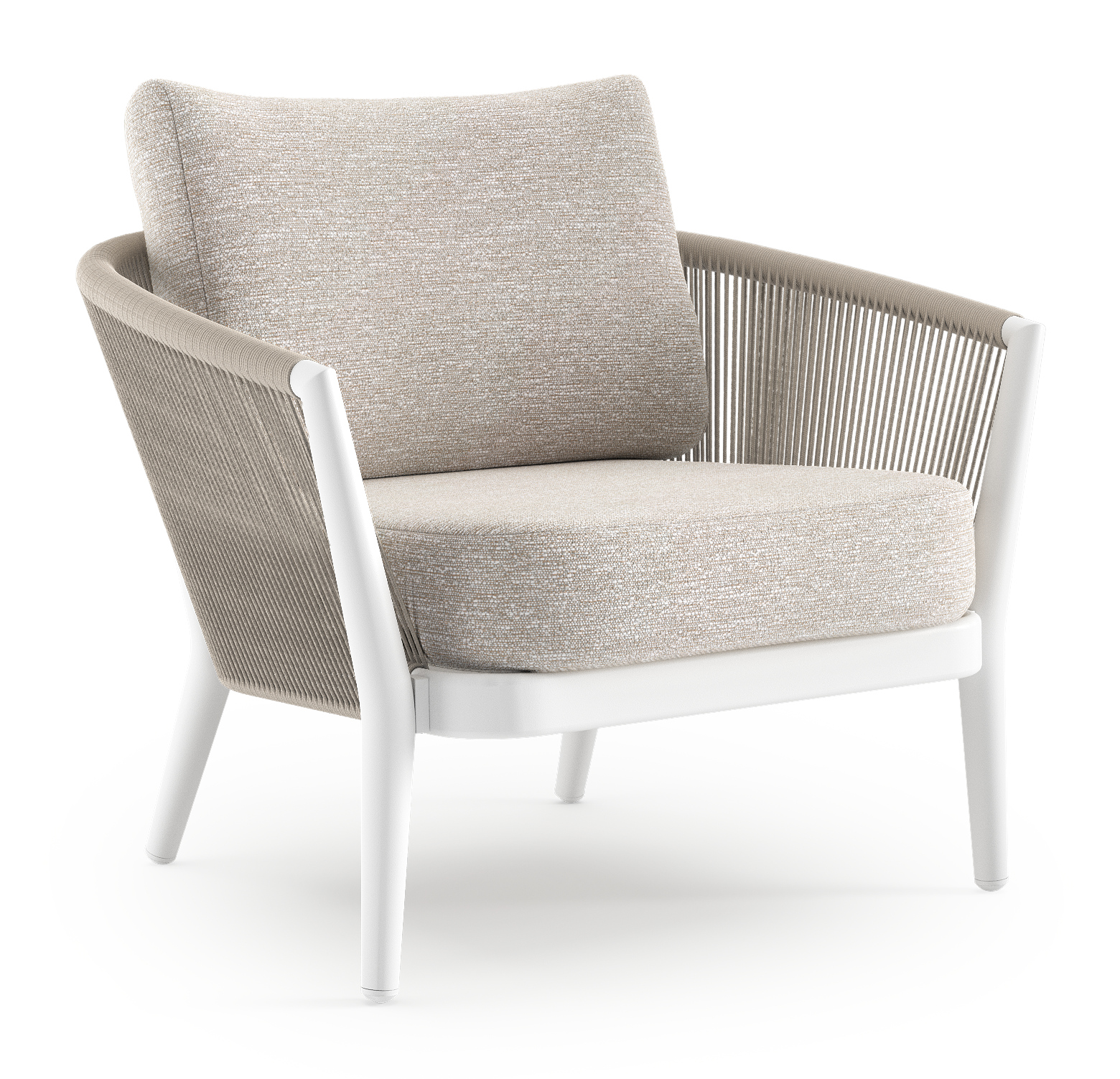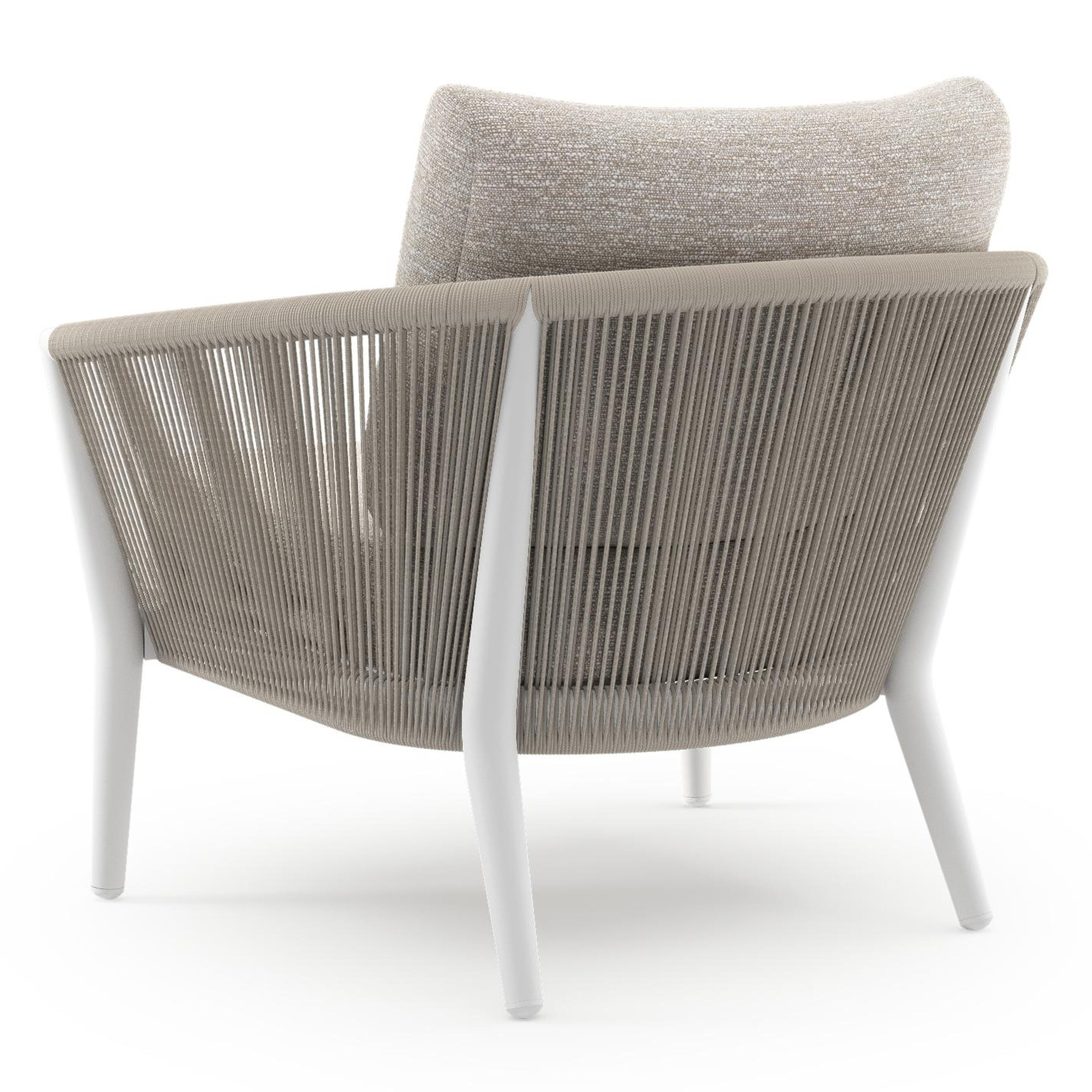 Orso loungestoel in wit aluminium en beige verticaal geweven ronde rope met Tundra Sand all weather sunbrella® luxe kussen | Exterioo tuinmeubelen