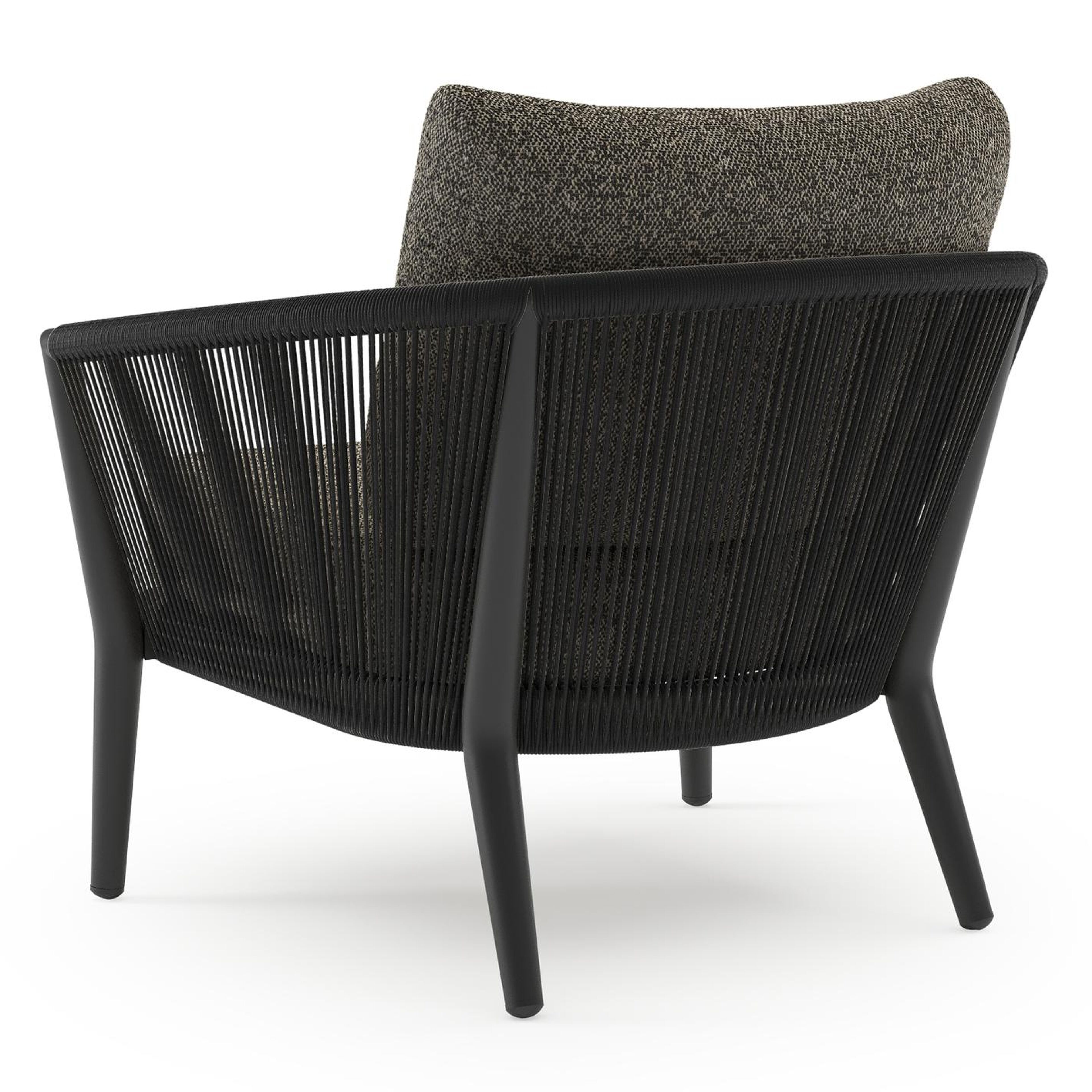 Orso loungestoel in zwart aluminium en zwart verticaal geweven ronde rope met Marbella Tunder all weather cosytica kussen | Exterioo tuinmeubelen