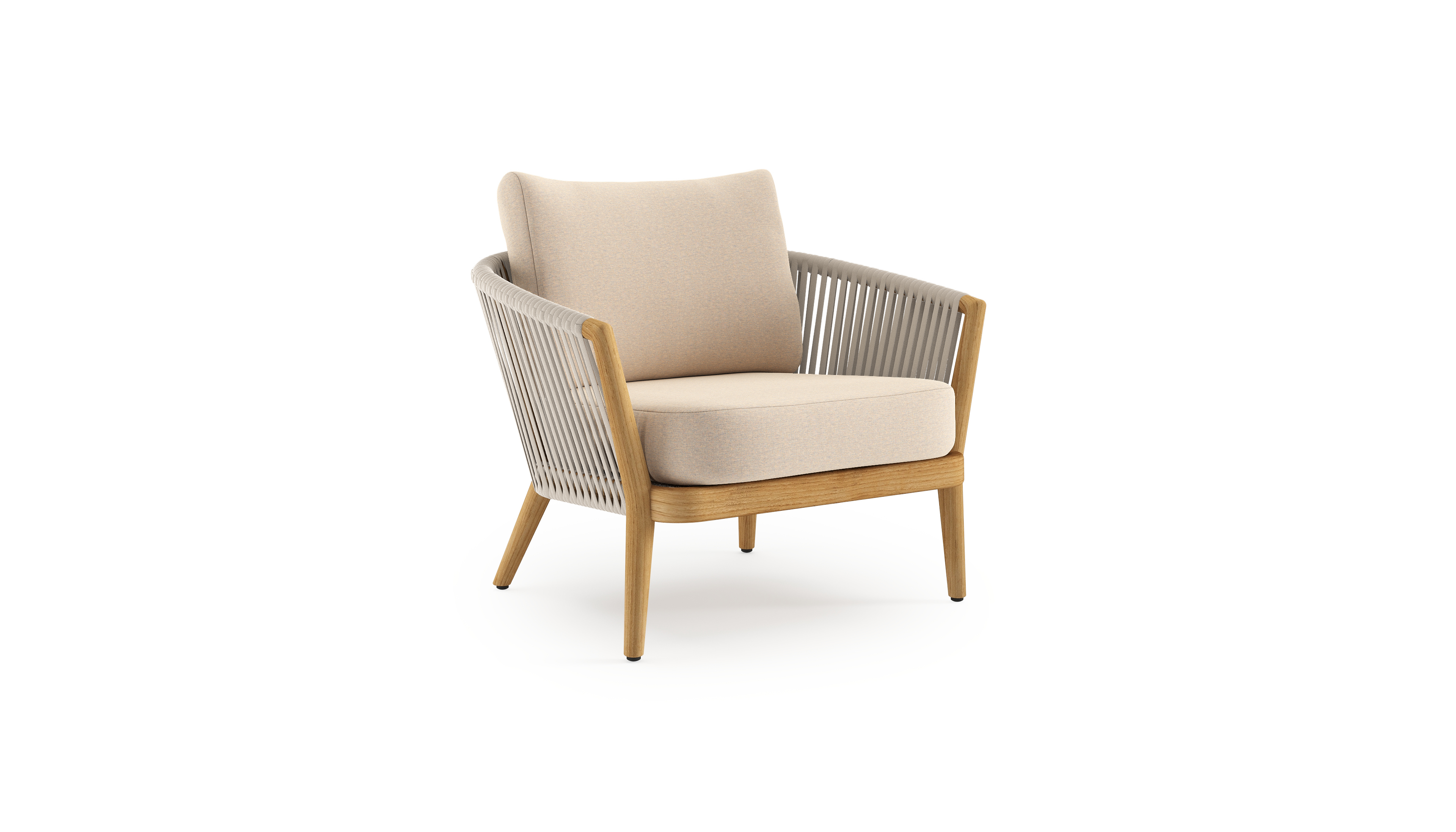 De Orso Lounge vormt een harmonieus geheel door modern verticaal weefwerk te combineren met authentiek gecertificeerd teak.