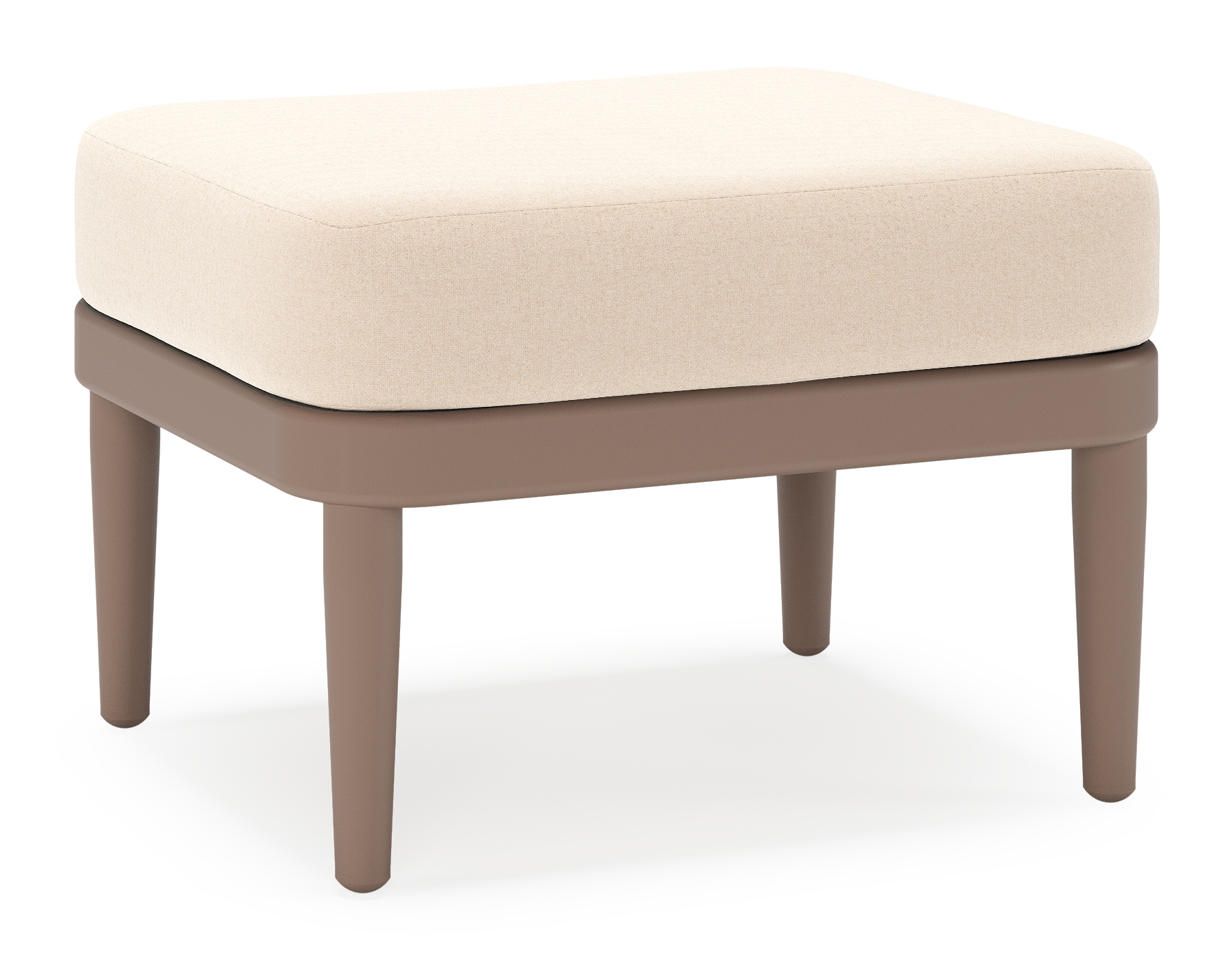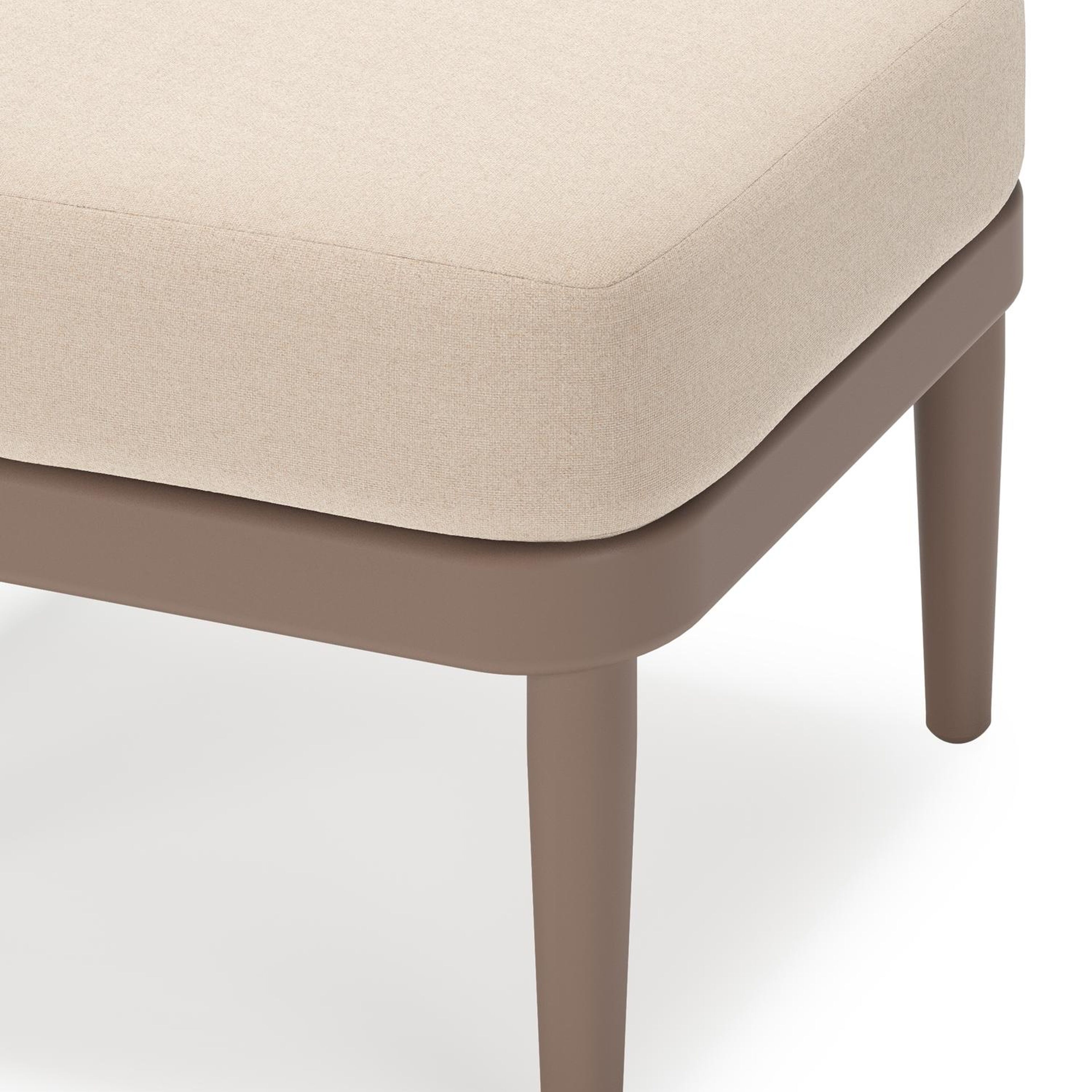 Orso poef in taupe aluminium met Natte Linen Chalk all weather sunbrella® luxe kussen | Exterioo tuinmeubelen