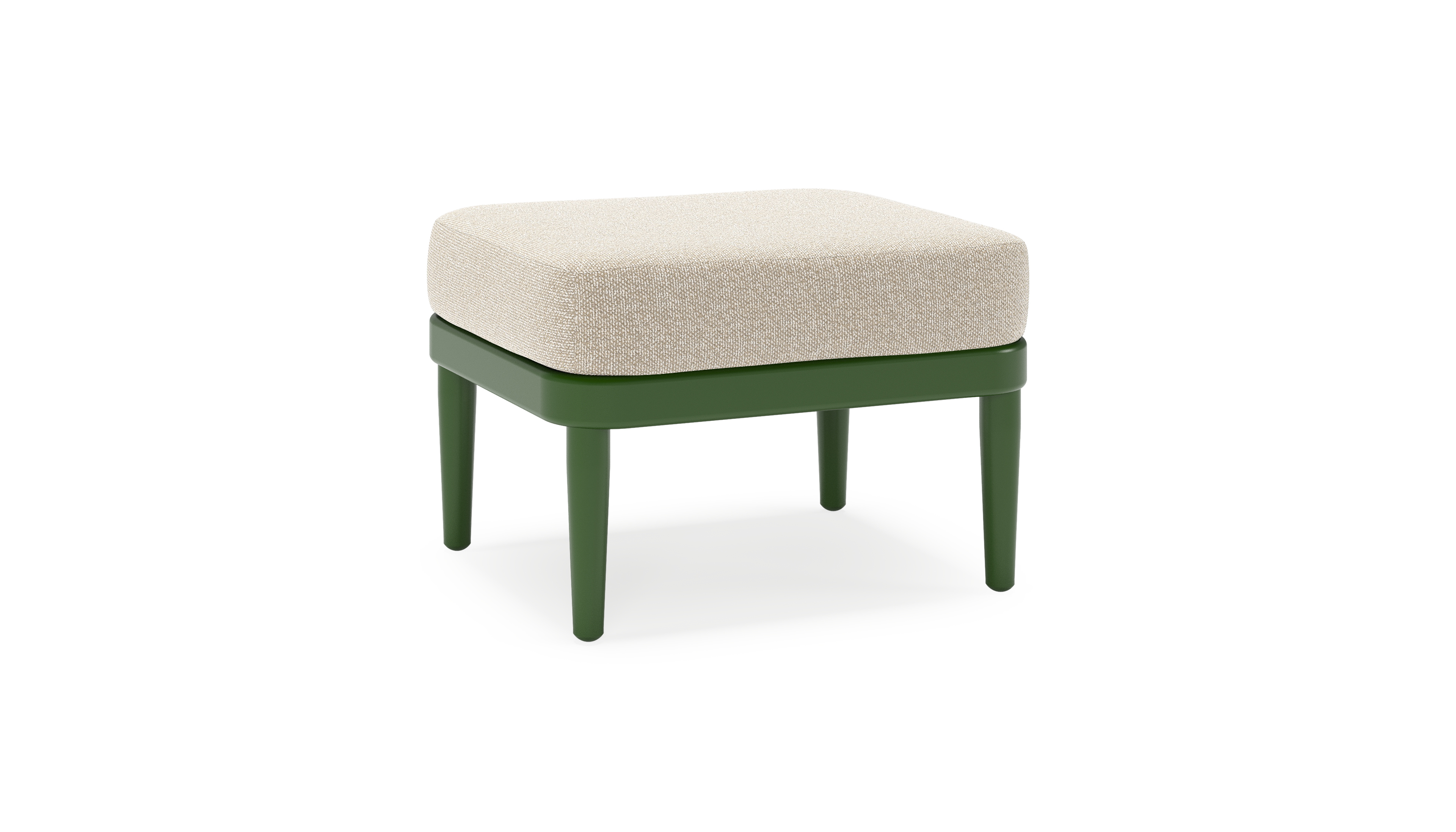 Orso poef in groen aluminium met Marbella Ecru all weather cosytica kussen | Exterioo tuinmeubelen
