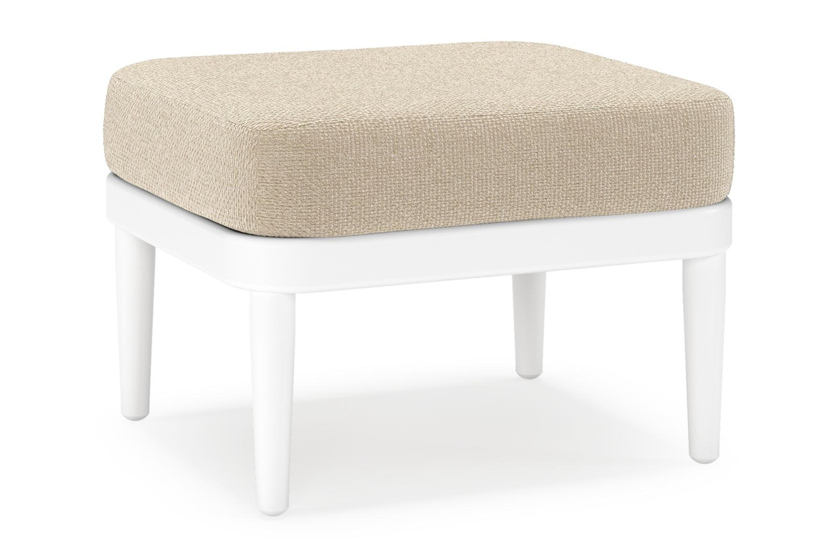 Orso poef in wit aluminium met Althea Chalk all weather cosytica kussen | Exterioo