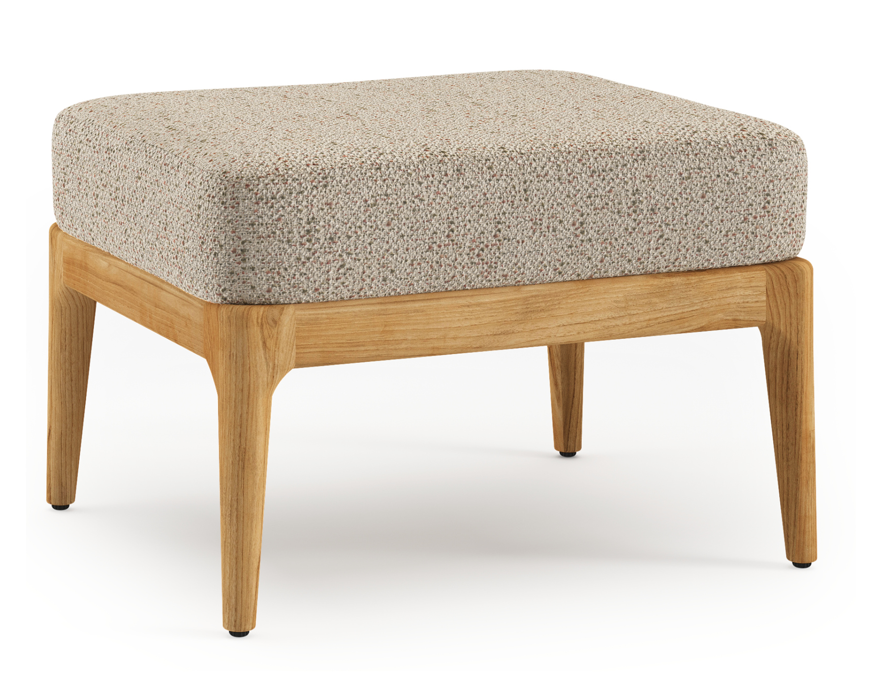 Orso poef in teak met Bora Jungle all weather cosytica kussen | Exterioo tuinmeubelen