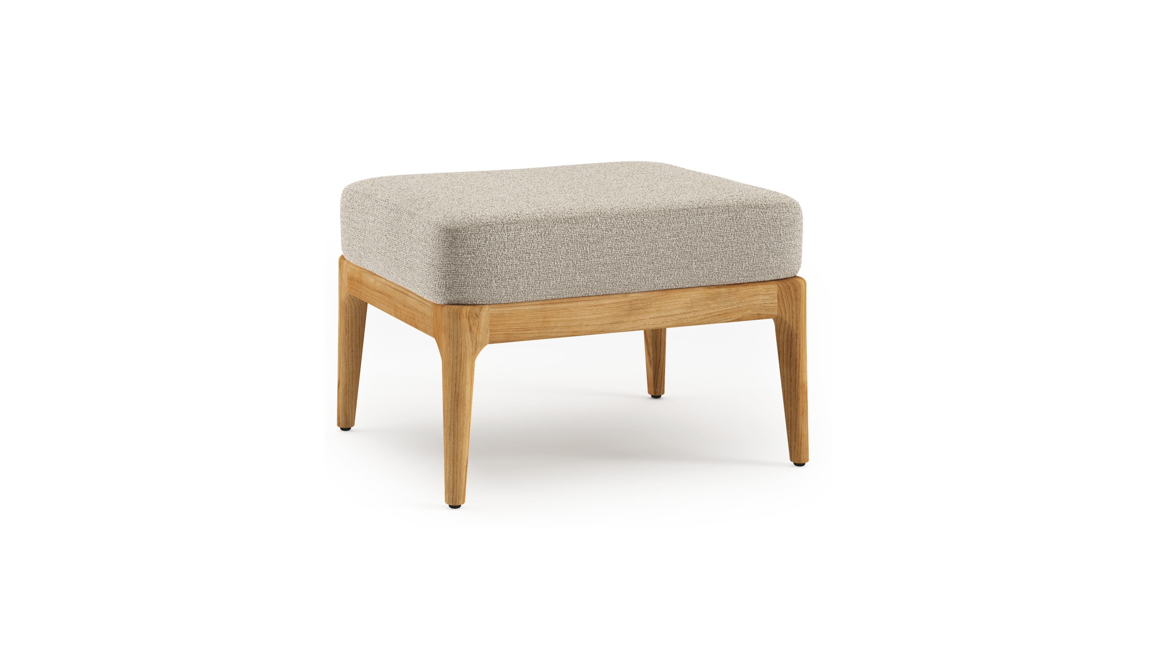 Orso poef in teak met Catania Greige all weather cosytica kussen | Exterioo tuinmeubelen