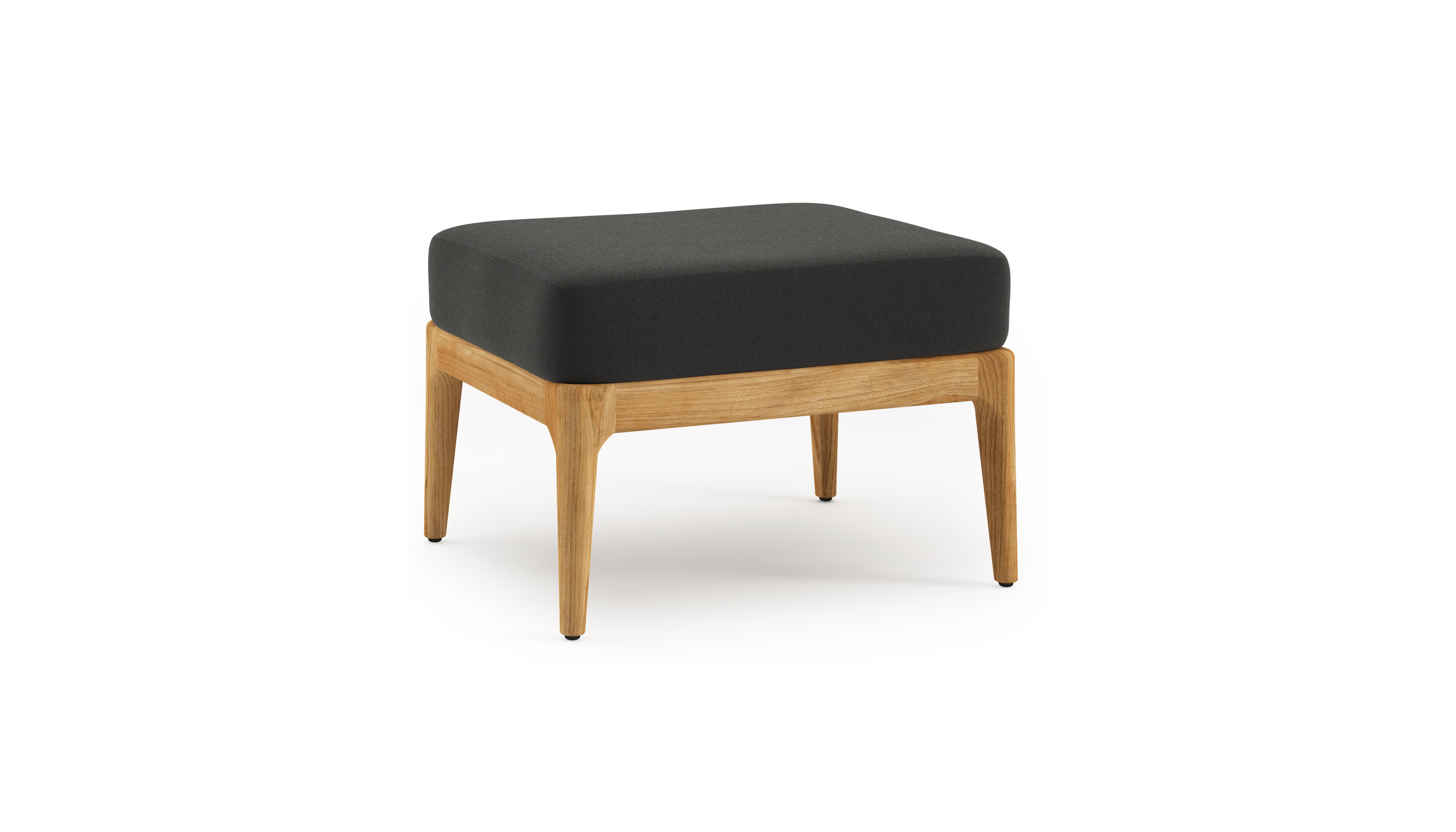 Orso poef in teak met Natte Sooty all weather sunbrella® luxe kussen | Exterioo tuinmeubelen