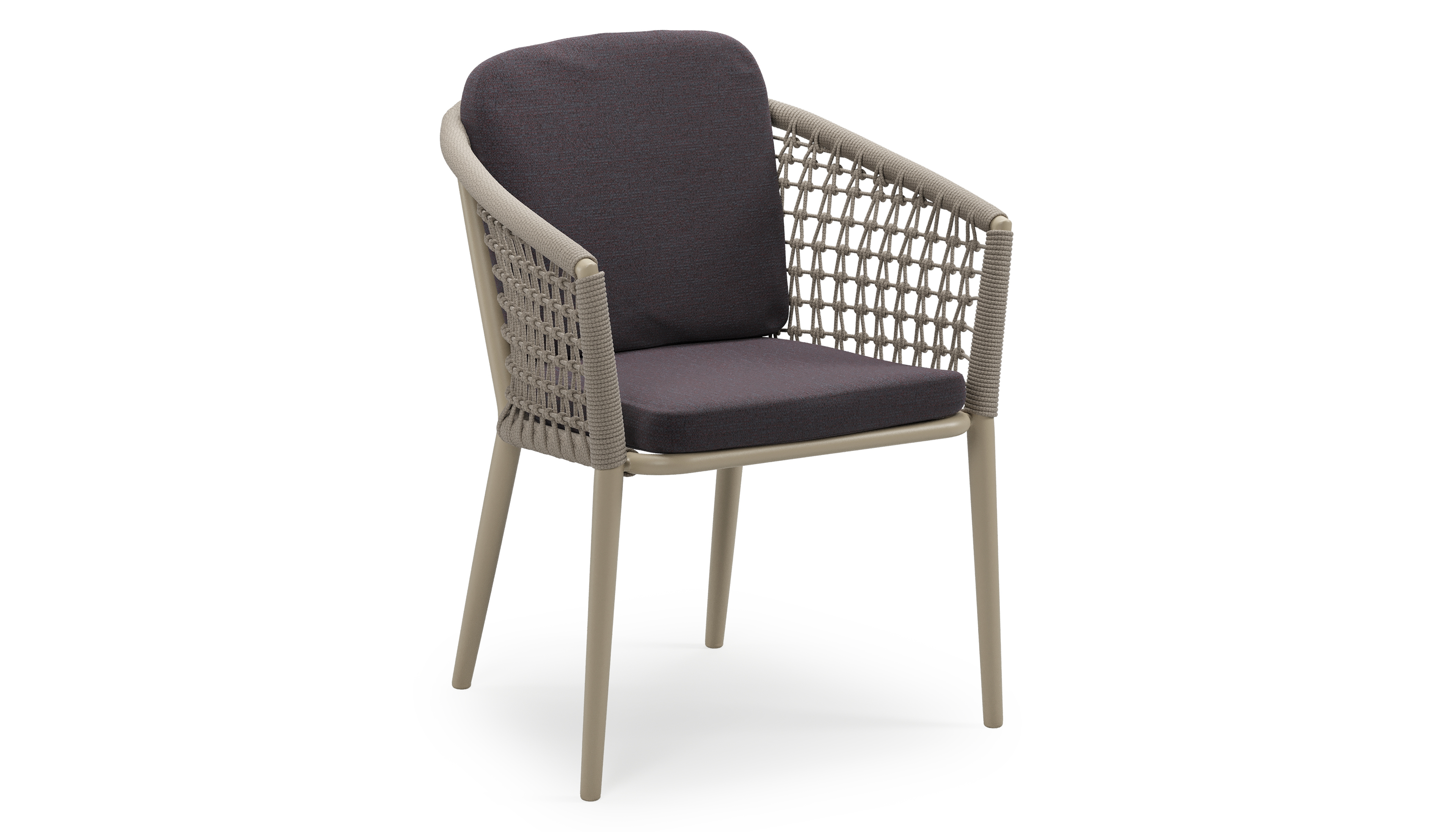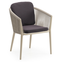 Orso stapelbare tuinstoel in beige aluminium en beige visnet geweven ronde rope met stoelkussen in All Weather Sunbrella® Luxe Tundra Red | Exterioo tuinmeubelen