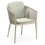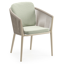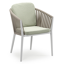 Orso stapelbare tuinstoel in wit aluminium en beige verticaal geweven luxe vlakke brede rope met stoelkussen in All Weather Sunbrella® Luxe Slow Spirea | Exterioo