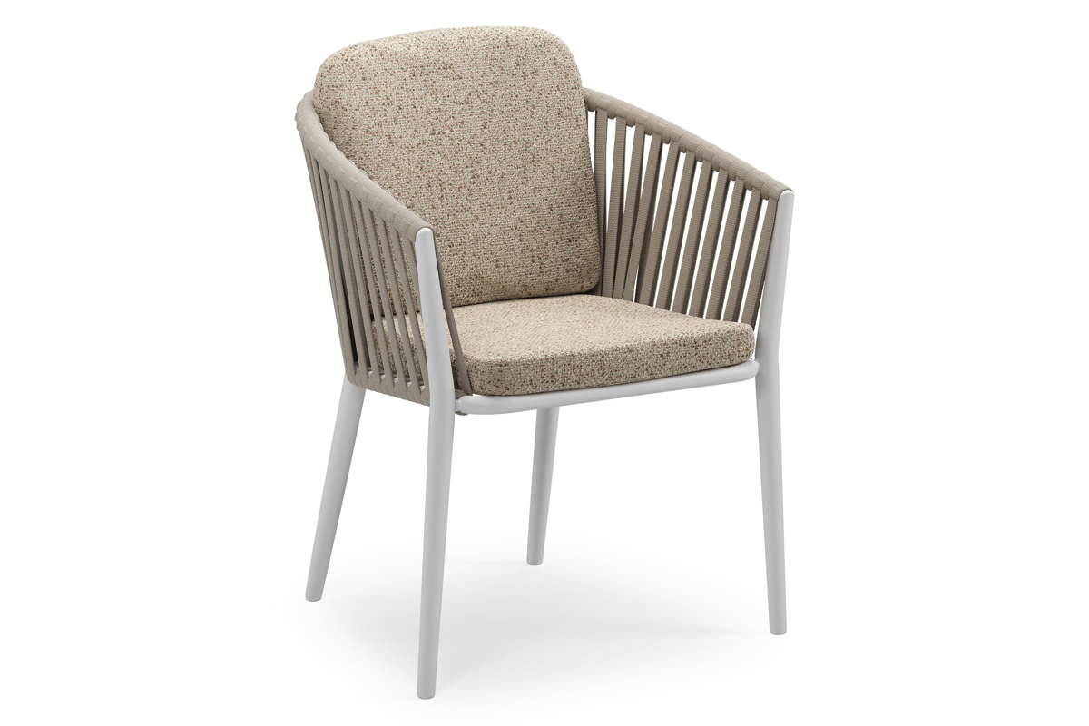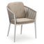 Orso stapelbare tuinstoel in wit aluminium en beige verticaal geweven luxe vlakke brede rope met stoelkussen in All Weather Cosytica Bora Jungle | Exterioo