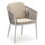 Orso stapelbare tuinstoel in wit aluminium en beige verticaal geweven luxe vlakke brede rope met stoelkussen in All Weather Cosytica Althea Chalk | Exterioo