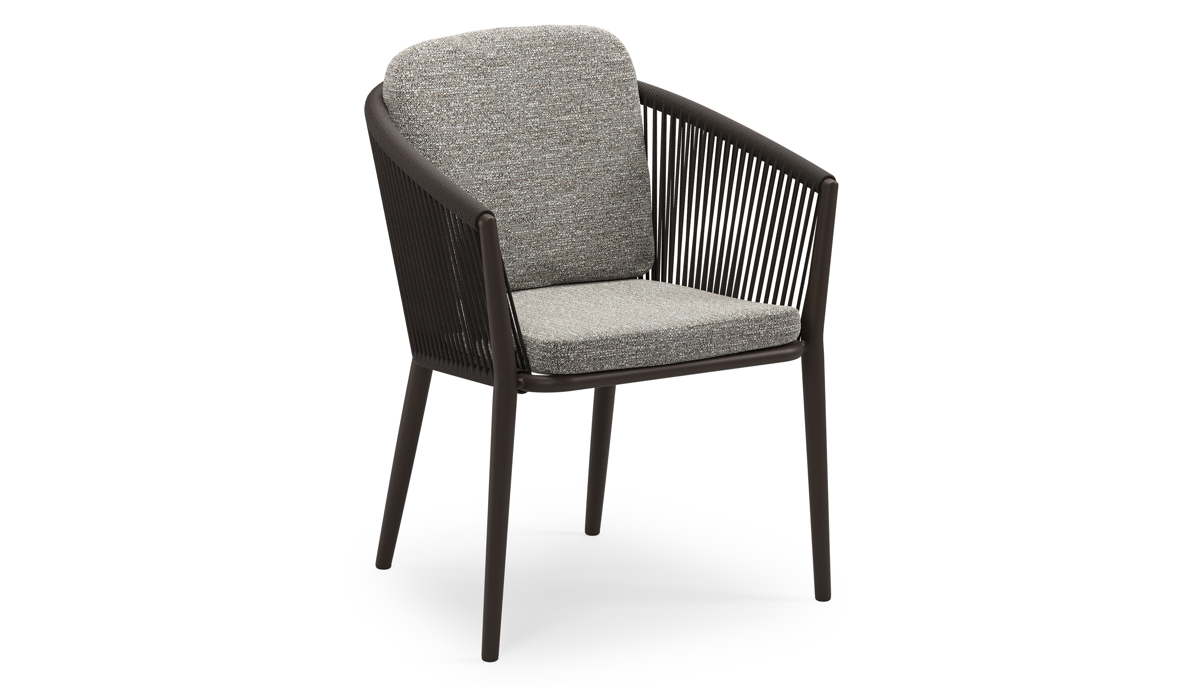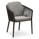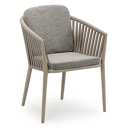 Orso stapelbare tuinstoel in donkerbruin aluminium en donkerbruin verticaal geweven ronde rope met stoelkussen in All Weather Sunbrella® Luxe Tundra Pepper | Exterioo tuinmeubelen