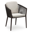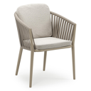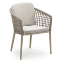 Orso stapelbare tuinstoel in donkerbruin aluminium en donkerbruin verticaal geweven ronde rope met stoelkussen in All Weather Solica Firenze Natural | Exterioo tuinmeubelen