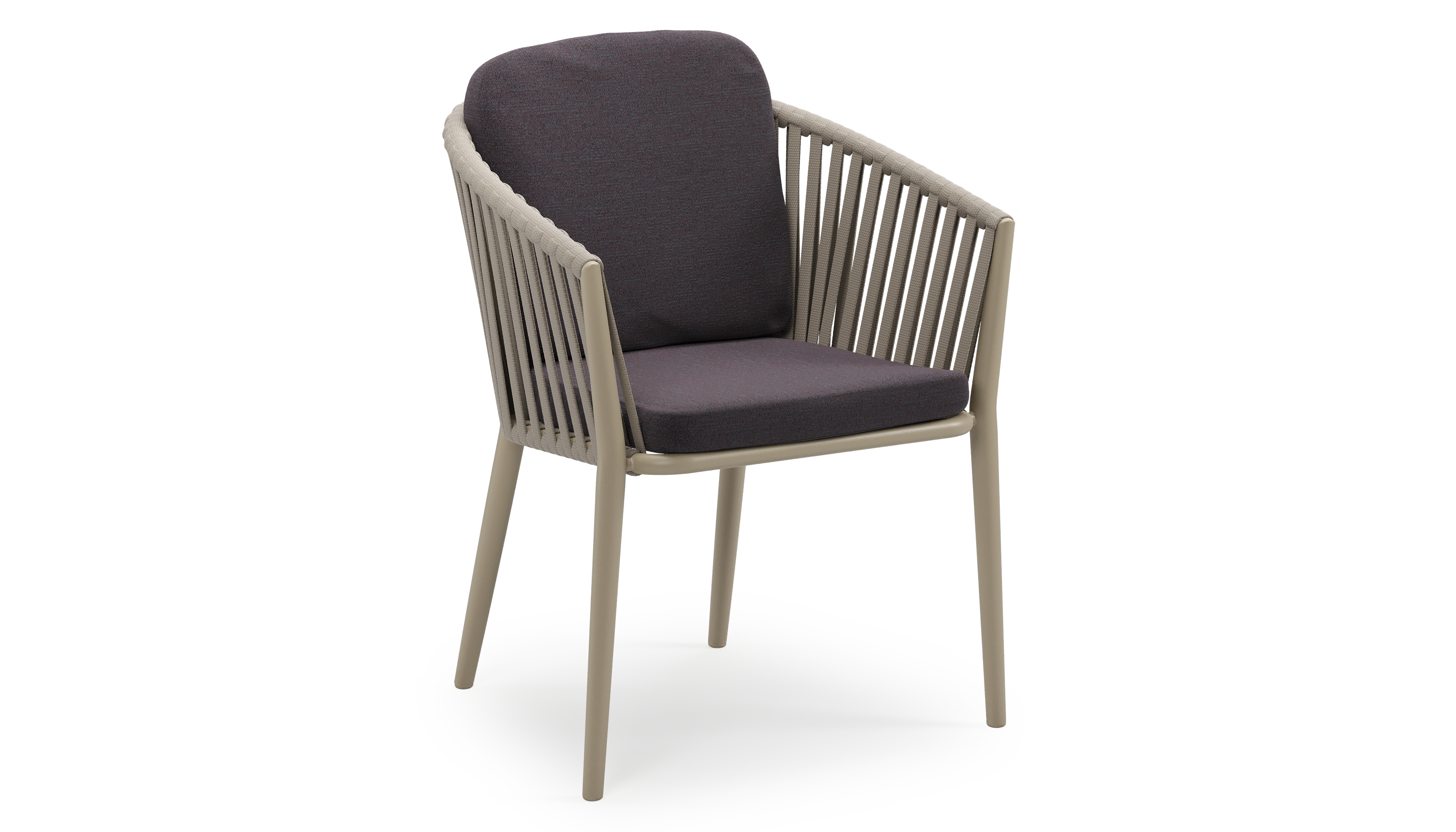 Orso stapelbare tuinstoel in beige aluminium en beige verticaal geweven luxe vlakke brede rope met stoelkussen in All Weather Sunbrella® Luxe Tundra Red | Exterioo tuinmeubelen
