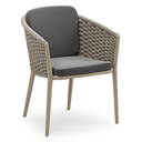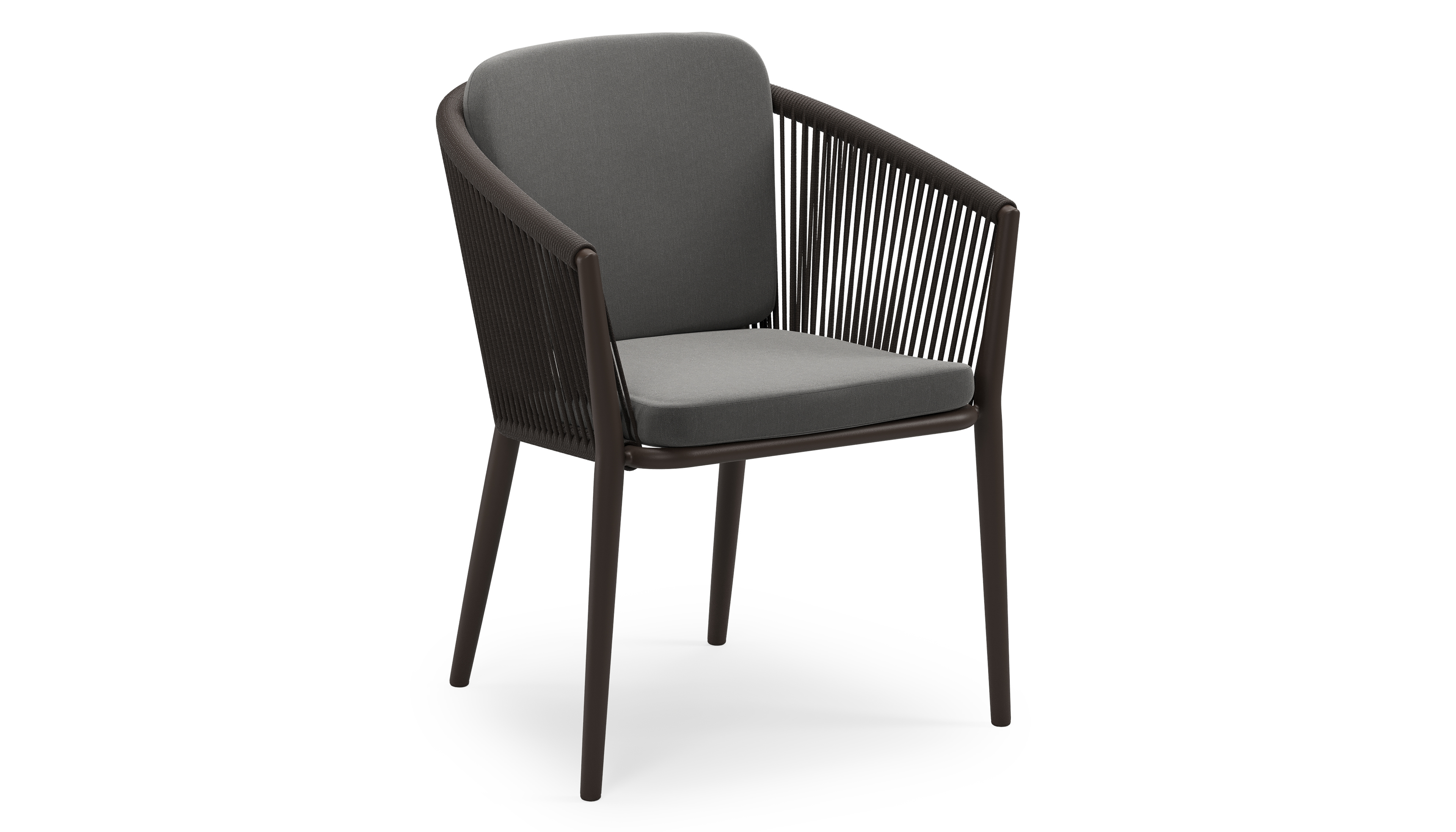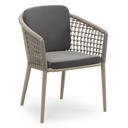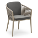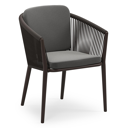 Orso stapelbare tuinstoel in donkerbruin aluminium en donkerbruin verticaal geweven ronde rope met stoelkussen in All Weather Sunbrella® Luxe Natte Charcoal Chine | Exterioo tuinmeubelen