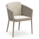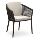 Orso stapelbare tuinstoel in donkerbruin aluminium en donkerbruin verticaal geweven ronde rope met stoelkussen in All Weather Sunbrella® Luxe Lopi Marble | Exterioo tuinmeubelen