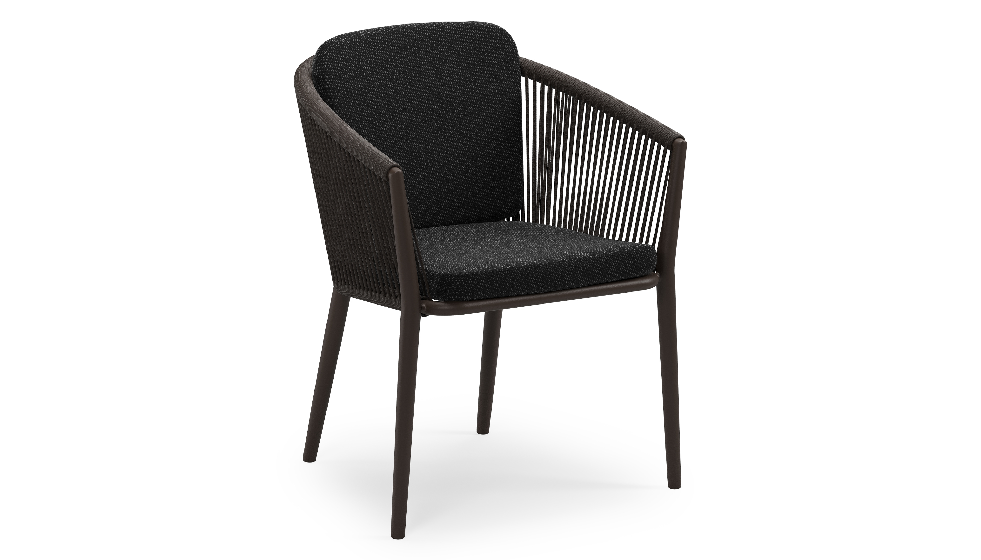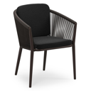 Orso stapelbare tuinstoel in donkerbruin aluminium en donkerbruin verticaal geweven ronde rope met stoelkussen in All Weather Sunbrella® Luxe Lopi Baribal | Exterioo tuinmeubelen