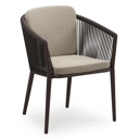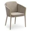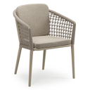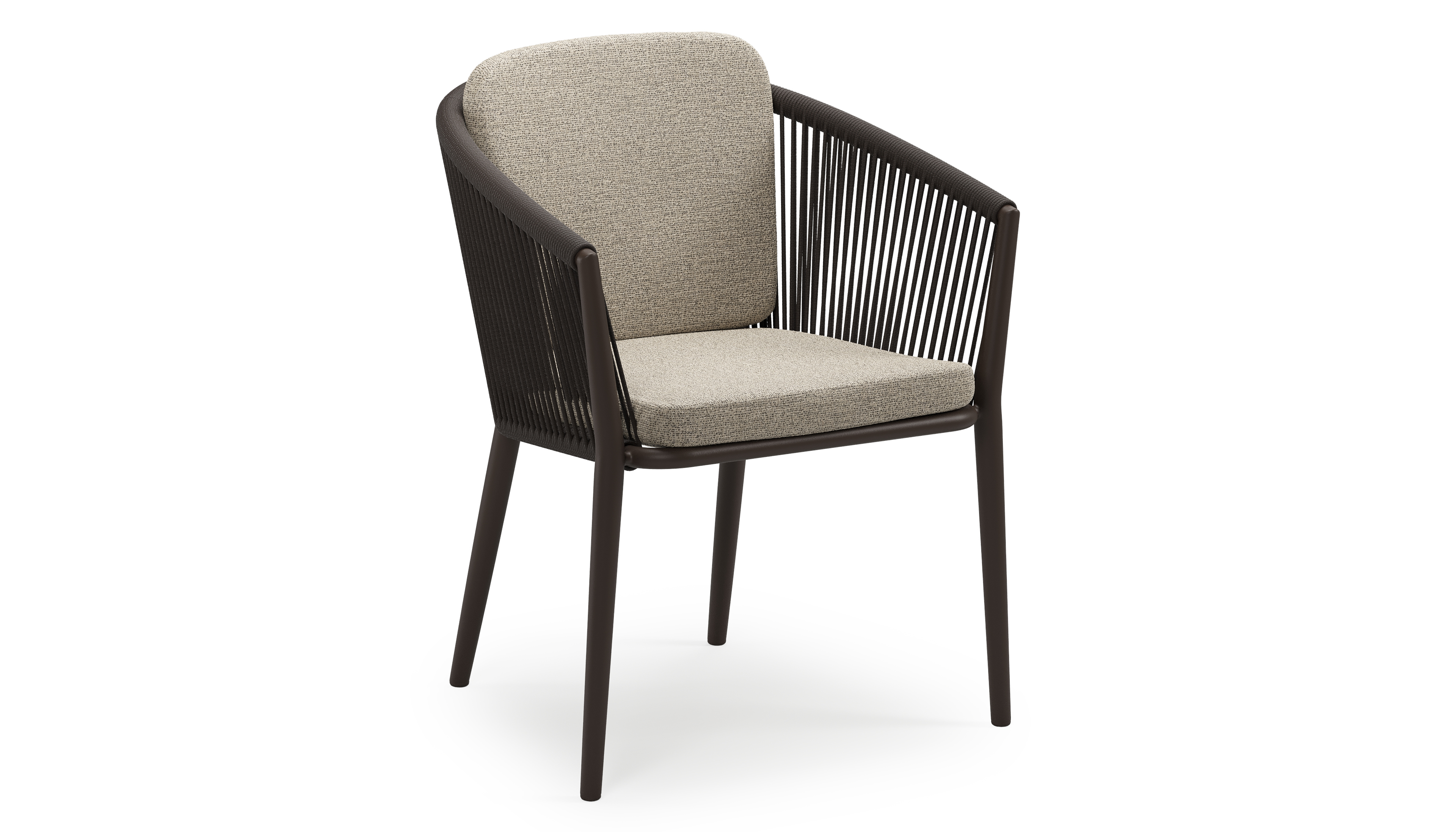 Orso stapelbare tuinstoel in donkerbruin aluminium en donkerbruin verticaal geweven ronde rope met stoelkussen in All Weather Cosytica Catania Beige | Exterioo tuinmeubelen