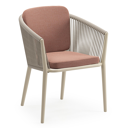 Orso stapelbare tuinstoel in beige aluminium en beige verticaal geweven luxe vlakke brede rope met stoelkussen in All Weather Sunbrella® Luxe Savane Rust | Exterioo tuinmeubelen