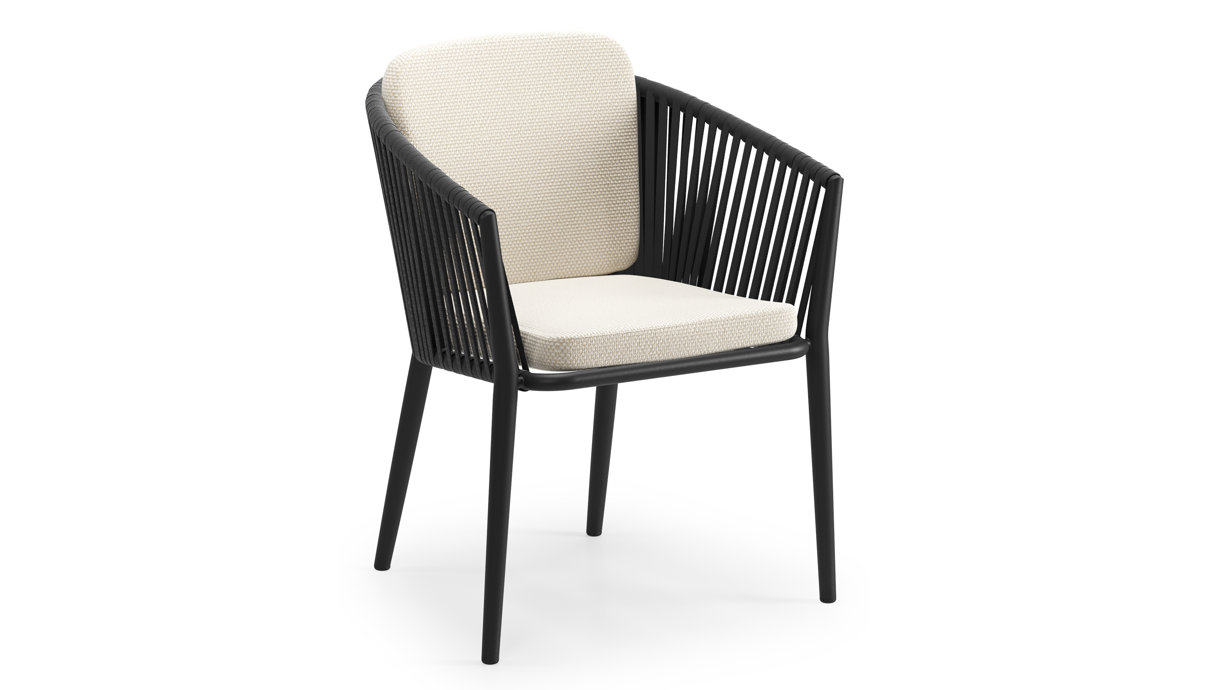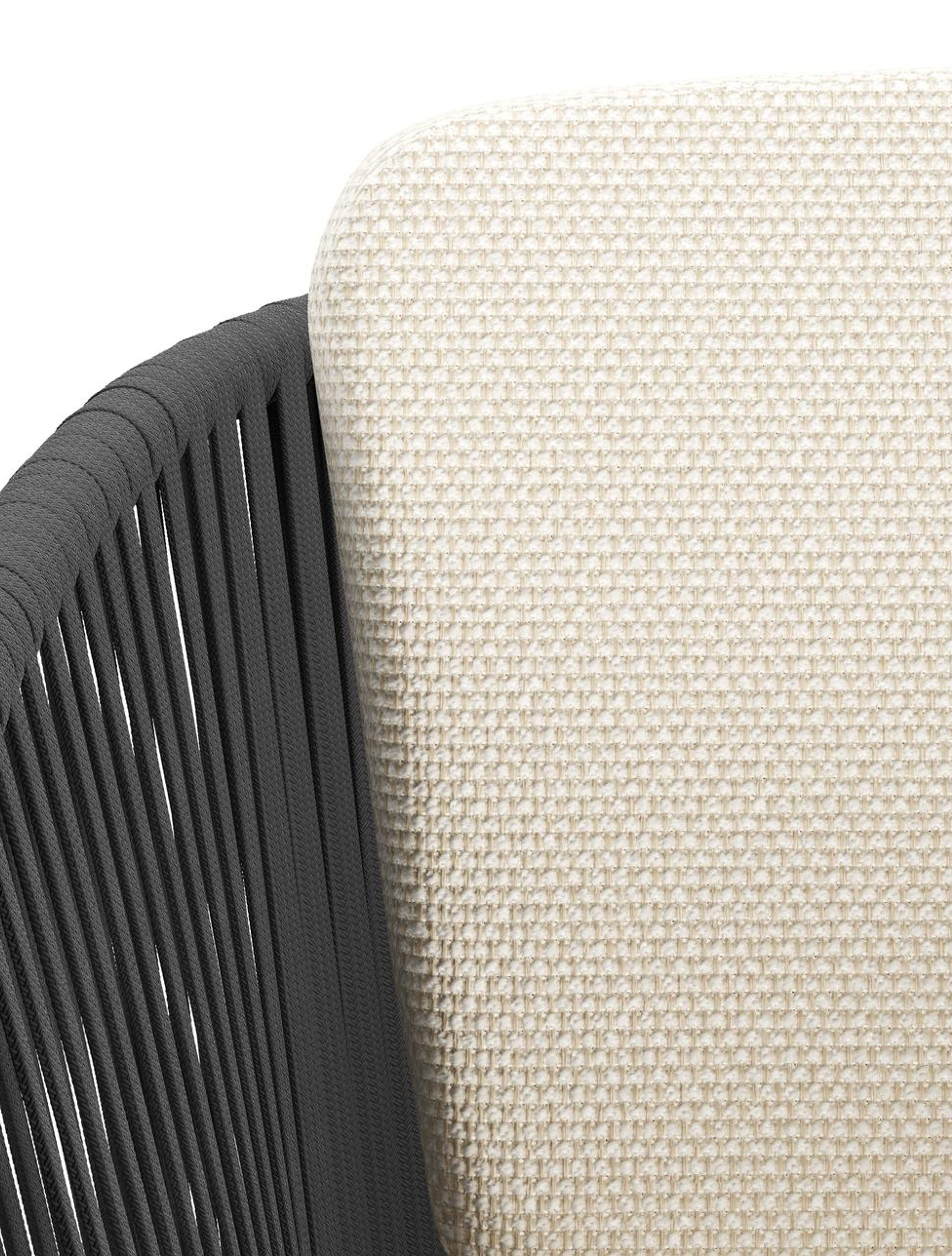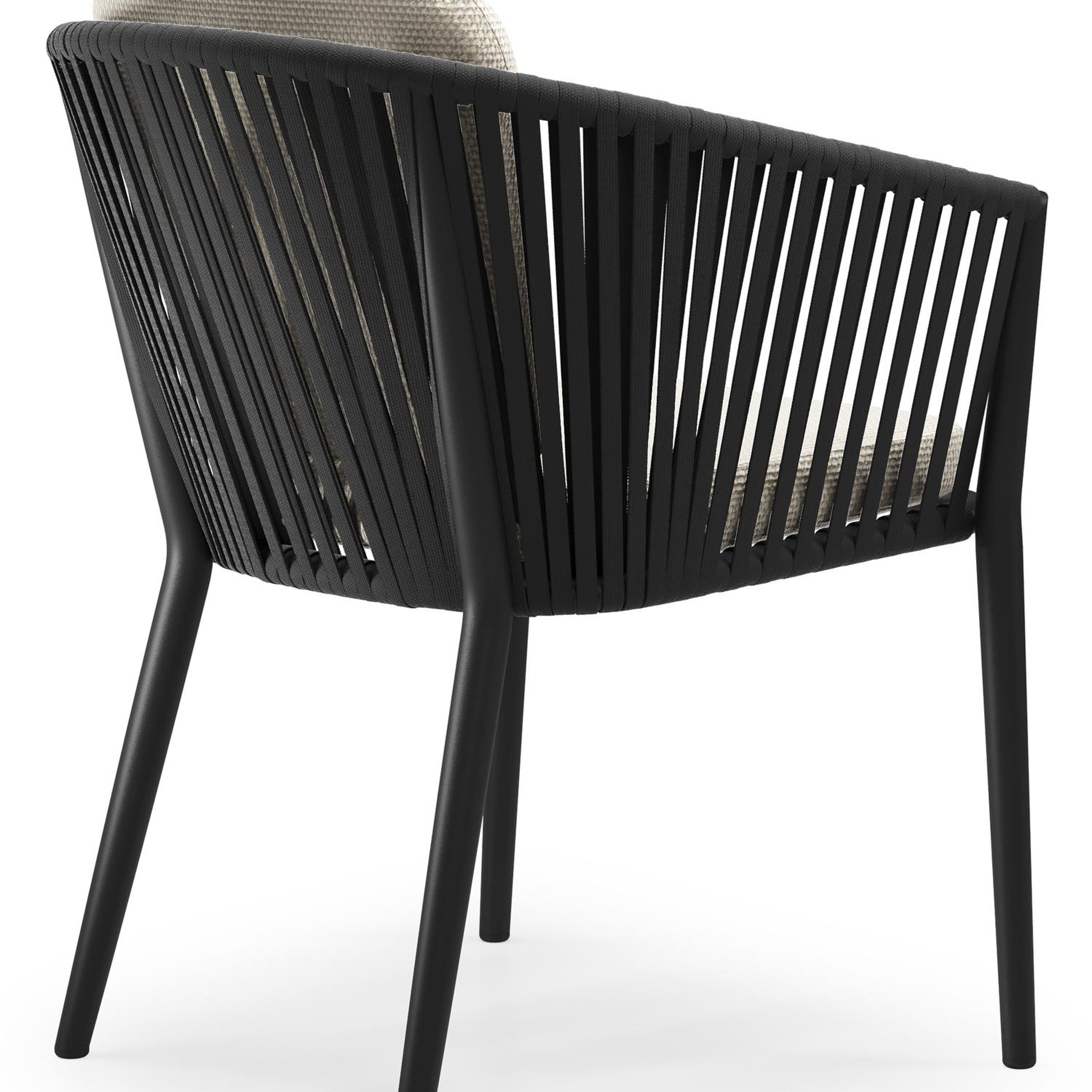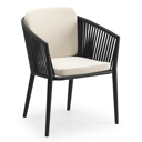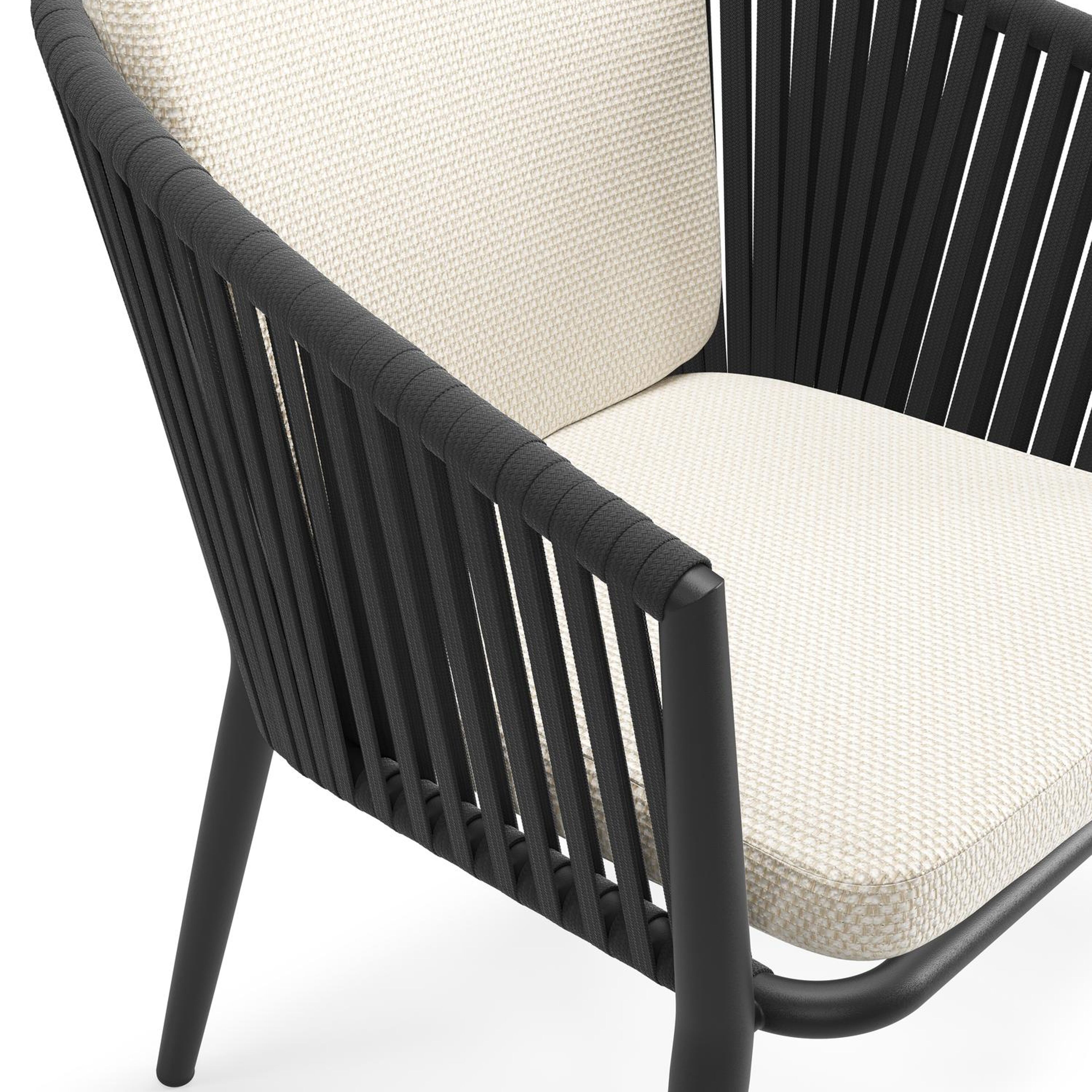 Orso tuinstoel in zwart aluminium en zwart verticaal geweven vlakke rope met zitkussen in All Weather Cosytica Althea Off White | Exterioo tuinmeubelen
