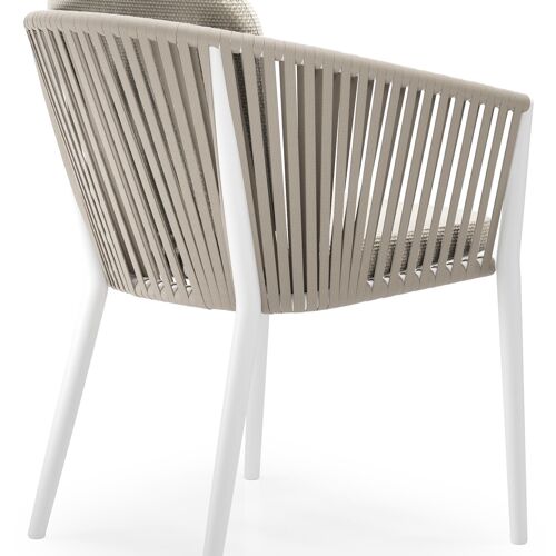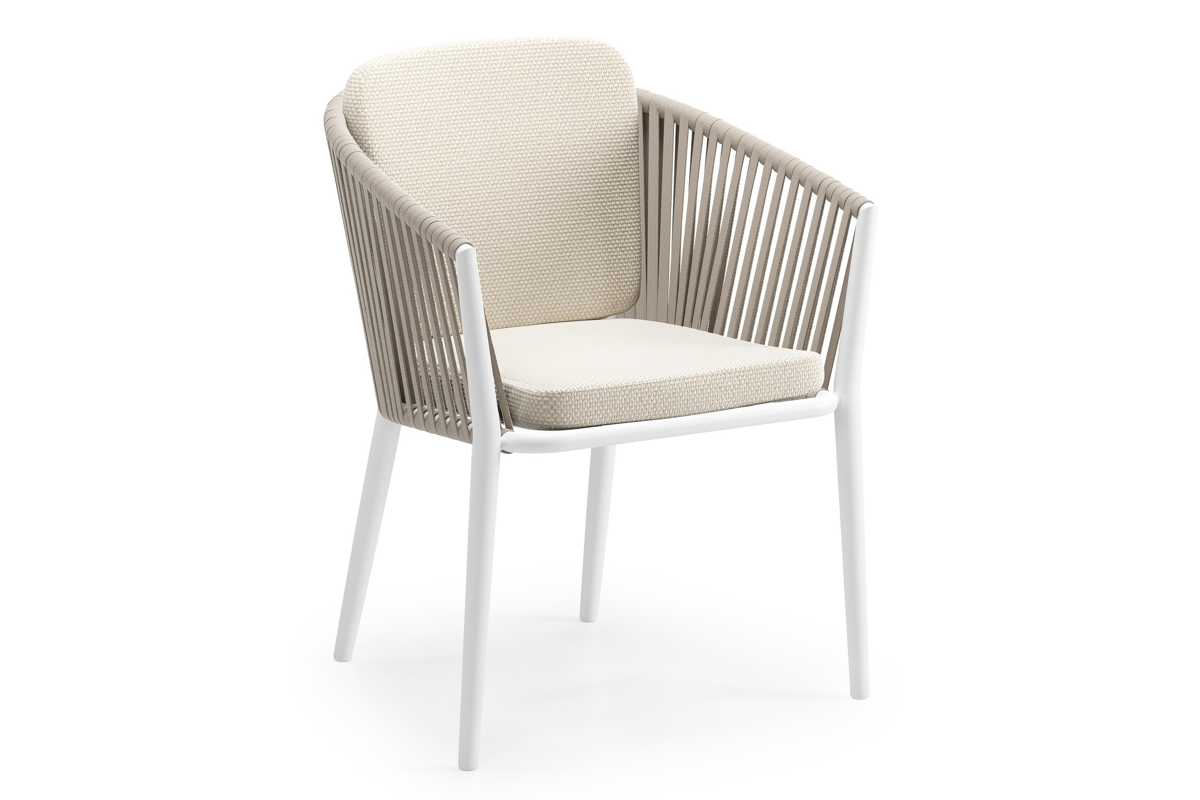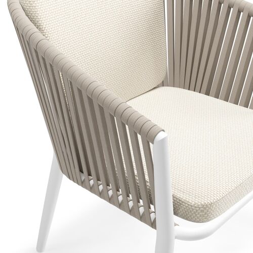 Orso tuinstoel in wit aluminium en beige verticaal geweven vlakke rope met zitkussen in All Weather Cosytica Althea Off White | Exterioo