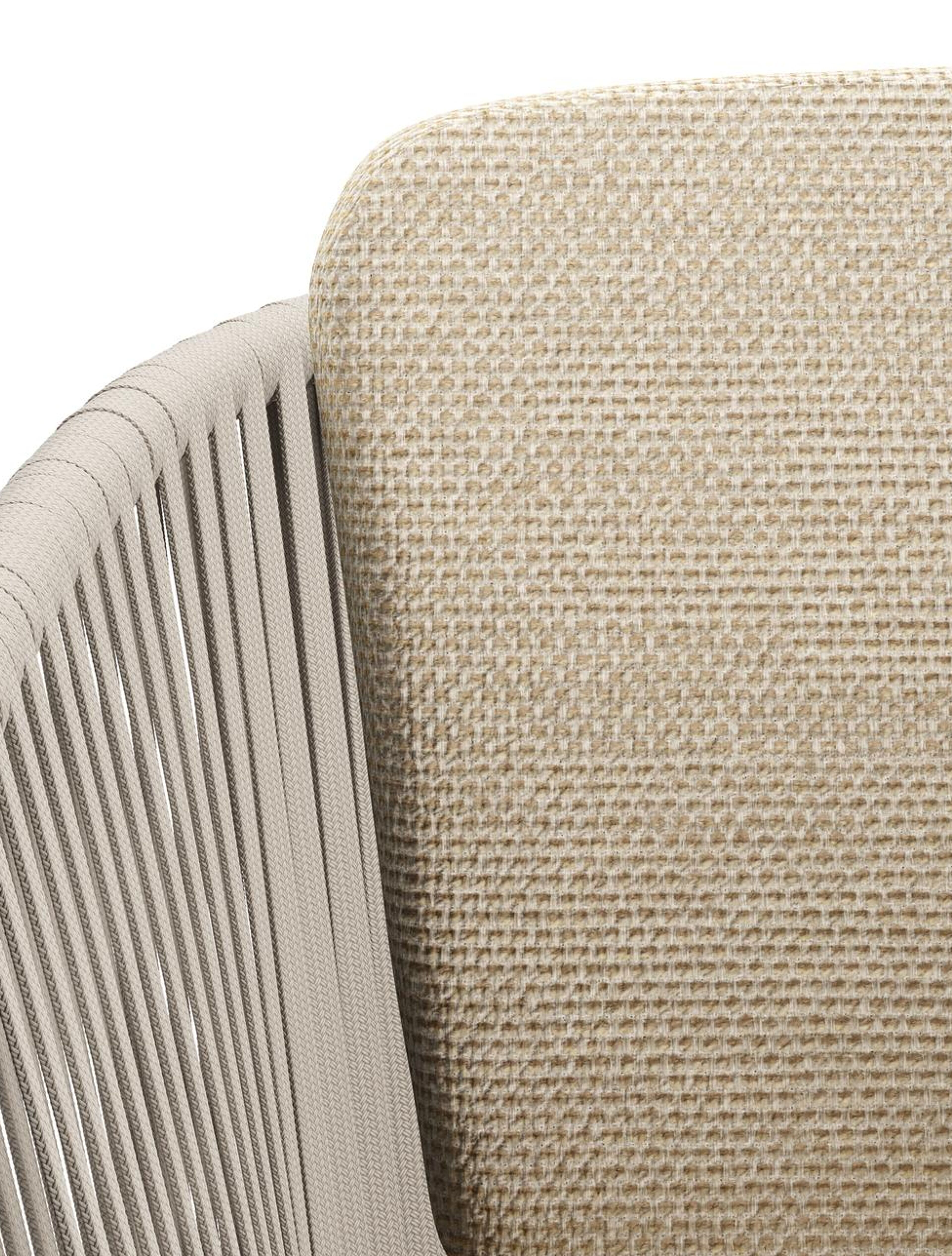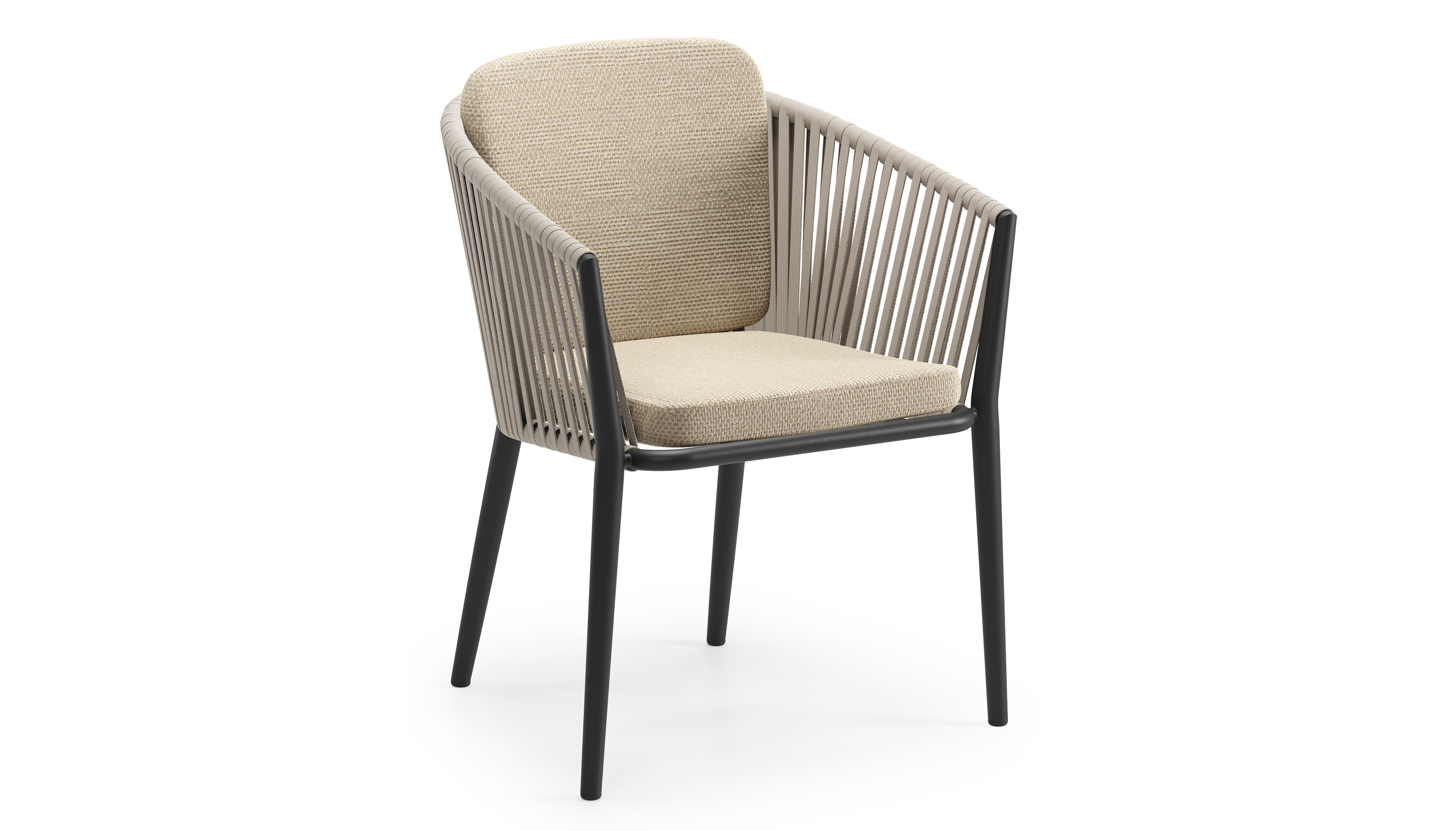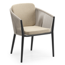 Orso tuinstoel in zwart aluminium en beige verticaal geweven vlakke rope met zitkussen in All Weather Cosytica Althea Camel | Exterioo tuinmeubelen