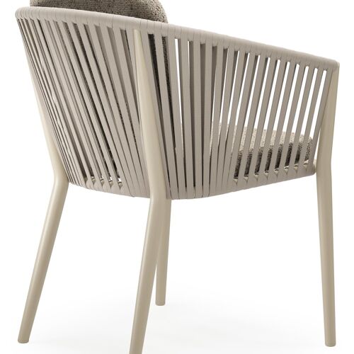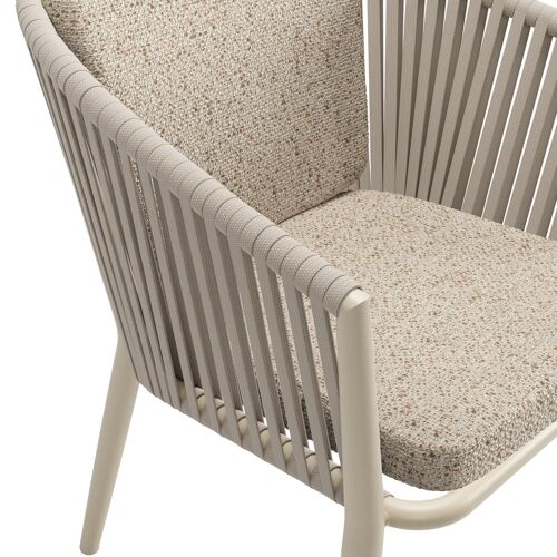 Orso tuinstoel in beige aluminium en beige verticaal geweven vlakke rope met zitkussen in All Weather Cosytica Bora Jungle | Exterioo