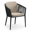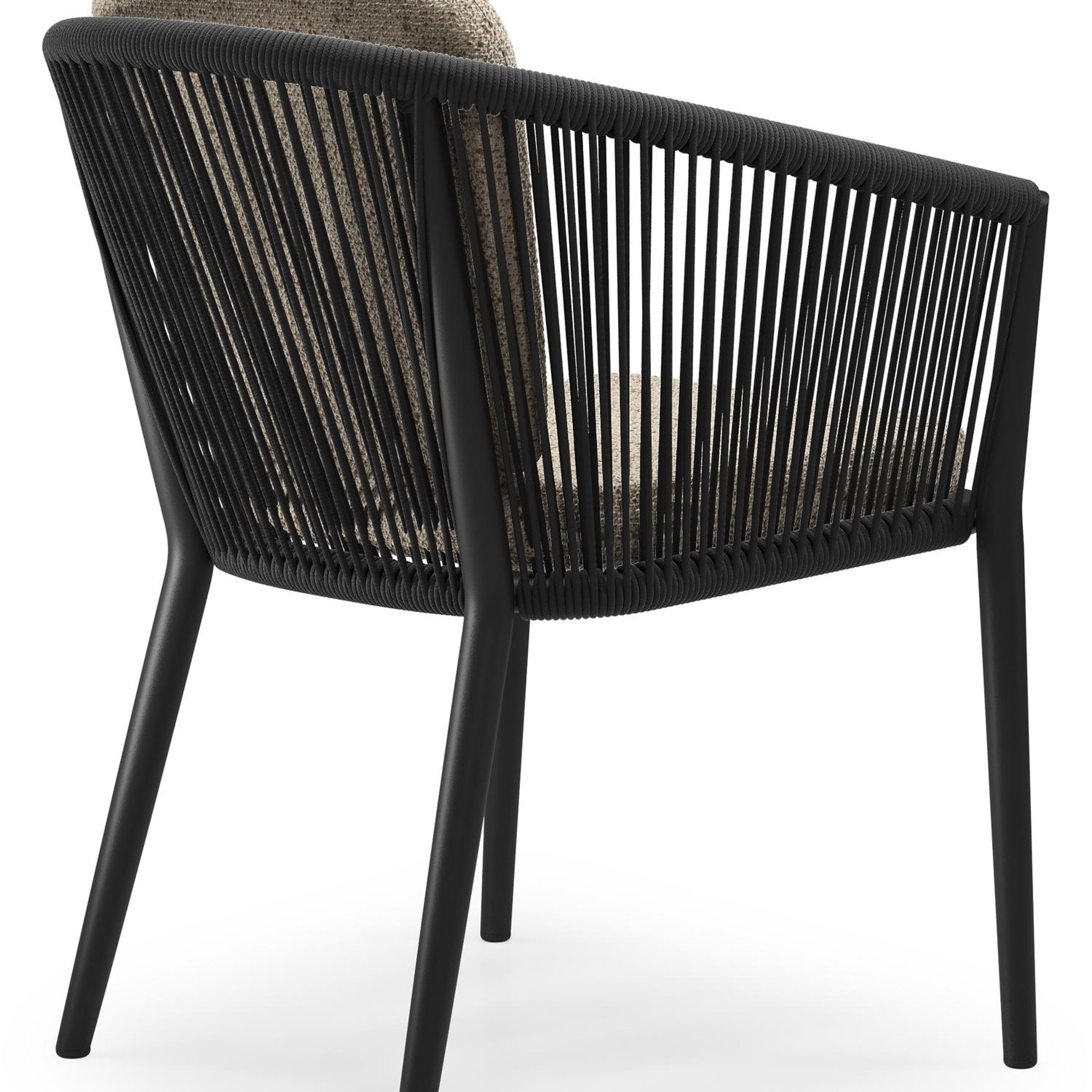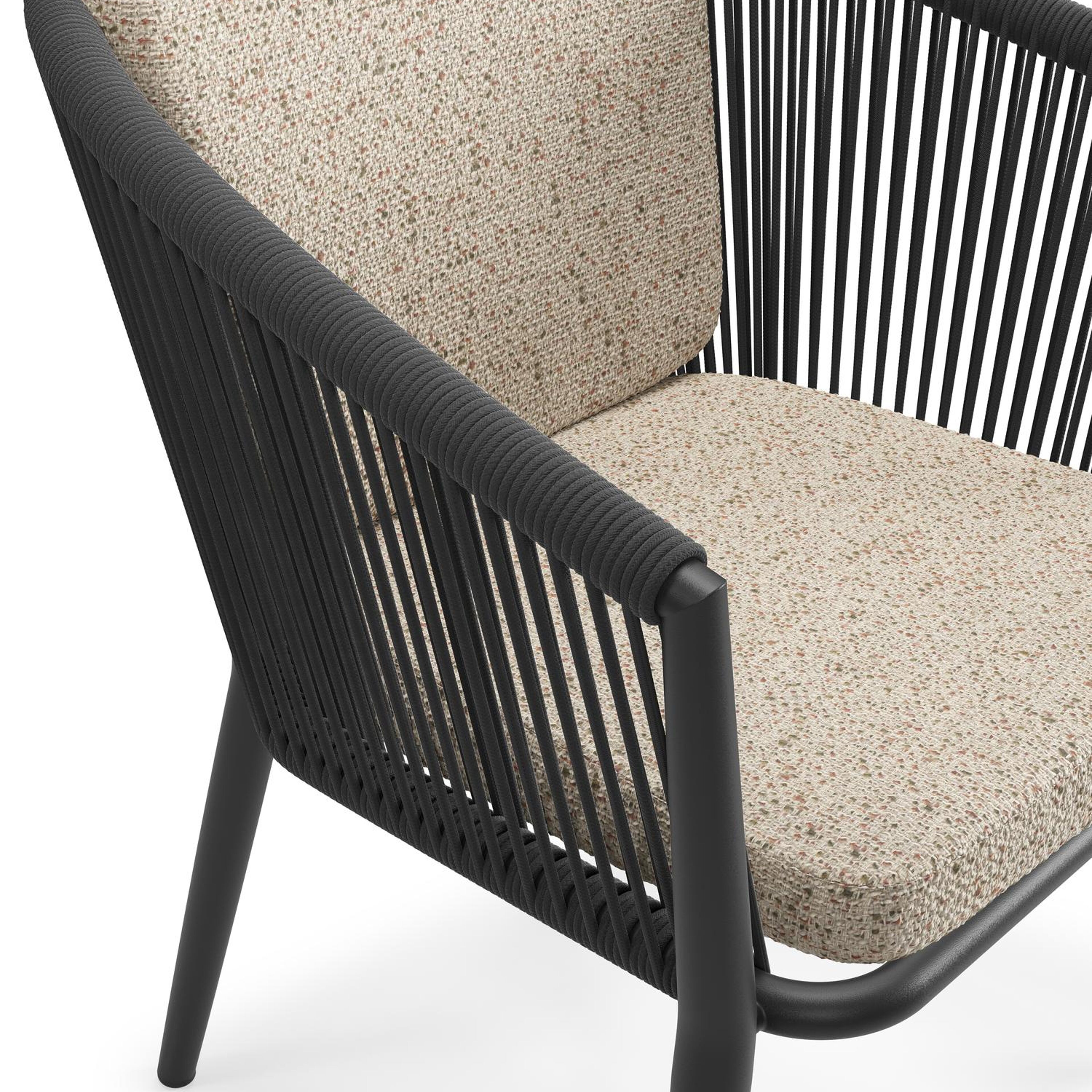 Orso tuinstoel in zwart aluminium en zwart verticaal geweven ronde rope met zitkussen in All Weather Cosytica Bora Jungle | Exterioo tuinmeubelen