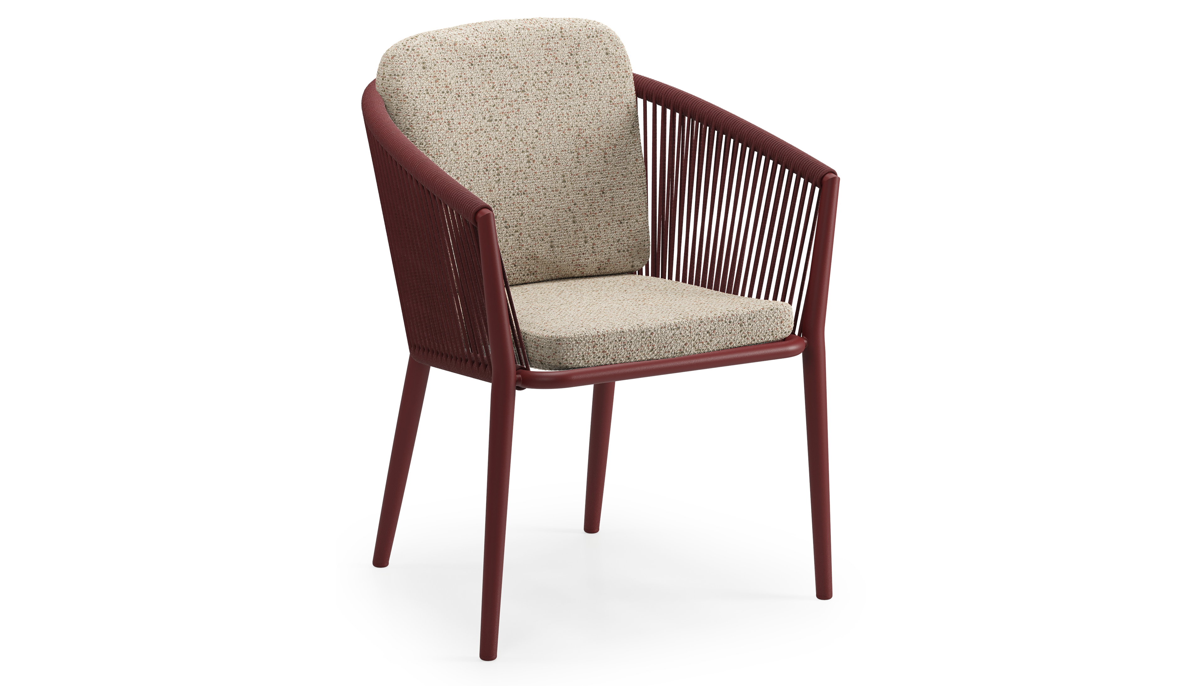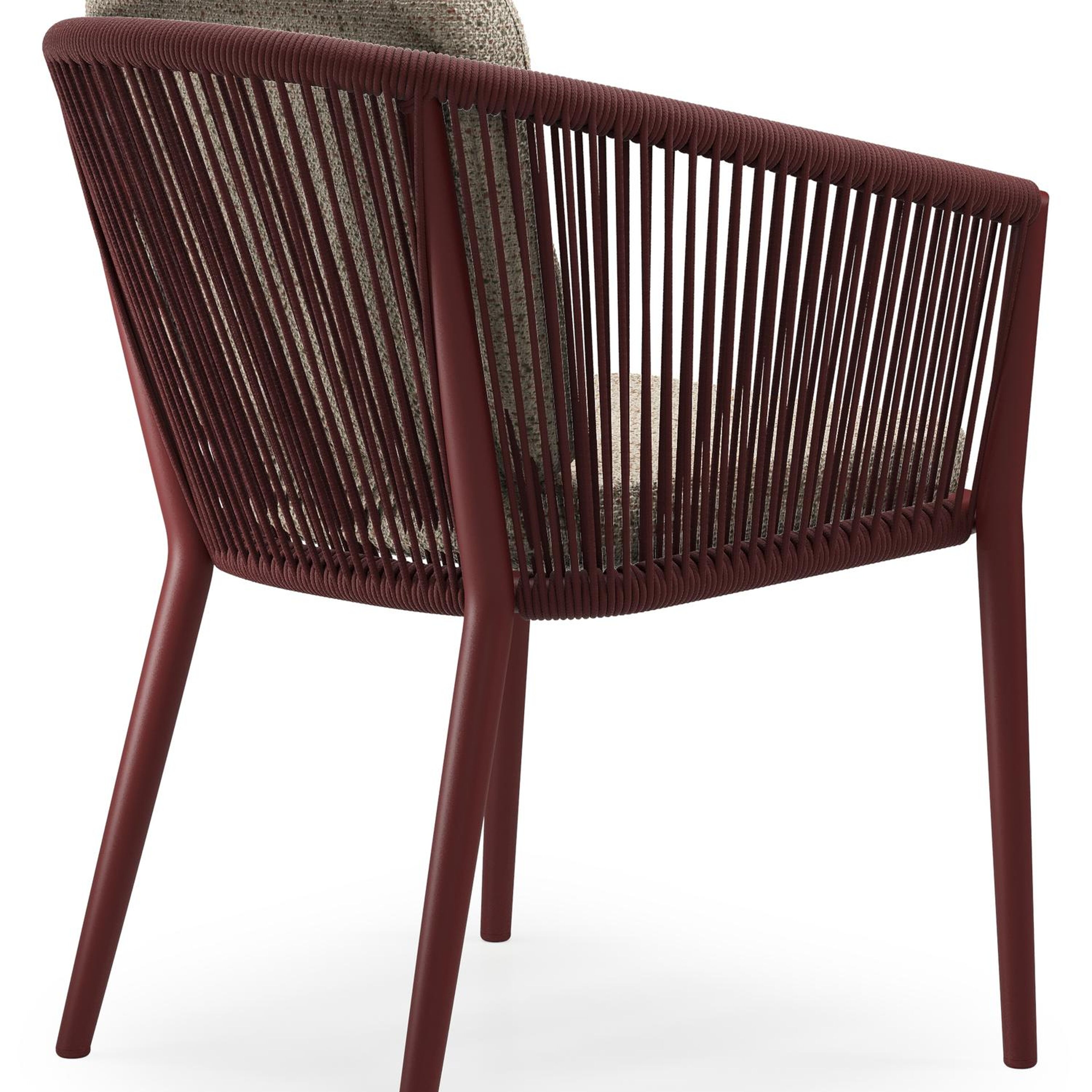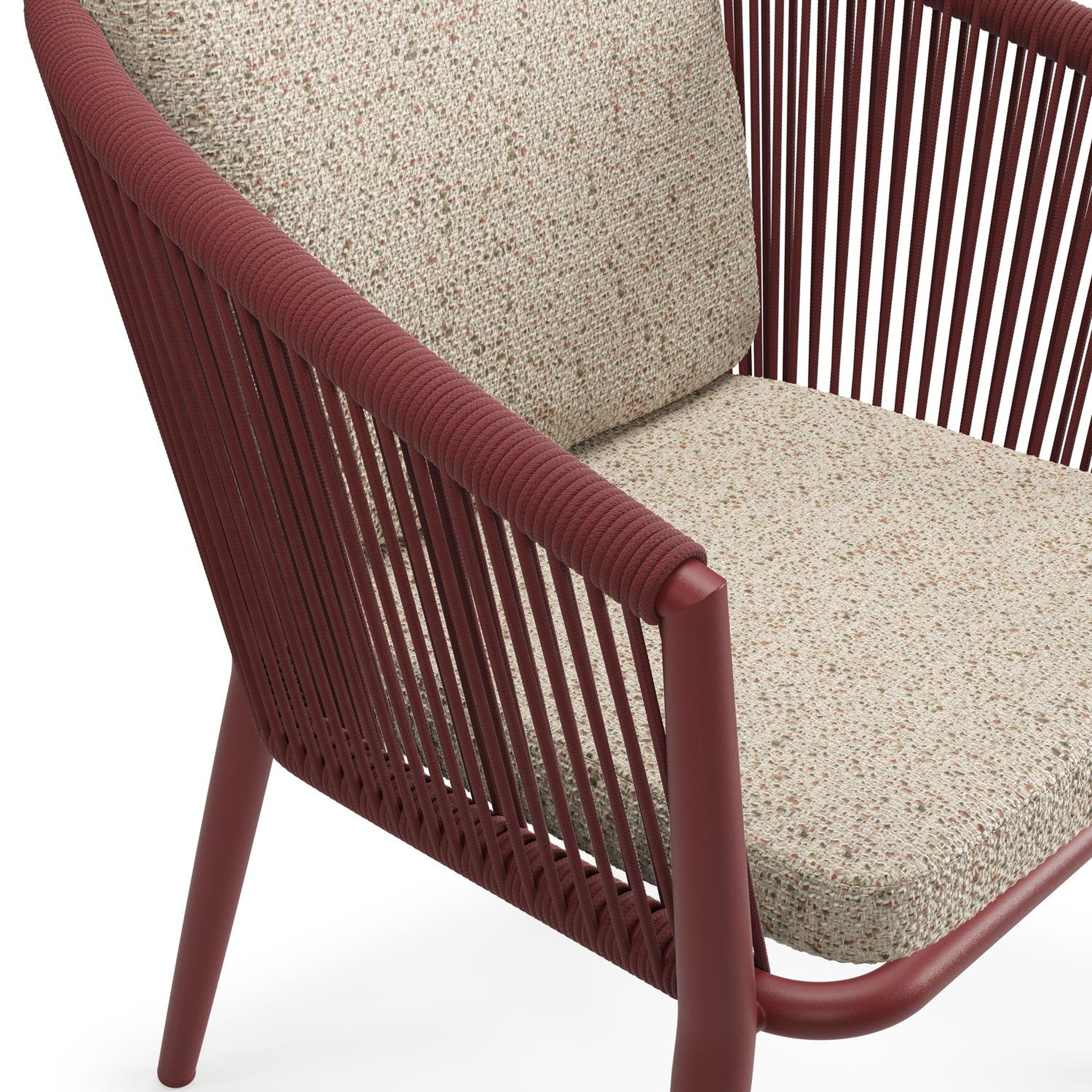 Orso tuinstoel in ruby aluminium en ruby verticaal geweven ronde rope met luxe zitkussen in All Weather Cosytica Bora Jungle | Exterioo tuinmeubelen