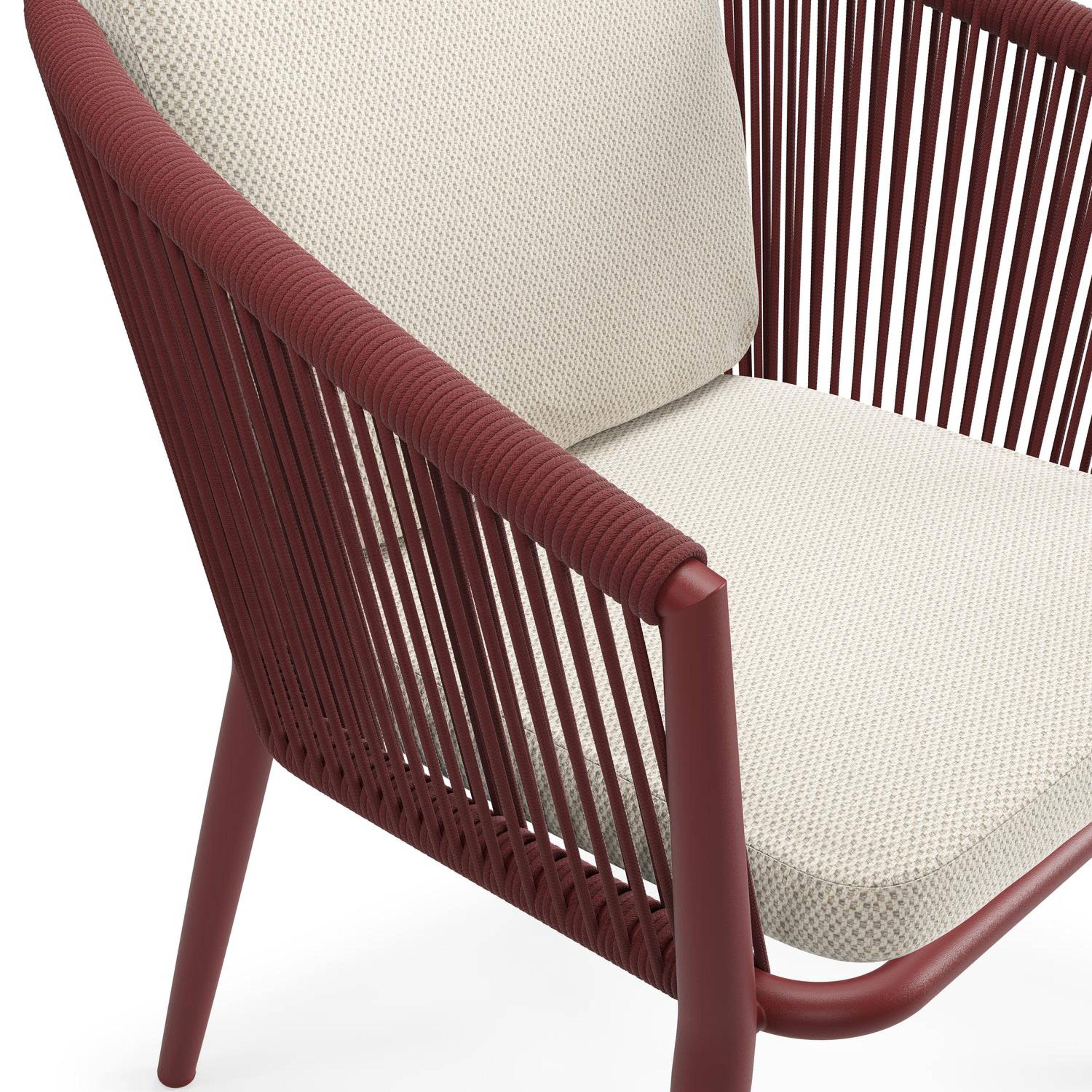 Orso tuinstoel in ruby aluminium en ruby verticaal geweven ronde rope met luxe zitkussen in All Weather Sunbrella® Luxe Lopi Marble | Exterioo tuinmeubelen