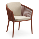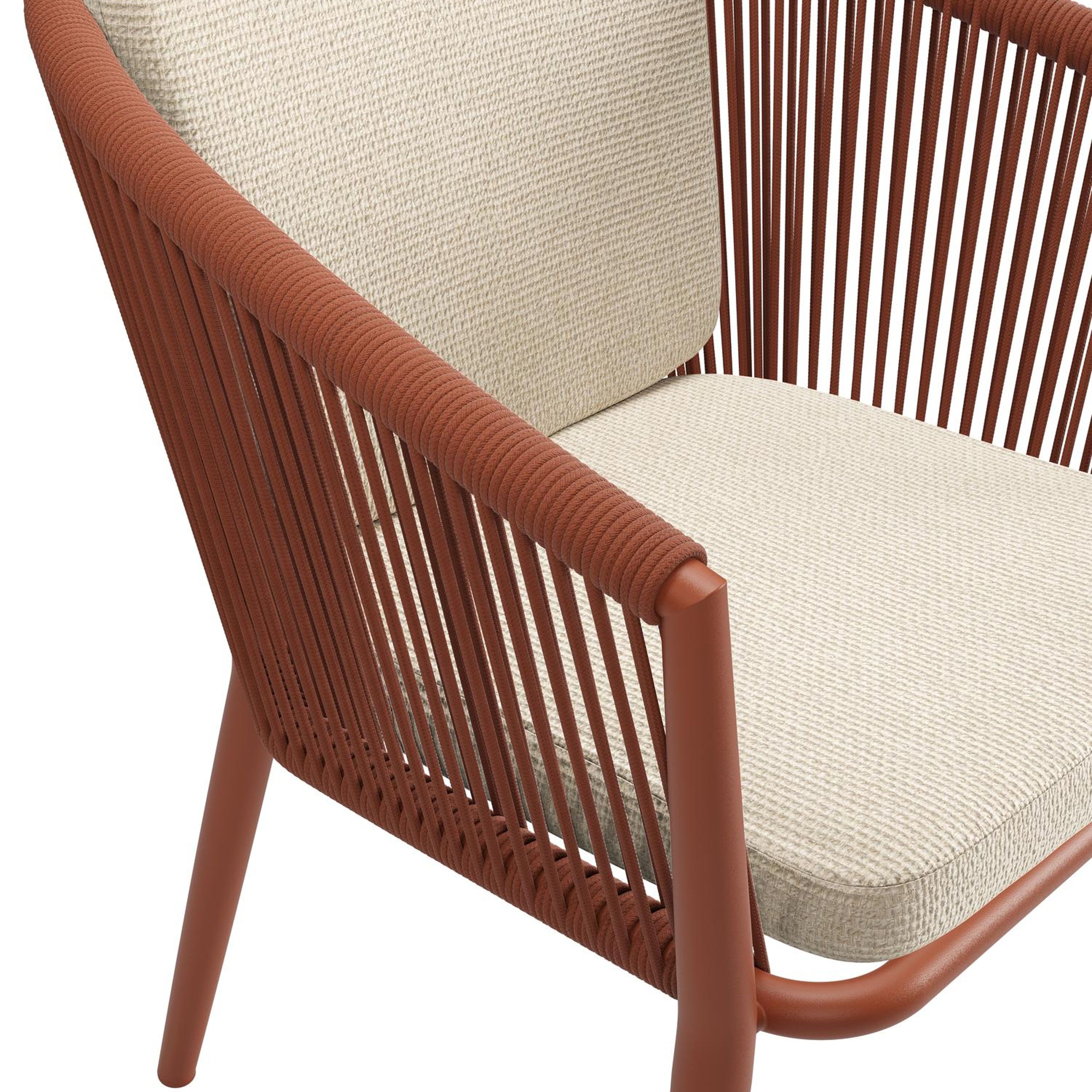 Orso tuinstoel in roestbruin aluminium en roestbruin verticaal geweven ronde rope met zitkussen in All Weather Cosytica Althea Chalk | Exterioo tuinmeubelen