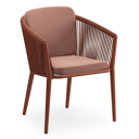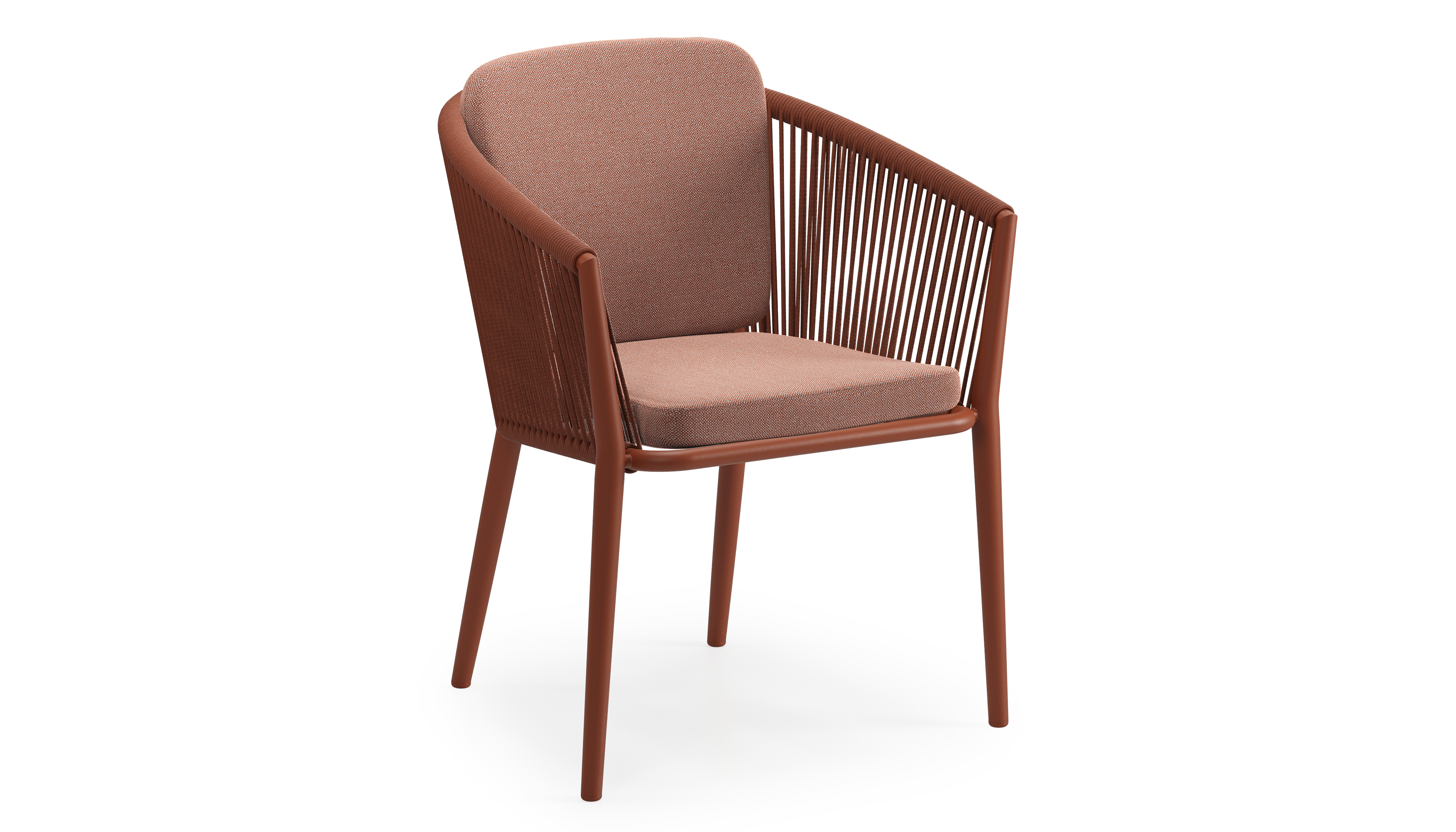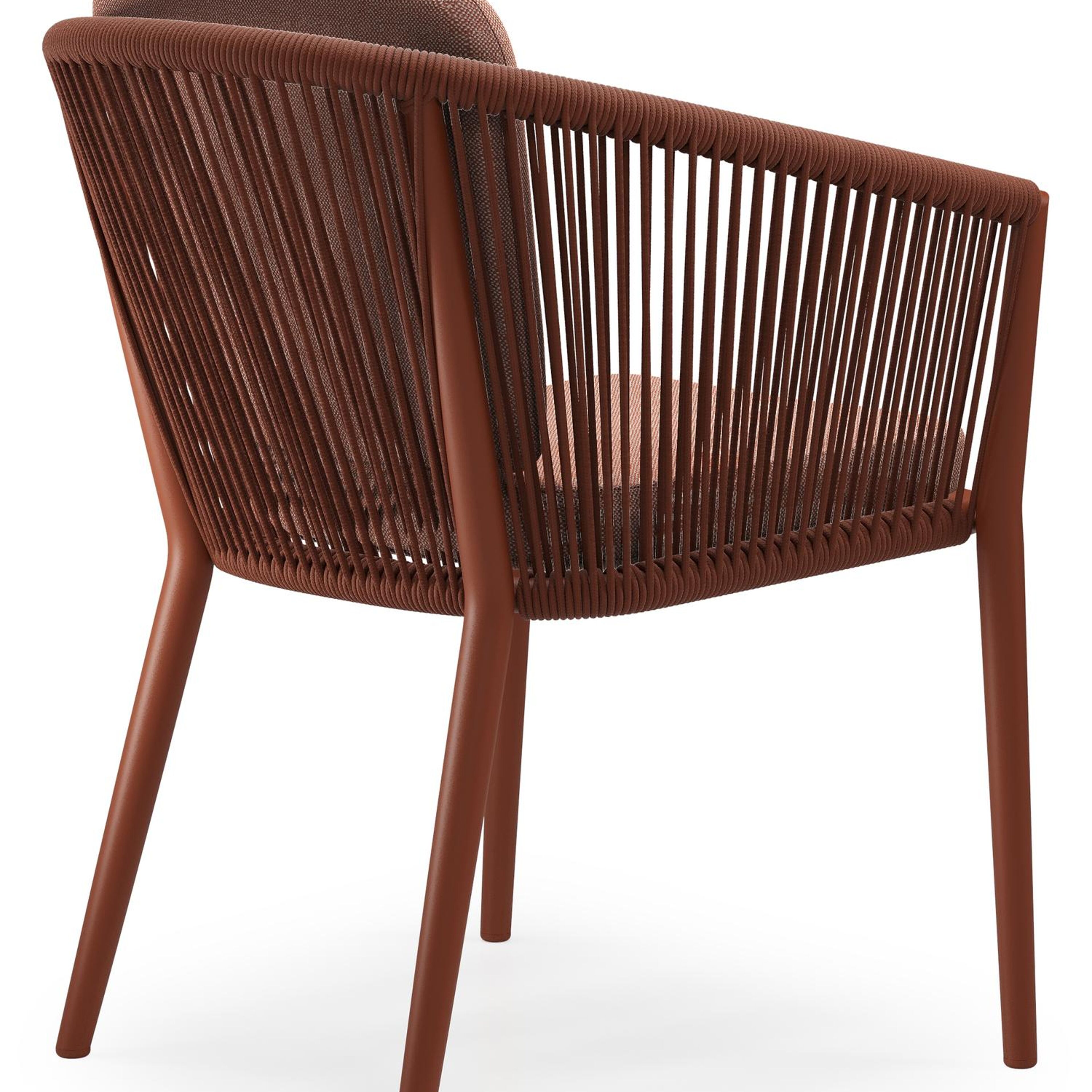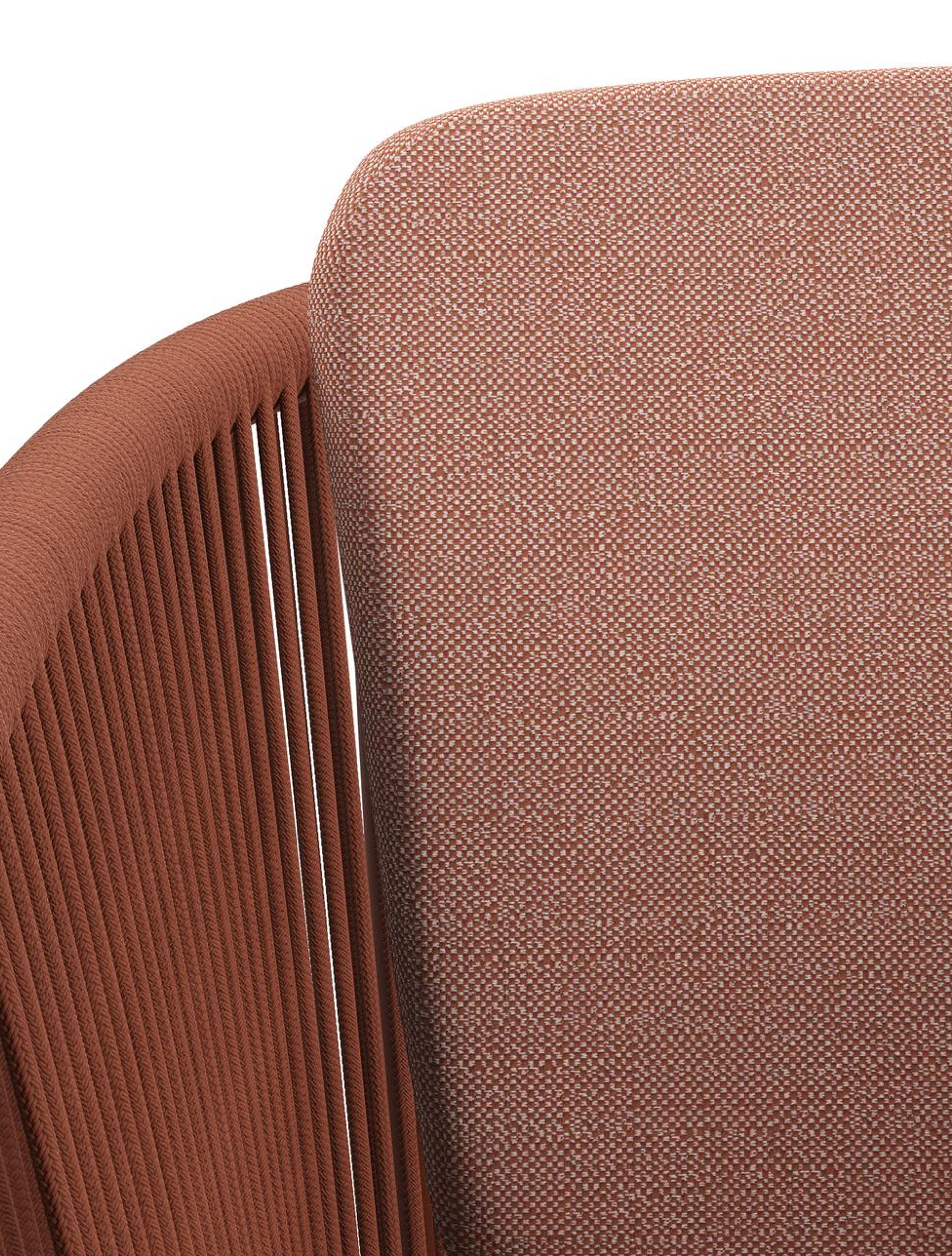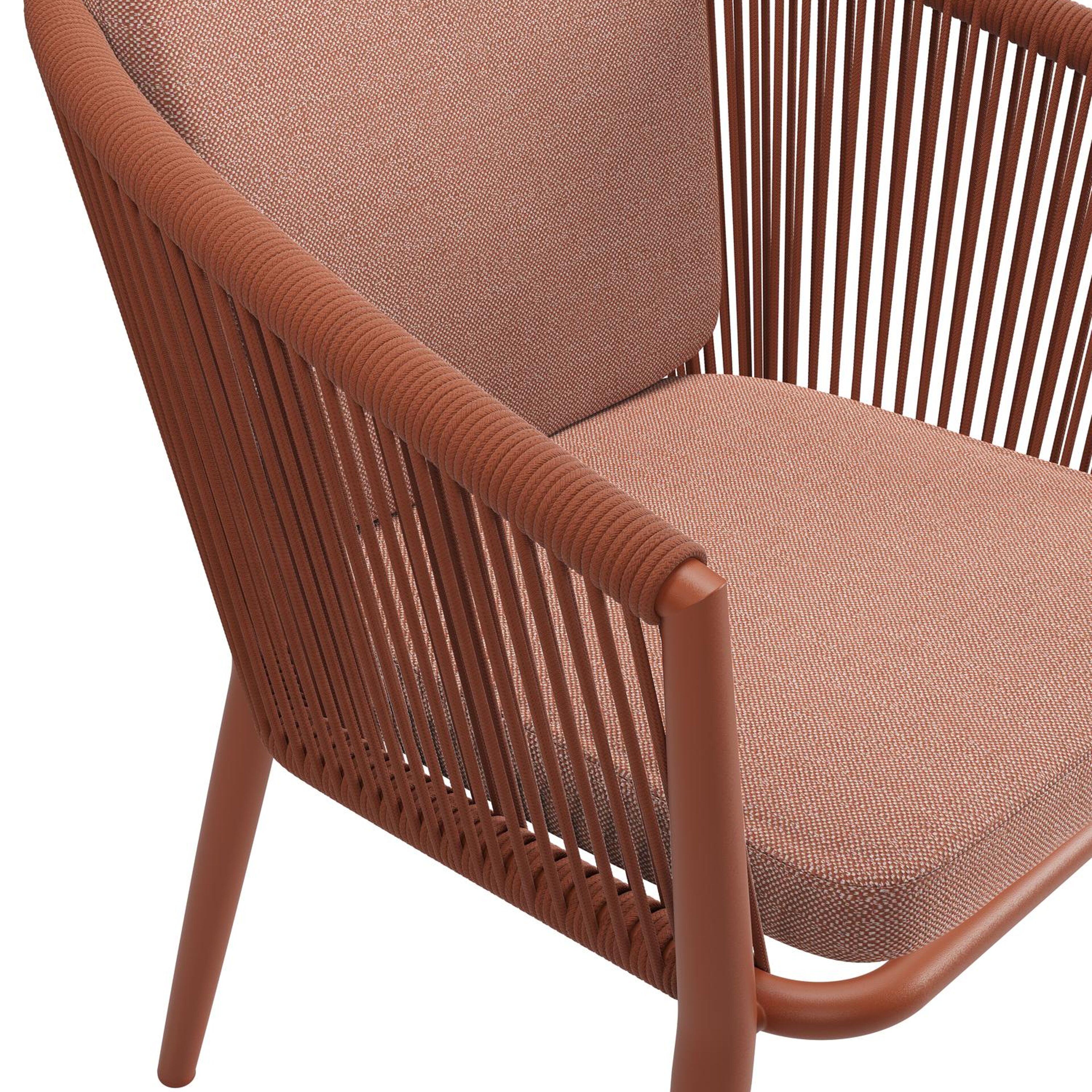 Orso tuinstoel in roestbruin aluminium en roestbruin verticaal geweven ronde rope met zitkussen in All Weather Sunbrella® Luxe Savane Rust | Exterioo tuinmeubelen
