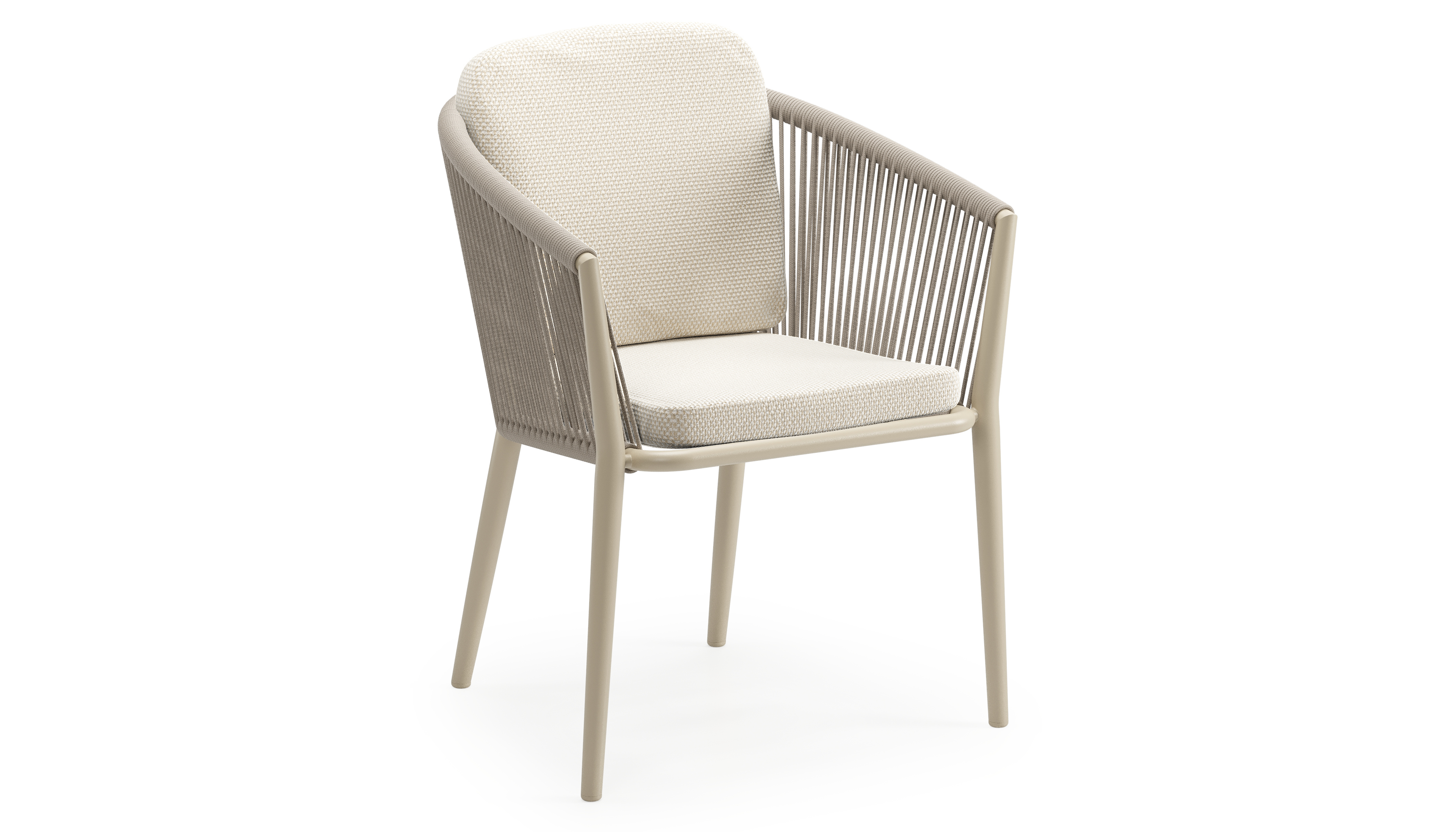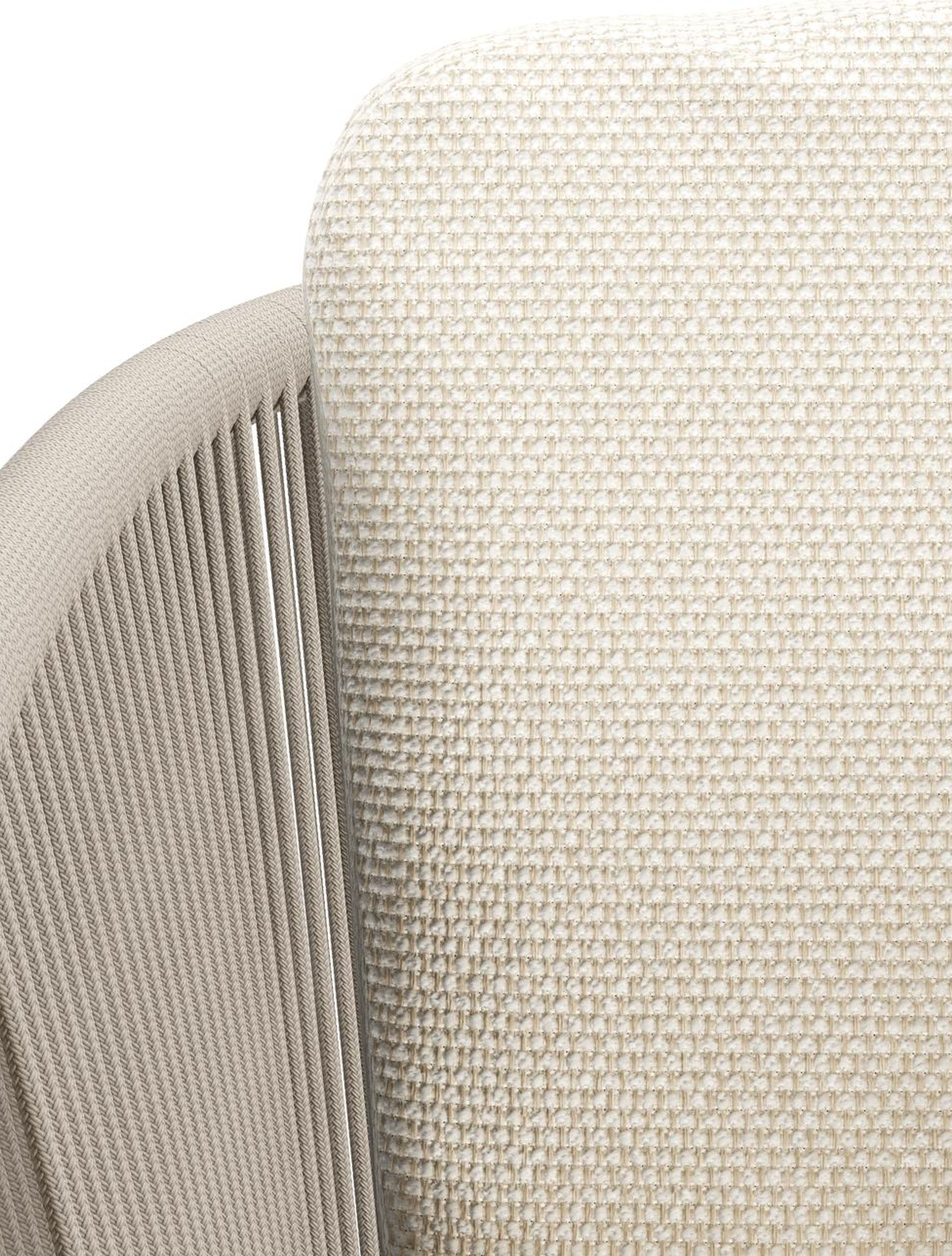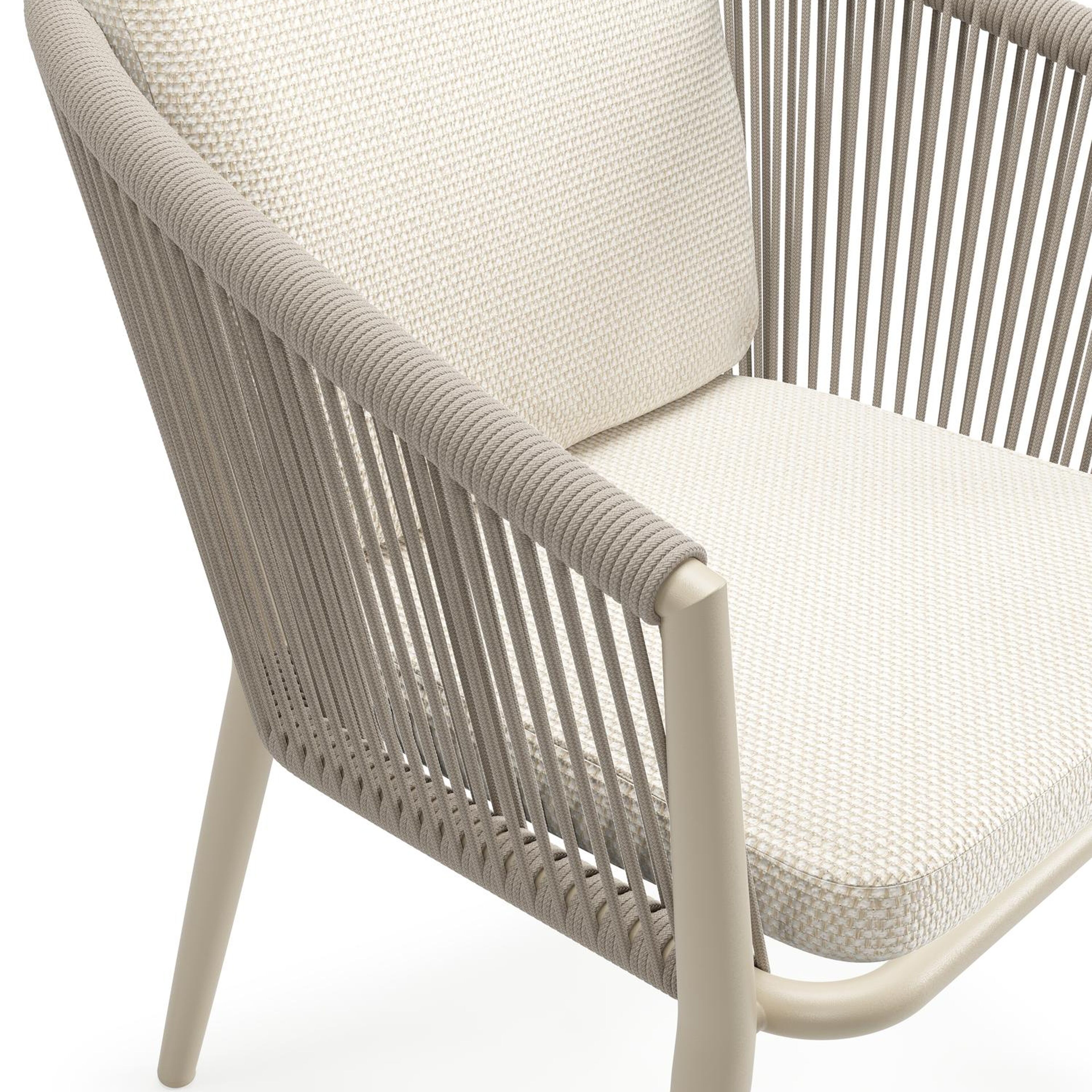 Orso tuinstoel in beige aluminium en beige verticaal geweven ronde rope met luxe zitkussen in All Weather Cosytica Althea Off White | Exterioo tuinmeubelen