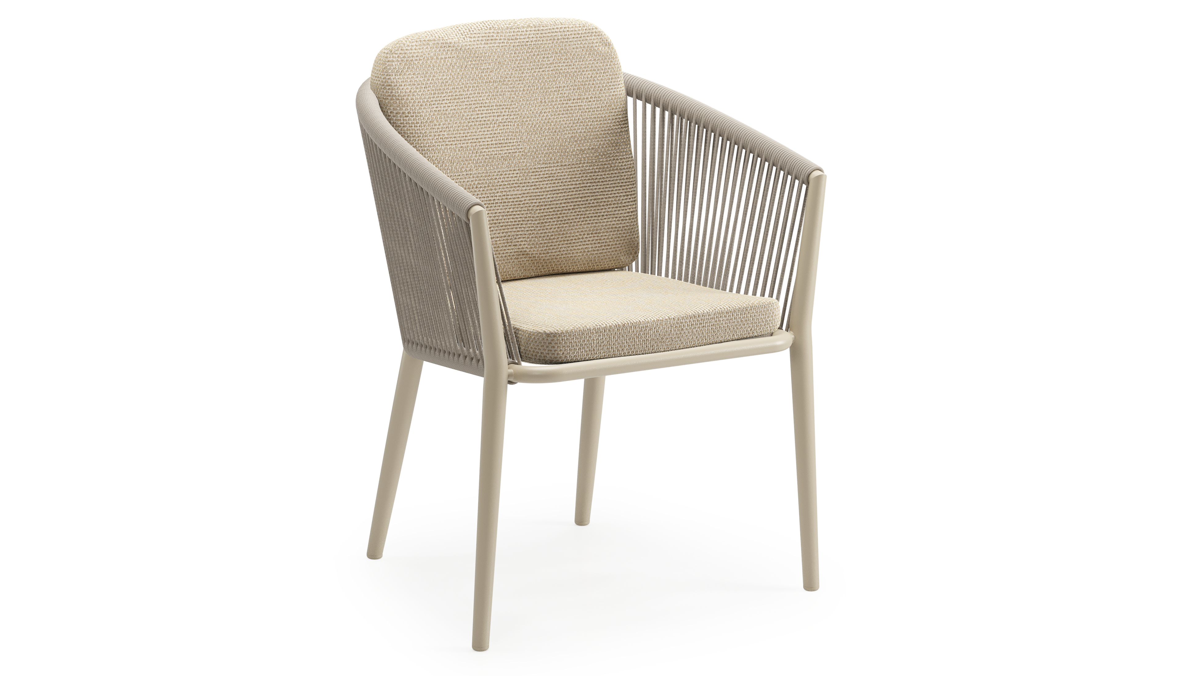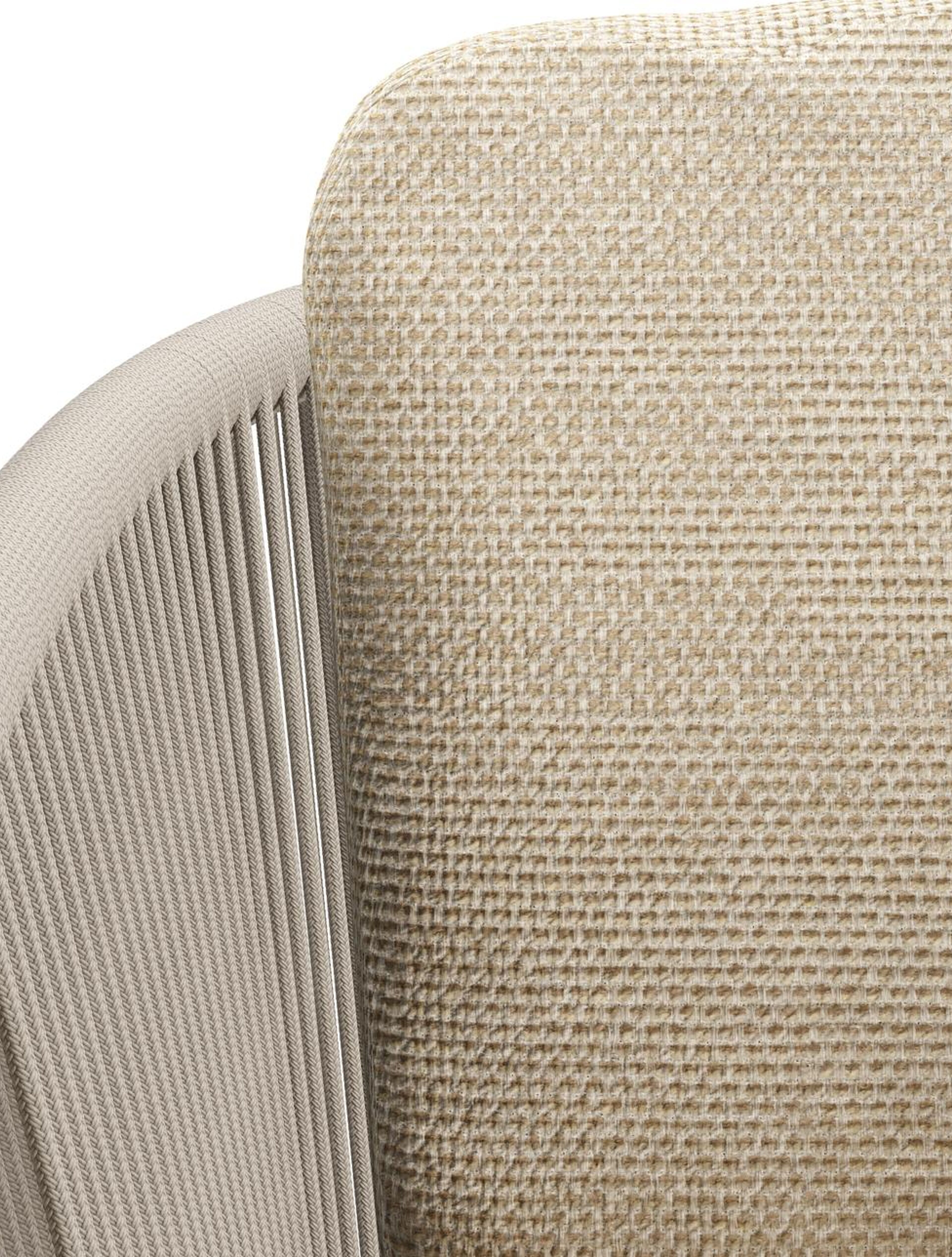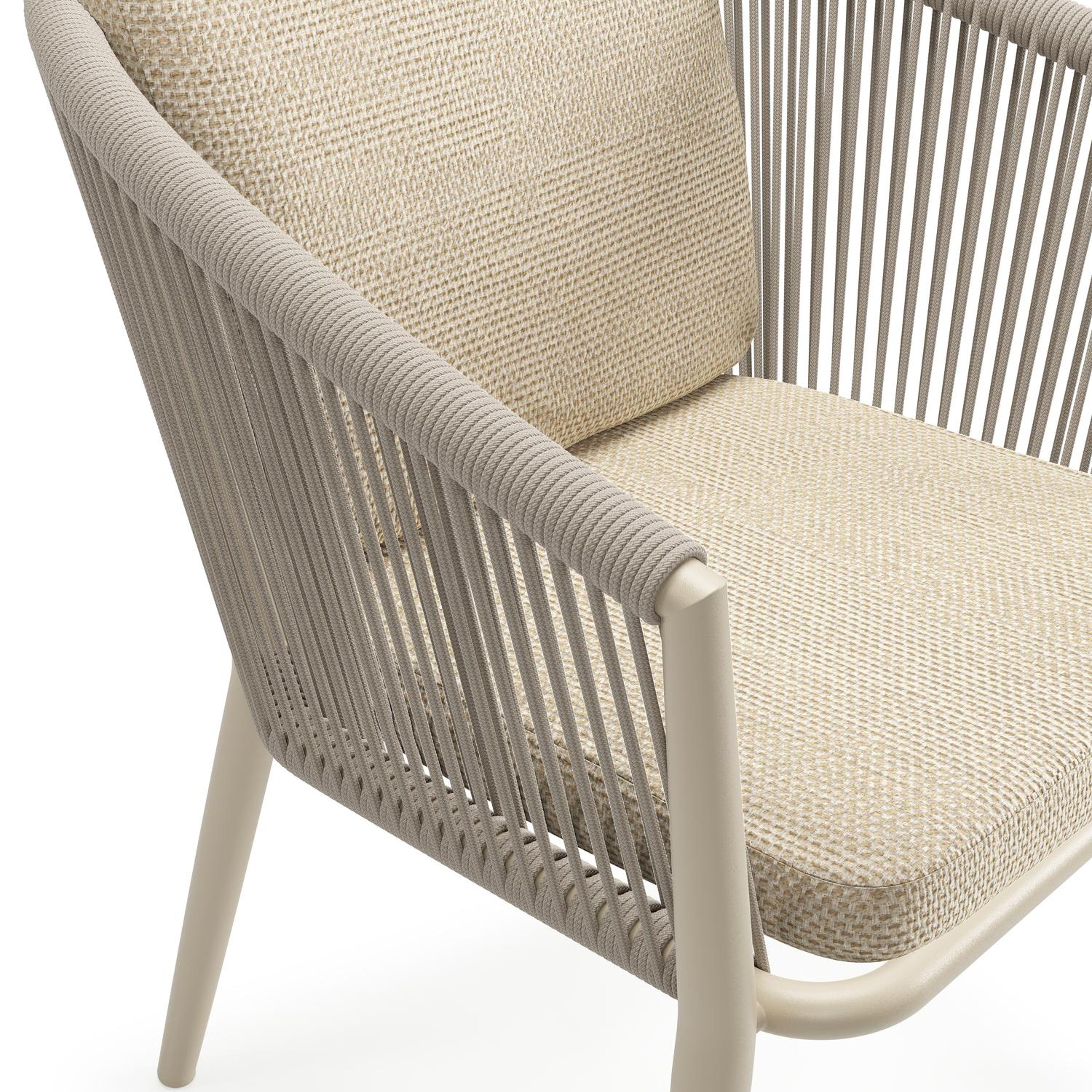 Orso tuinstoel in beige aluminium en beige verticaal geweven ronde rope met luxe zitkussen in All Weather Cosytica Althea Camel | Exterioo tuinmeubelen