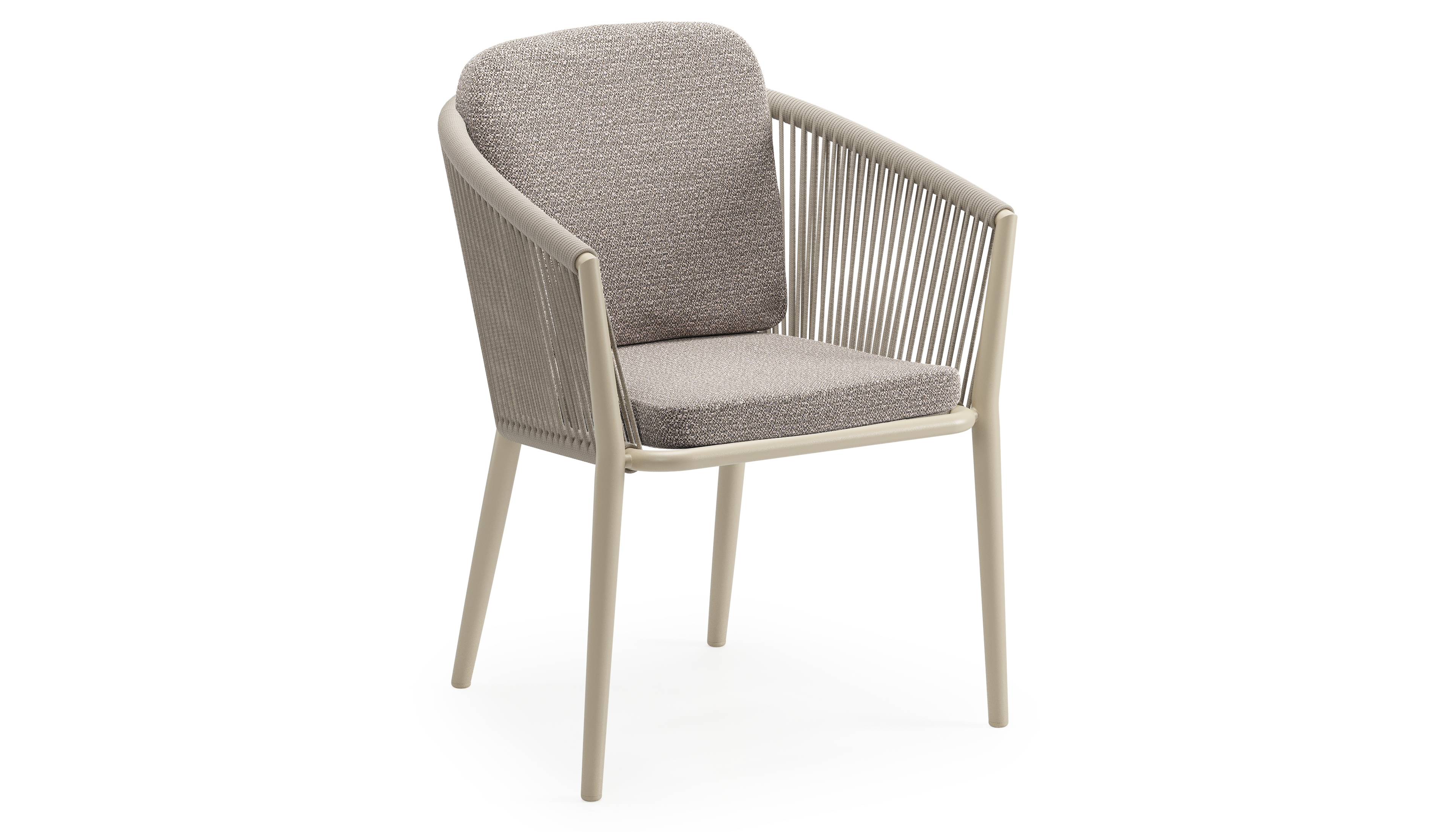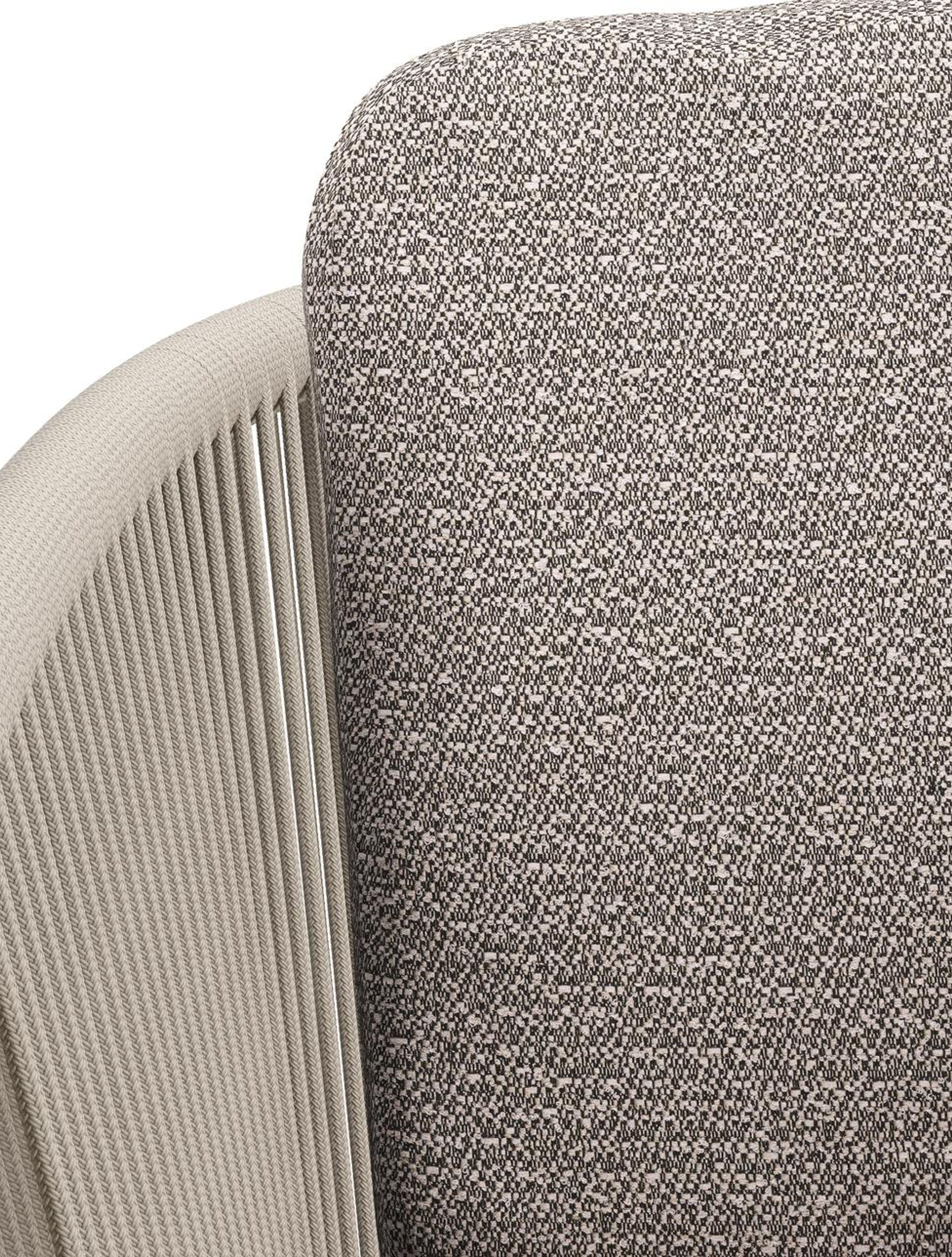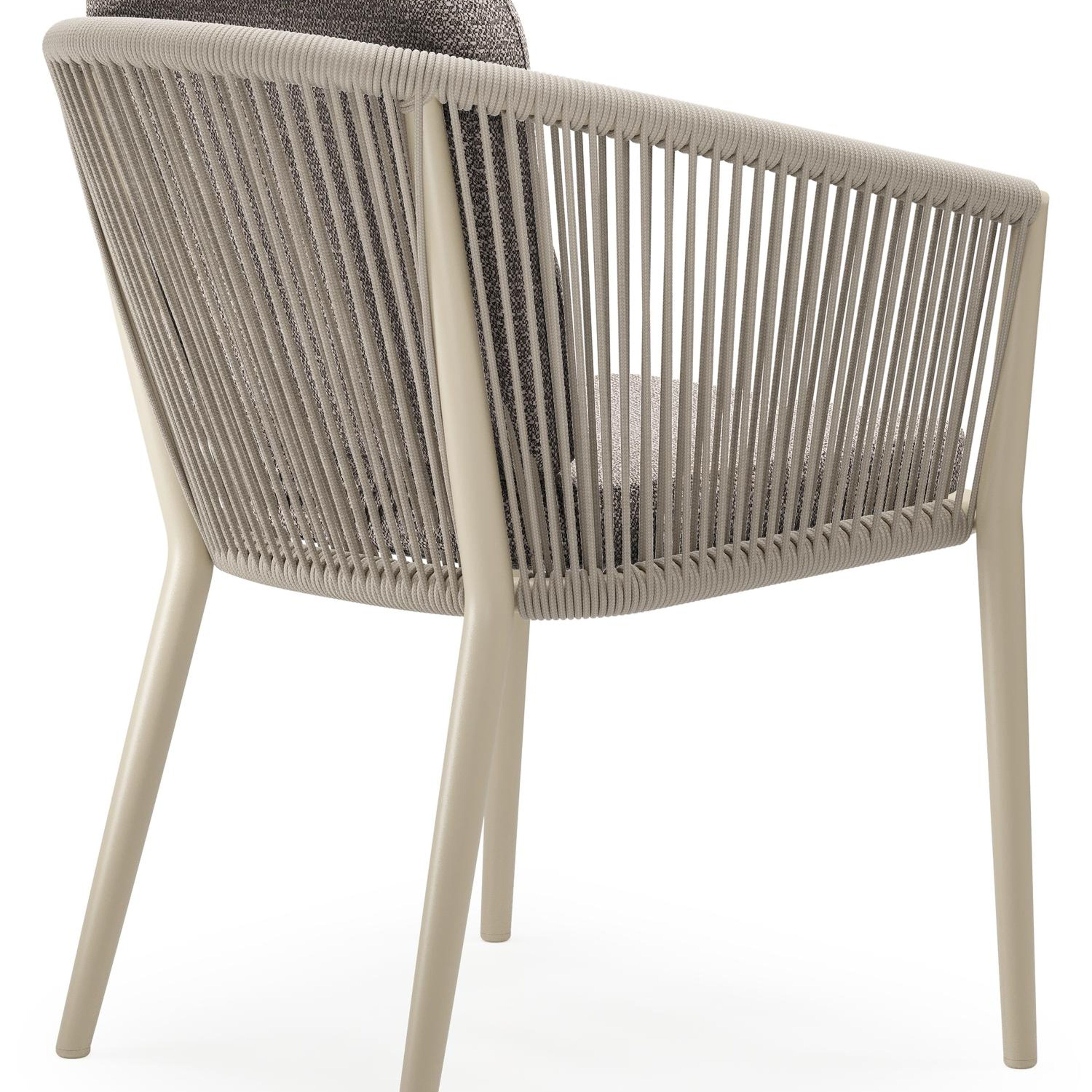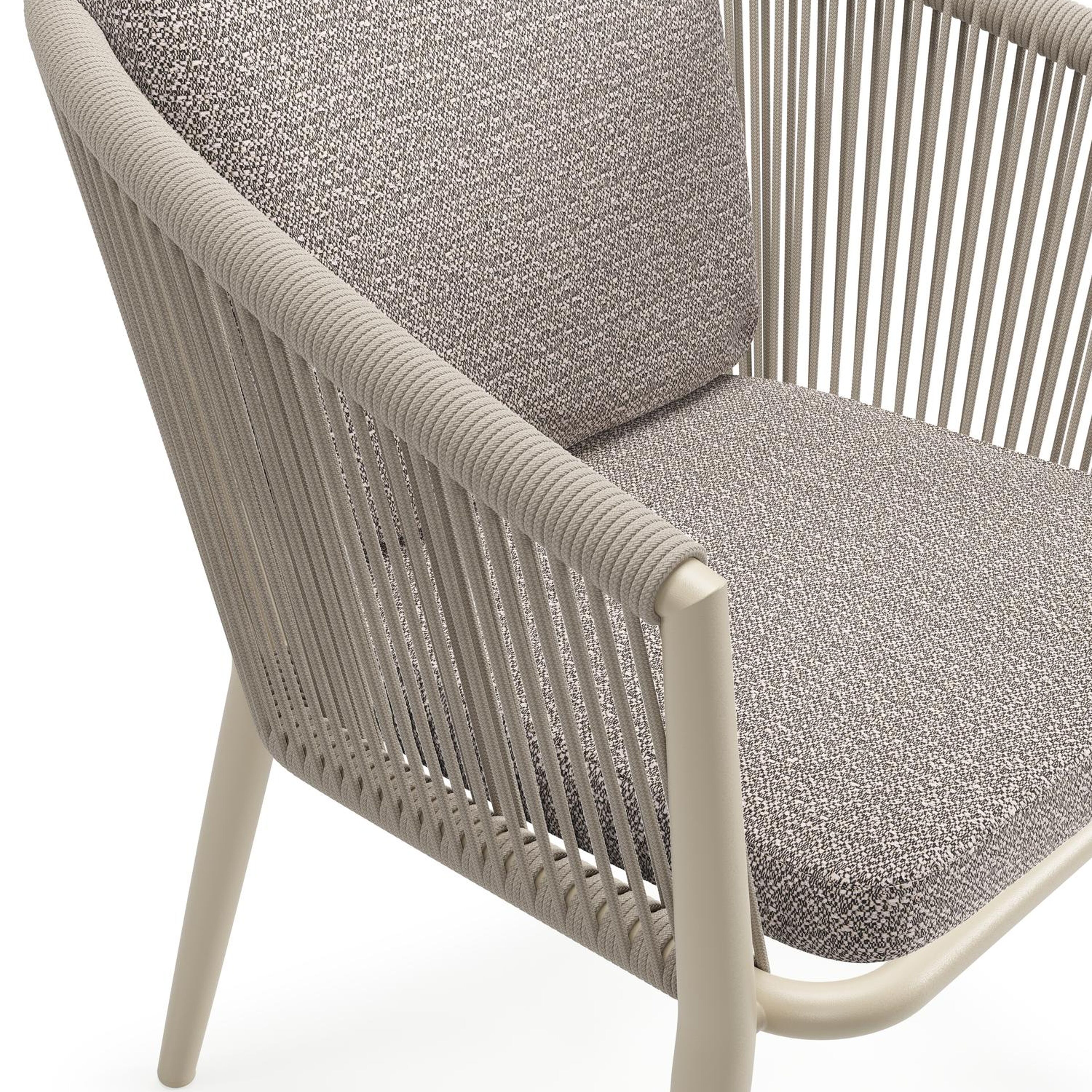 Orso tuinstoel in beige aluminium en beige verticaal geweven ronde rope met luxe zitkussen in All Weather Sunbrella® Luxe Wander Granite | Exterioo tuinmeubelen