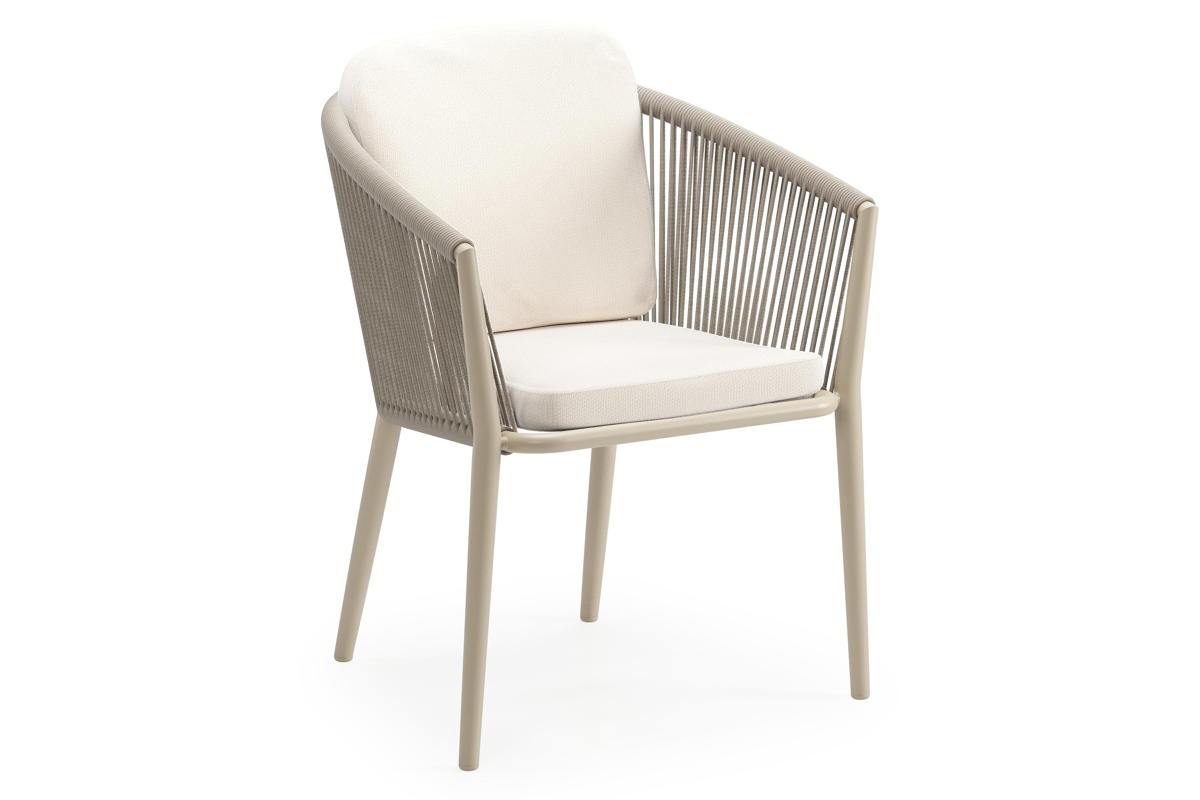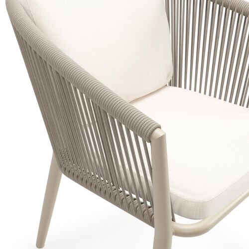 Orso tuinstoel in beige aluminium en beige verticaal geweven ronde rope met luxe zitkussen in All Weather Sunbrella® Luxe Lopi Snow | Exterioo