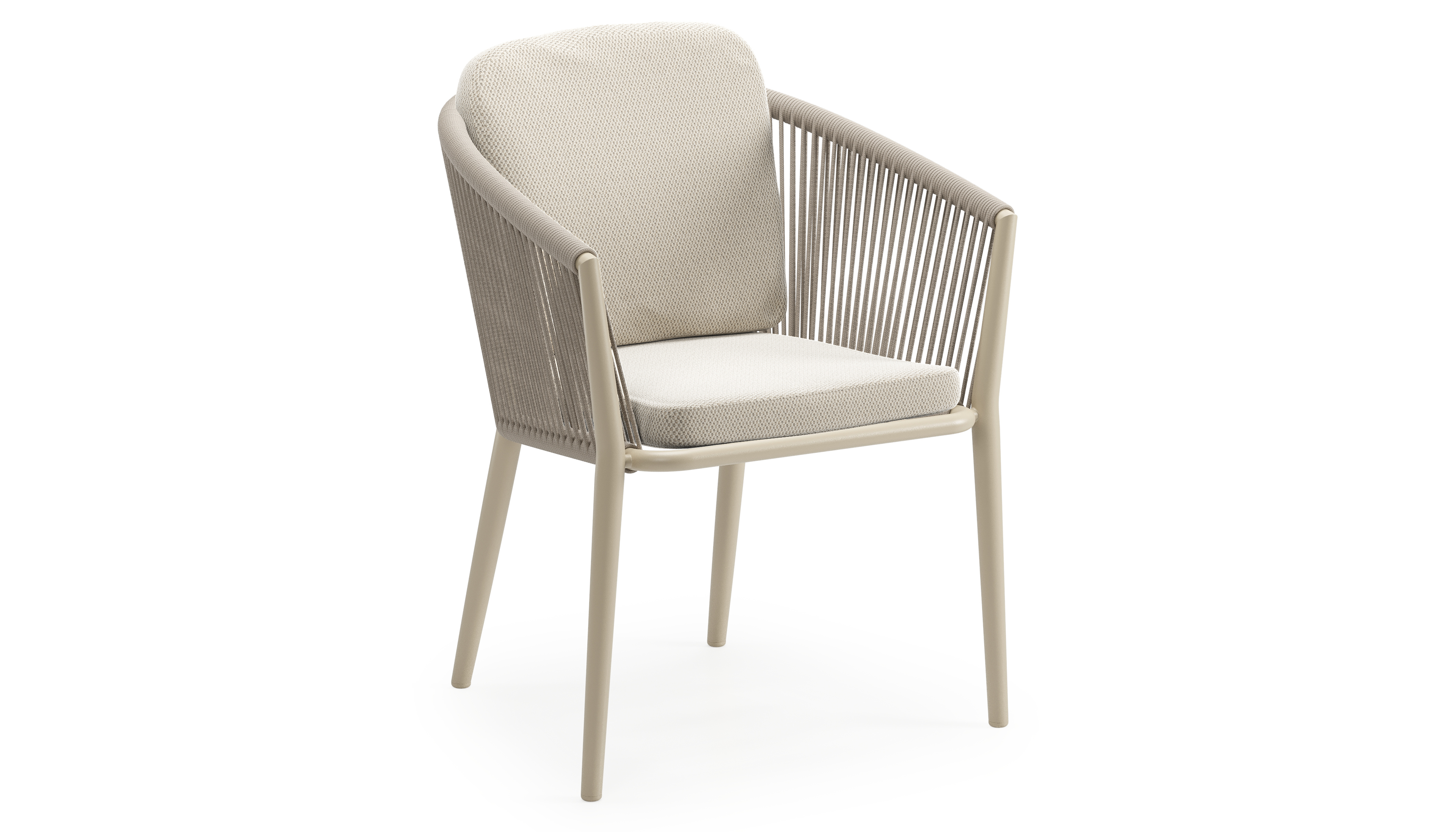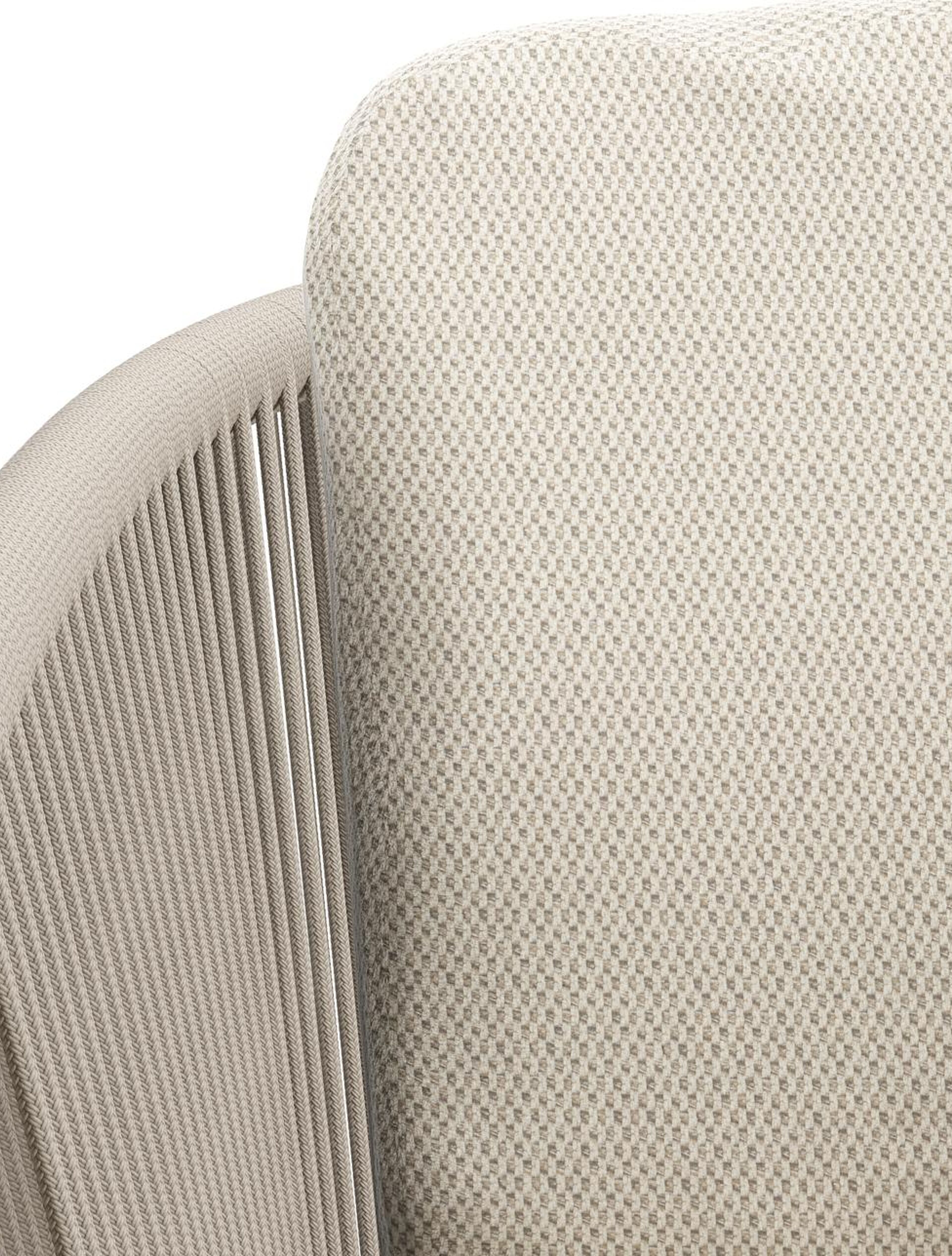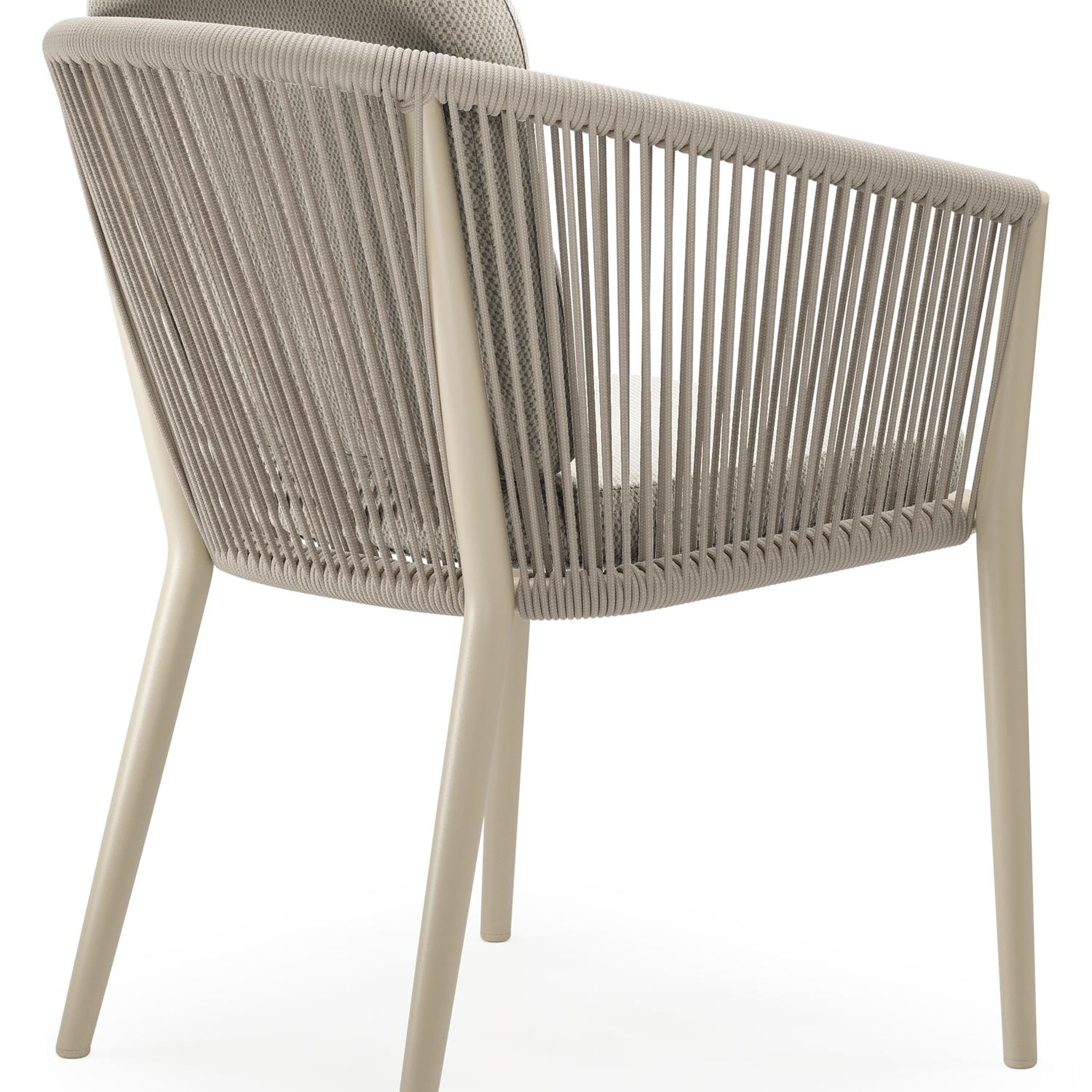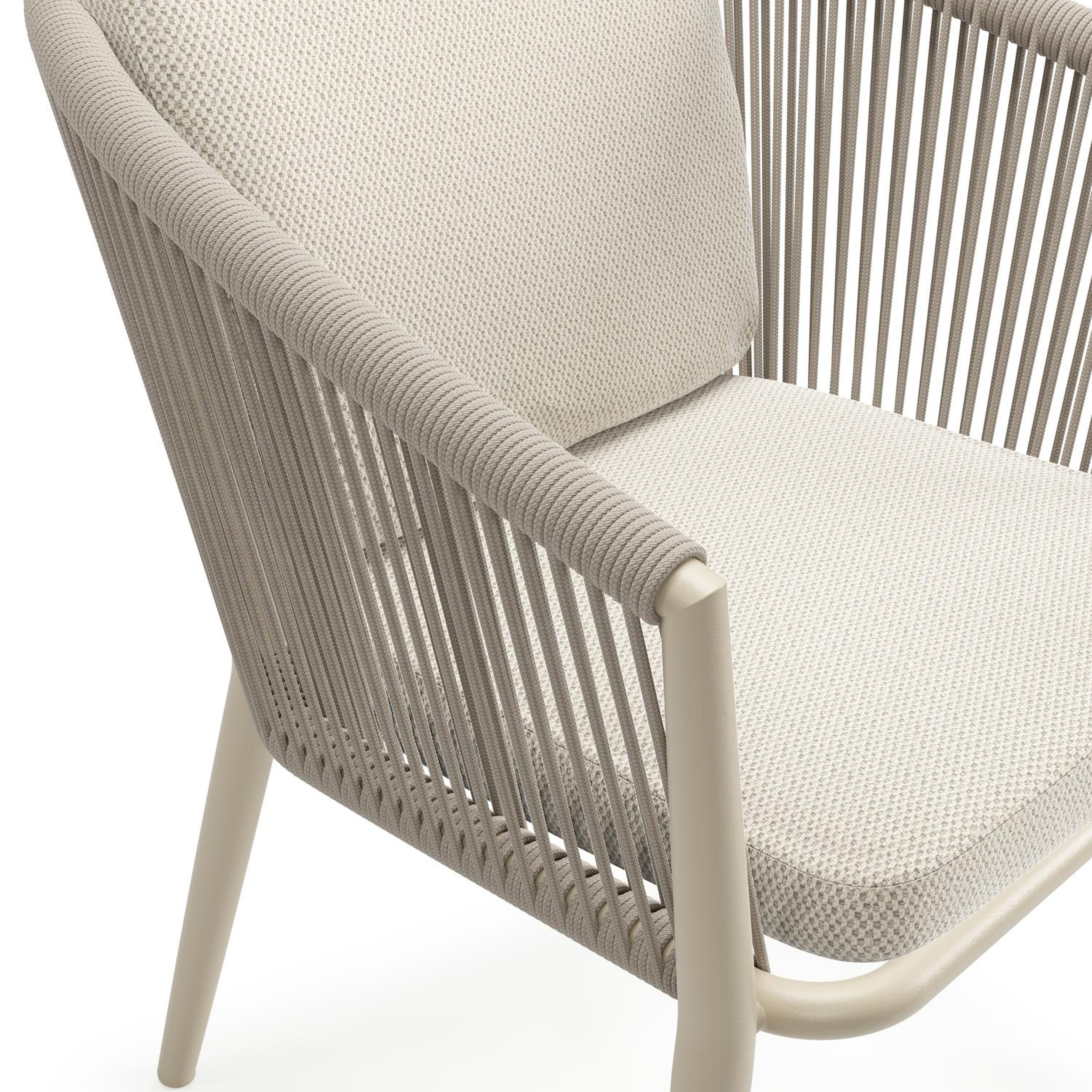 Orso tuinstoel in beige aluminium en beige verticaal geweven ronde rope met luxe zitkussen in All Weather Sunbrella® Luxe Lopi Marble | Exterioo tuinmeubelen