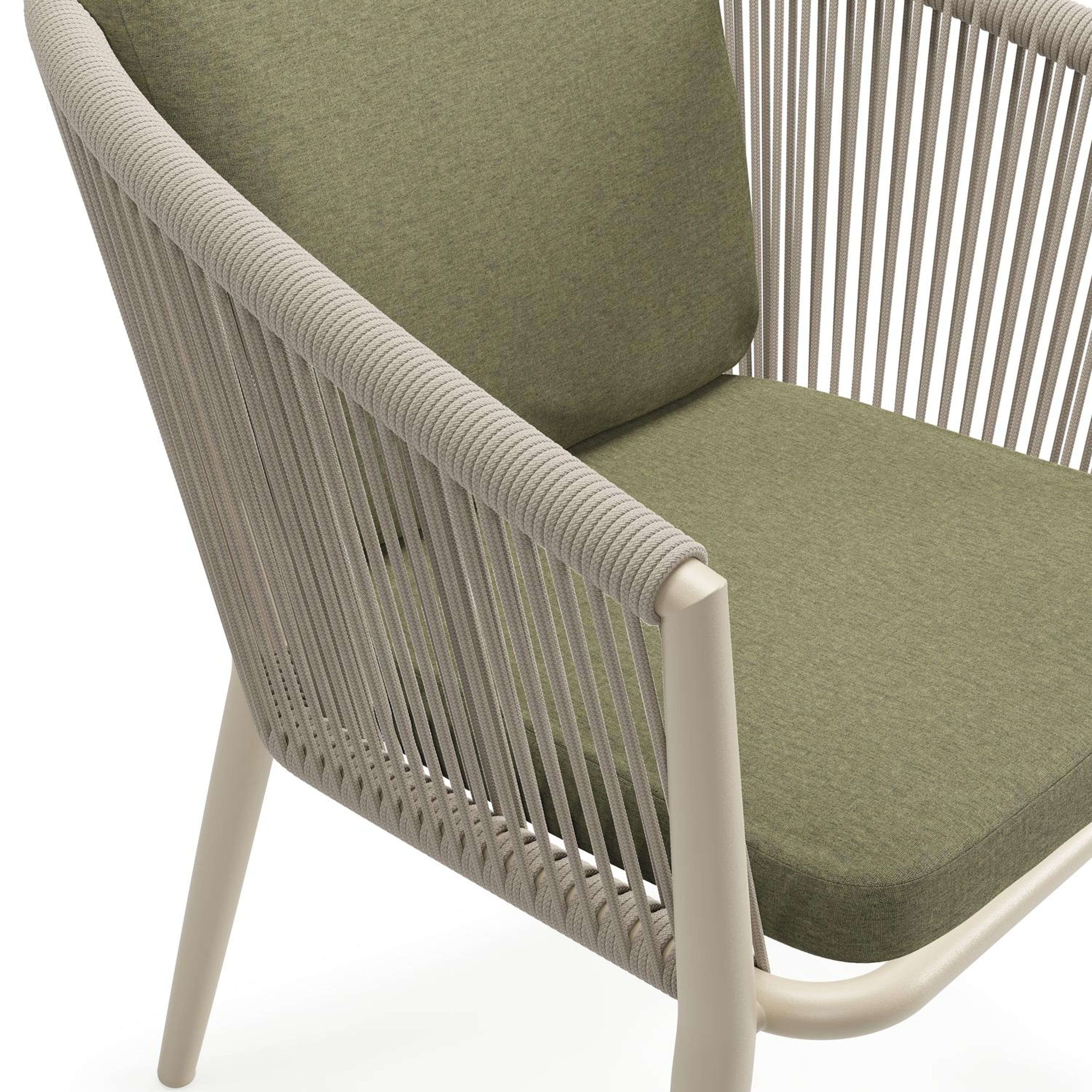 Rope is een meerlagige synthetische draad. Het weerbestendige materiaal heeft een unieke uitstraling en voelt zacht aan. Rope staat gekend als onderhoudsvriendelijk, stevig en erg comfortabel. Rope heeft een ronde vorm waardoor organische vormen geaccentueerd worden en je een natuurlijk gevoel krijgt.