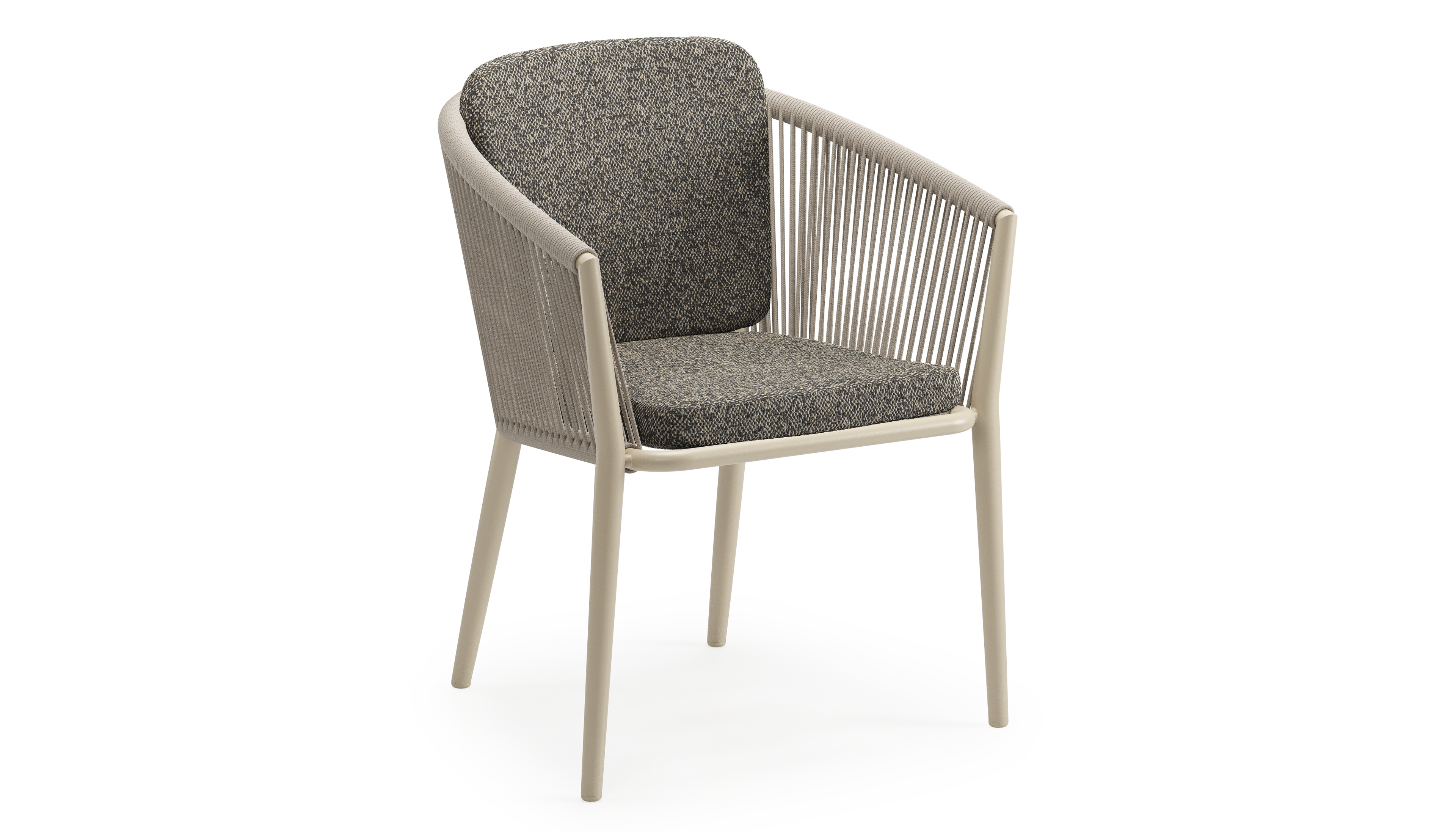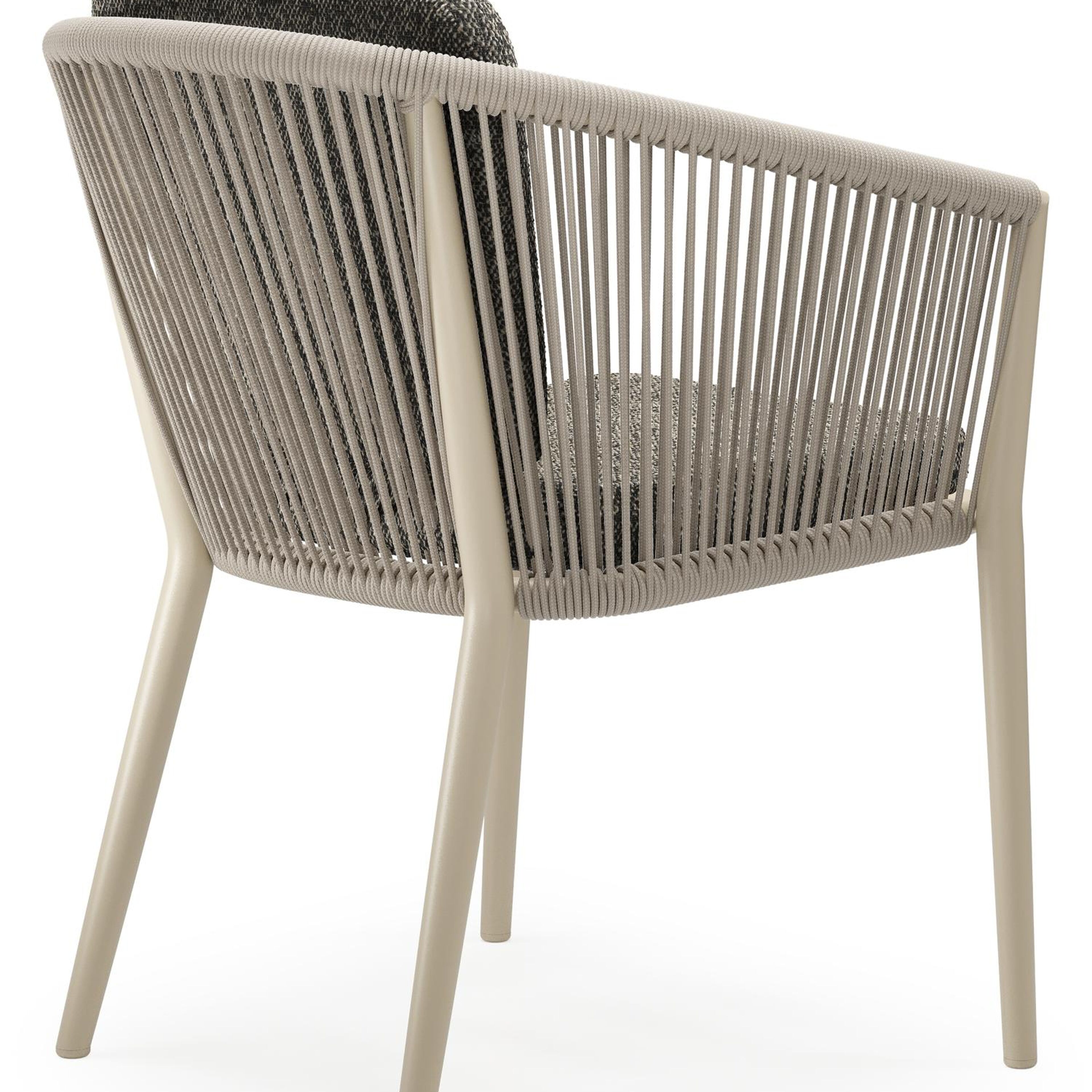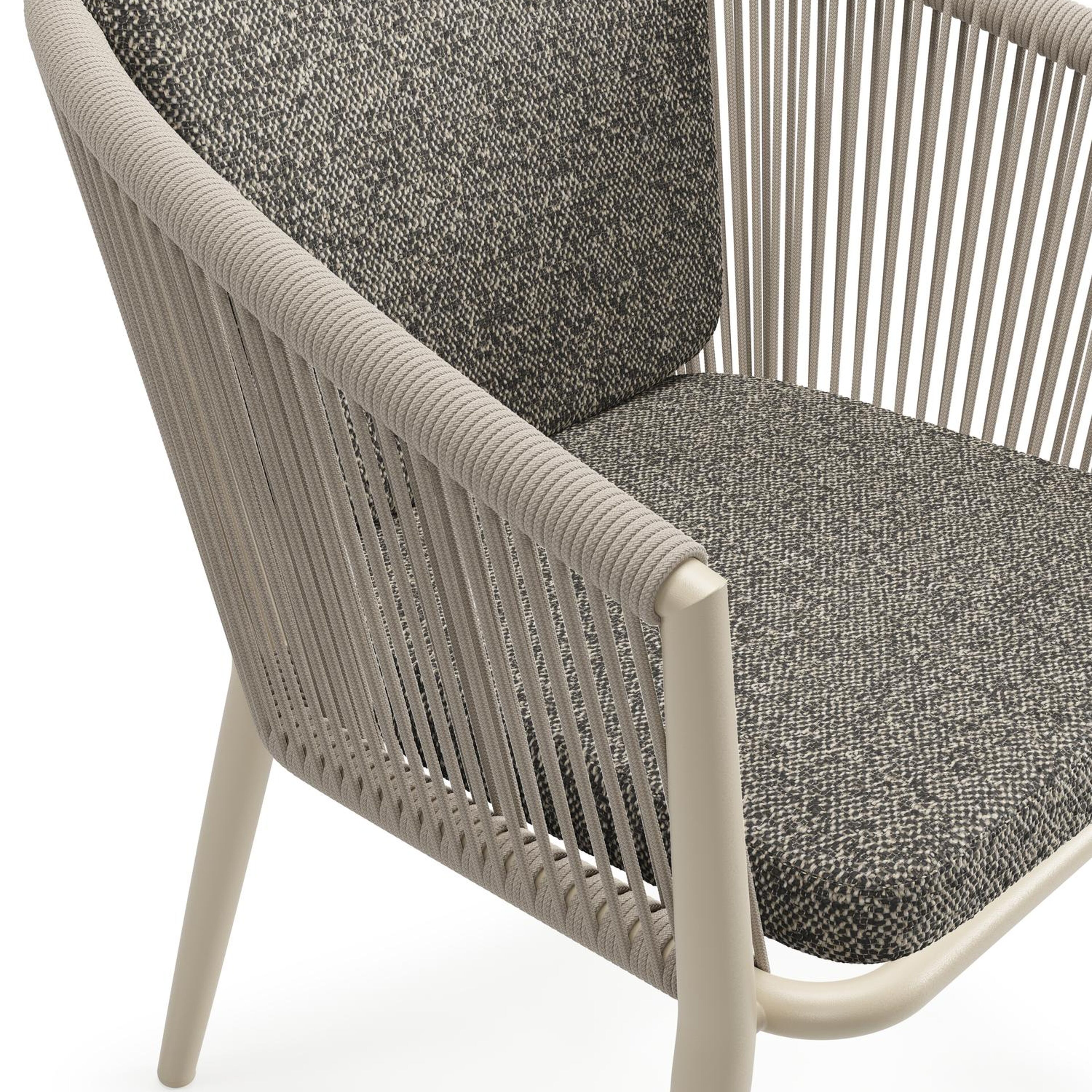 Orso tuinstoel in beige aluminium en beige verticaal geweven ronde rope met zitkussen in All Weather Cosytica Marbella Tunder | Exterioo tuinmeubelen