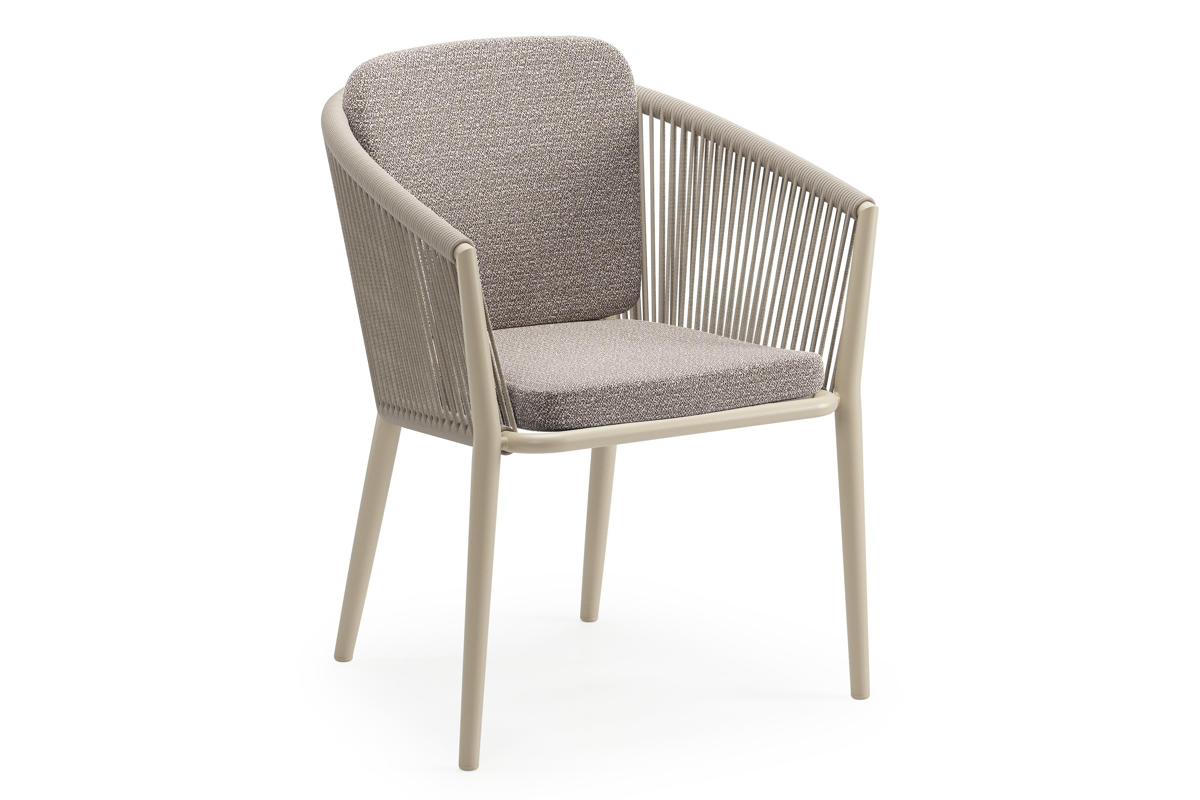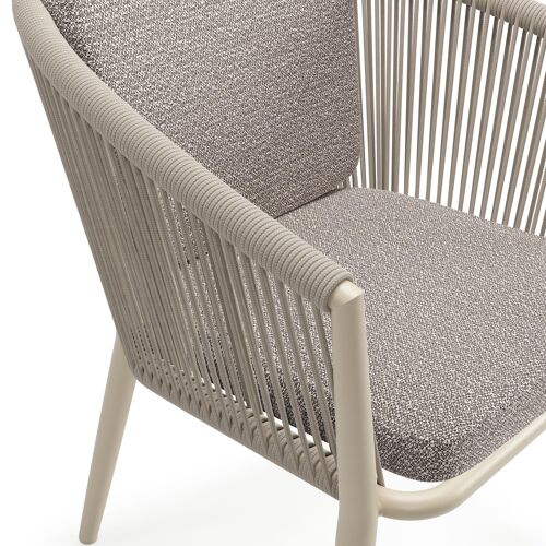Orso tuinstoel in beige aluminium en beige verticaal geweven ronde rope met zitkussen in All Weather Sunbrella® Luxe Wander Granite | Exterioo