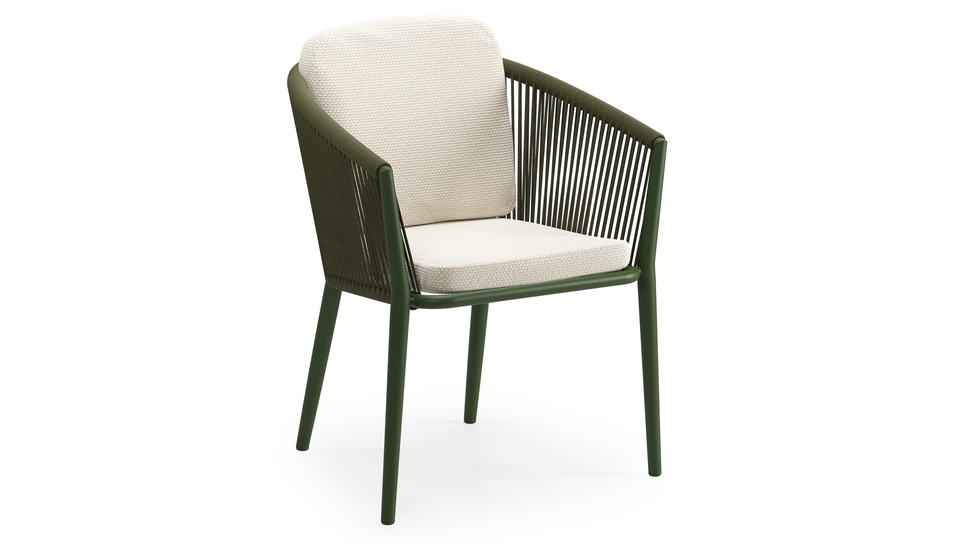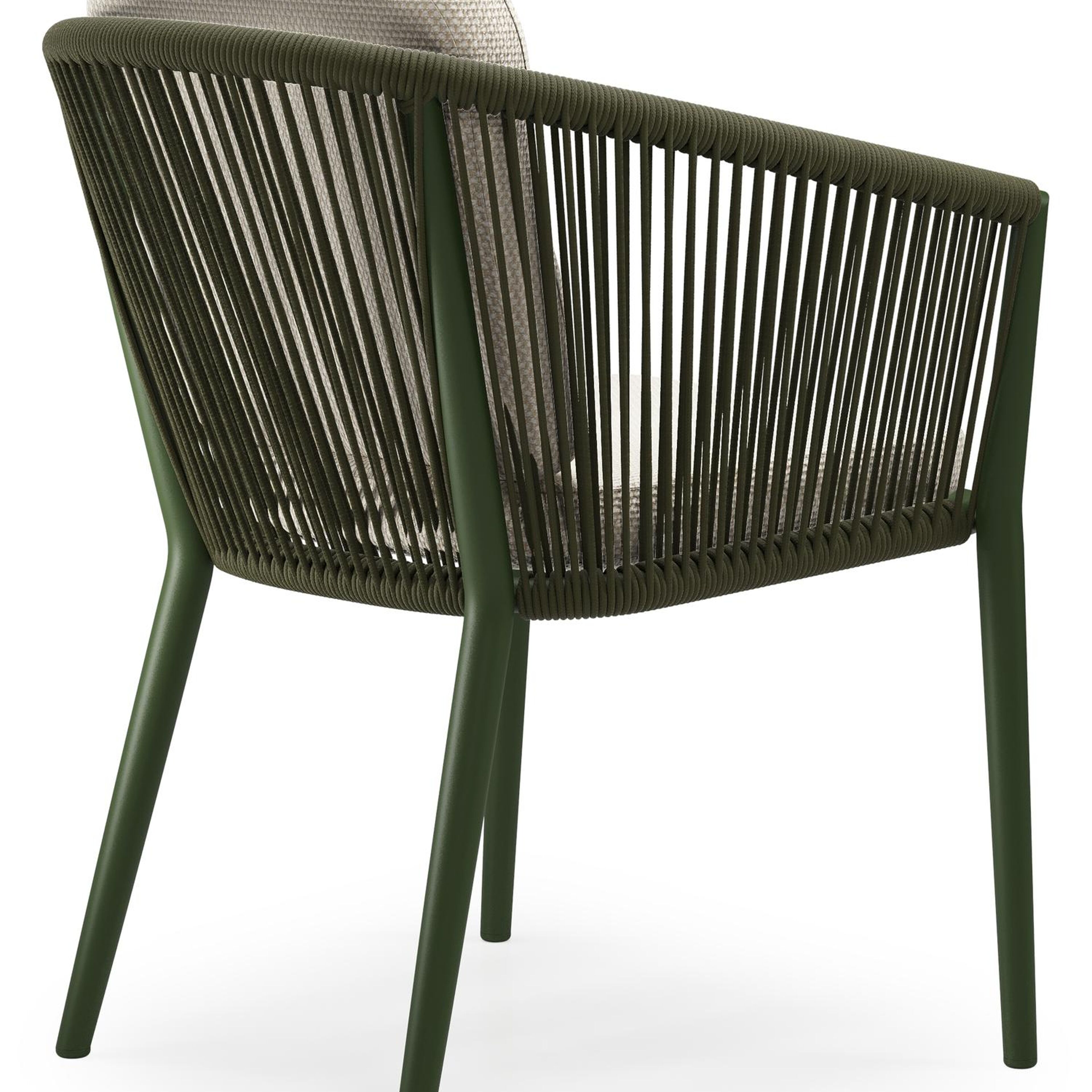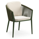Orso tuinstoel in groen aluminium en groen verticaal geweven ronde rope met luxe zitkussen in All Weather Cosytica Althea Off White | Exterioo tuinmeubelen