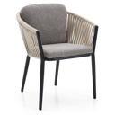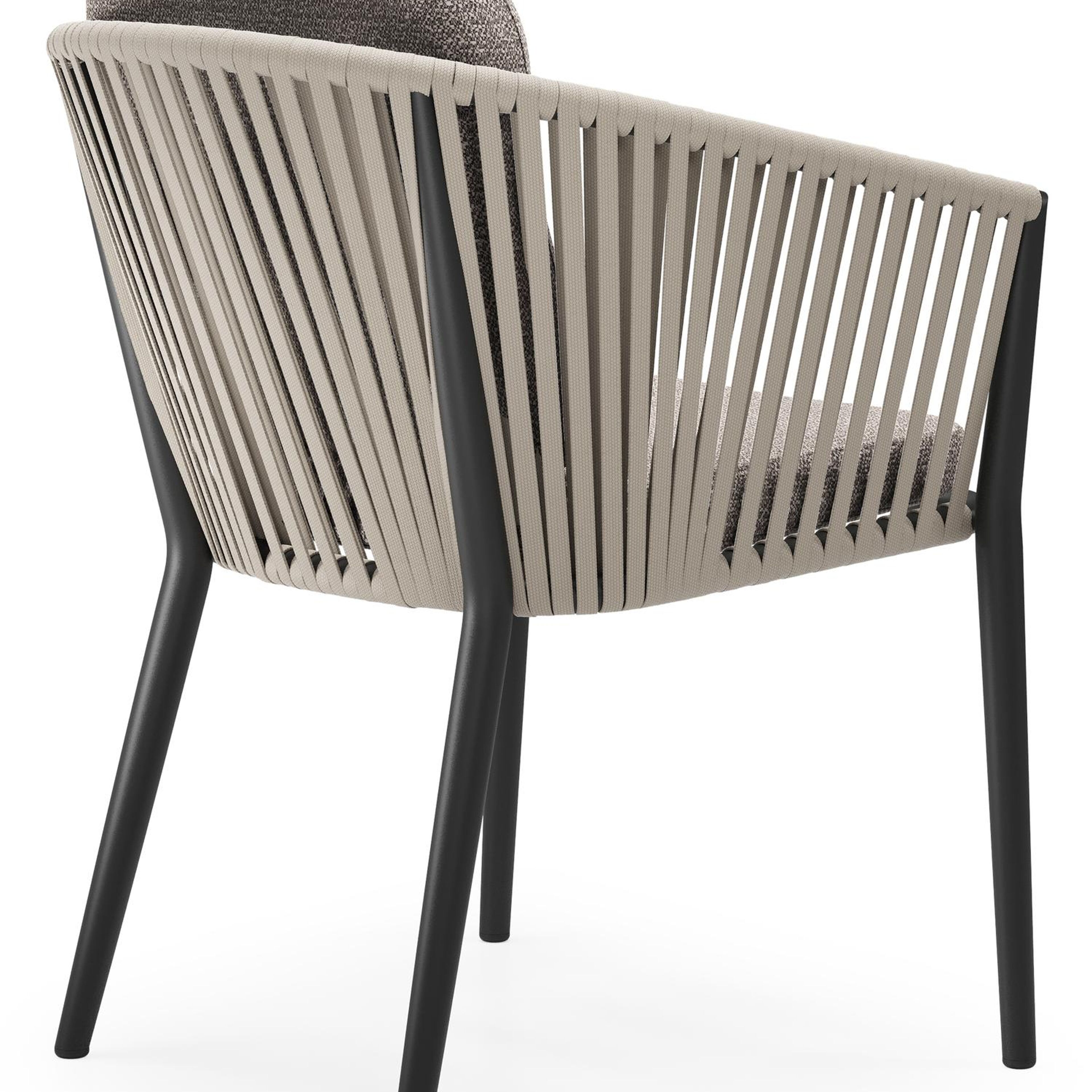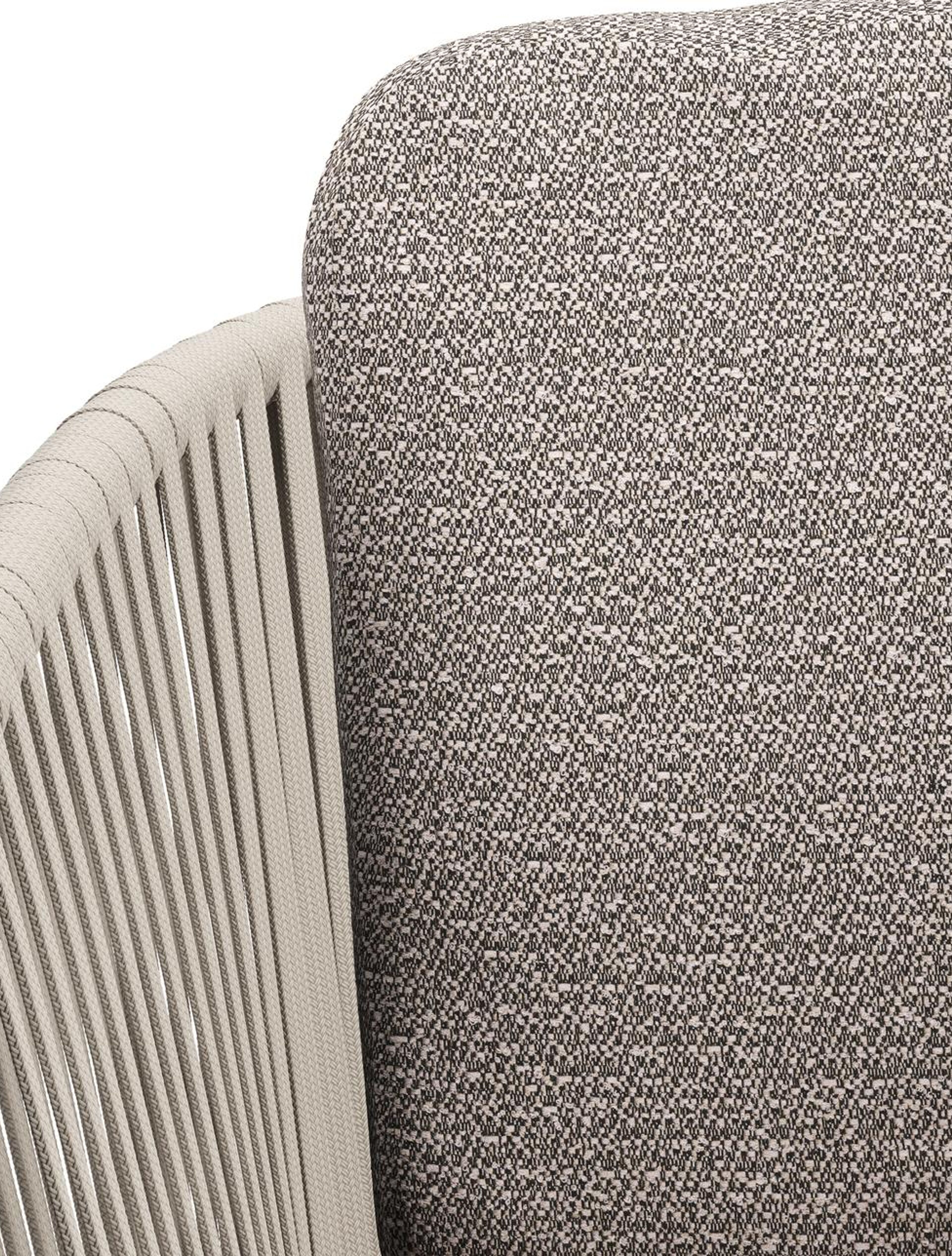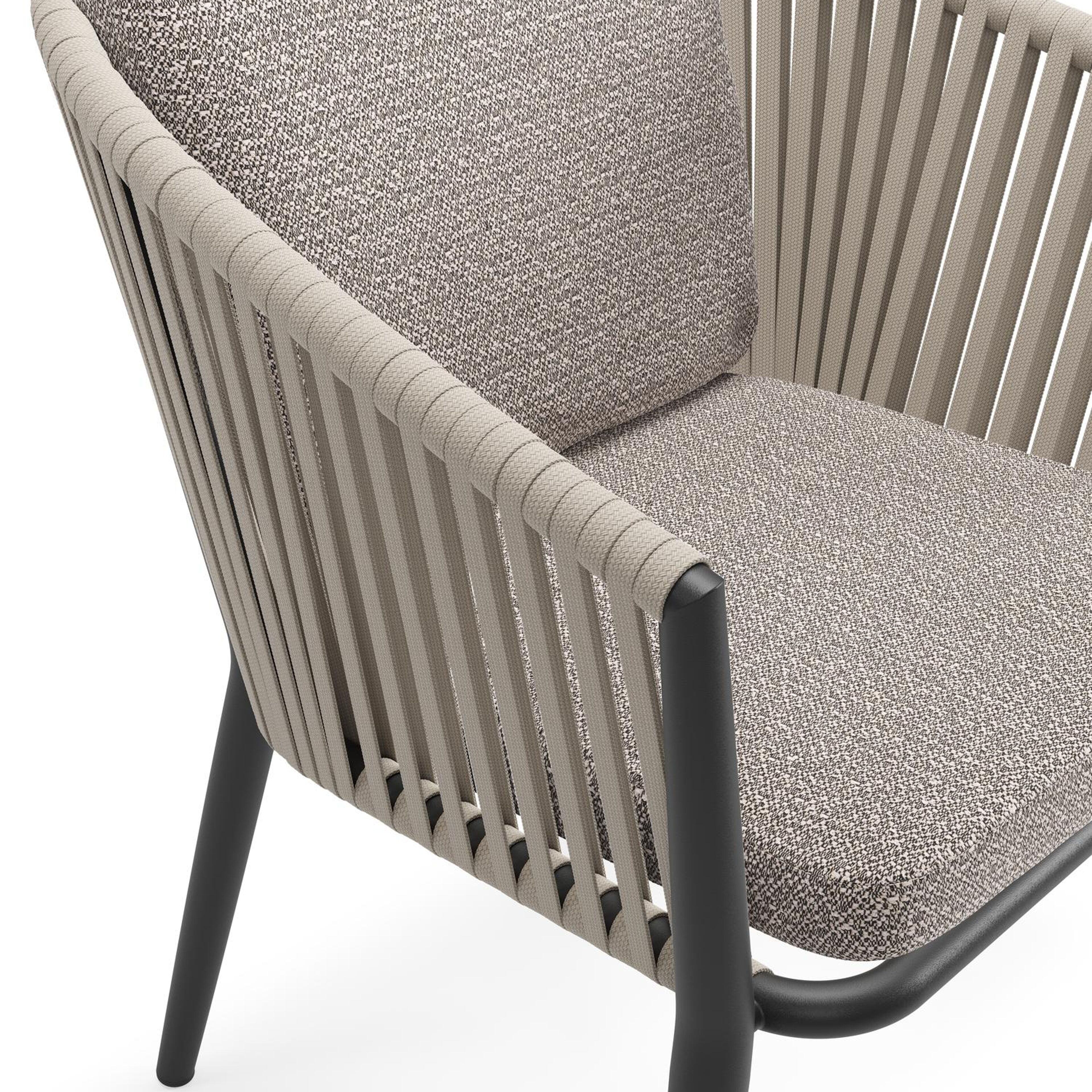 Orso tuinstoel in beige aluminium en beige verticaal geweven vlakke rope met kussen in All Weather Sunbrella® Luxe Wander Granite | Exterioo tuinmeubelen