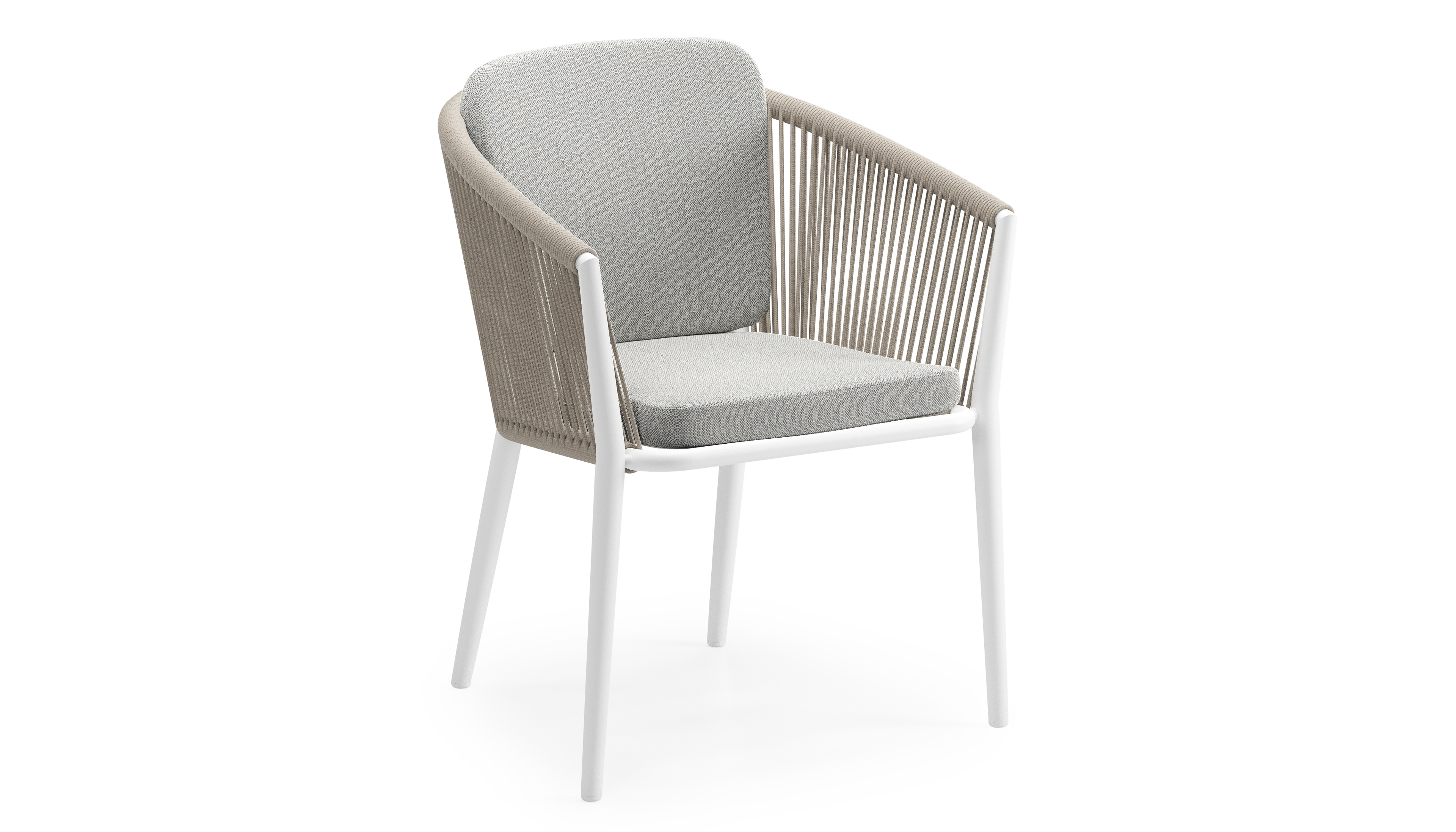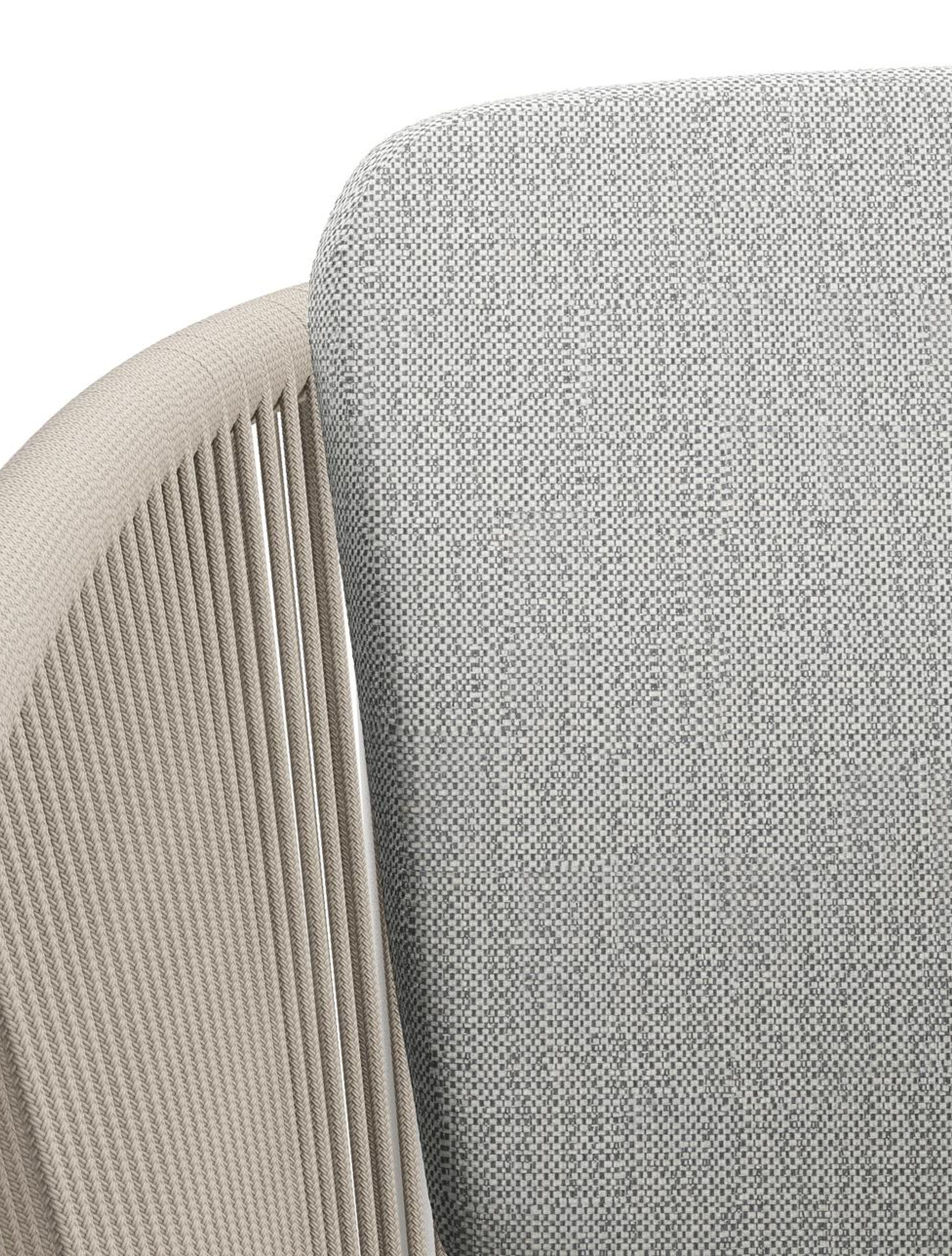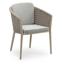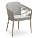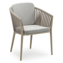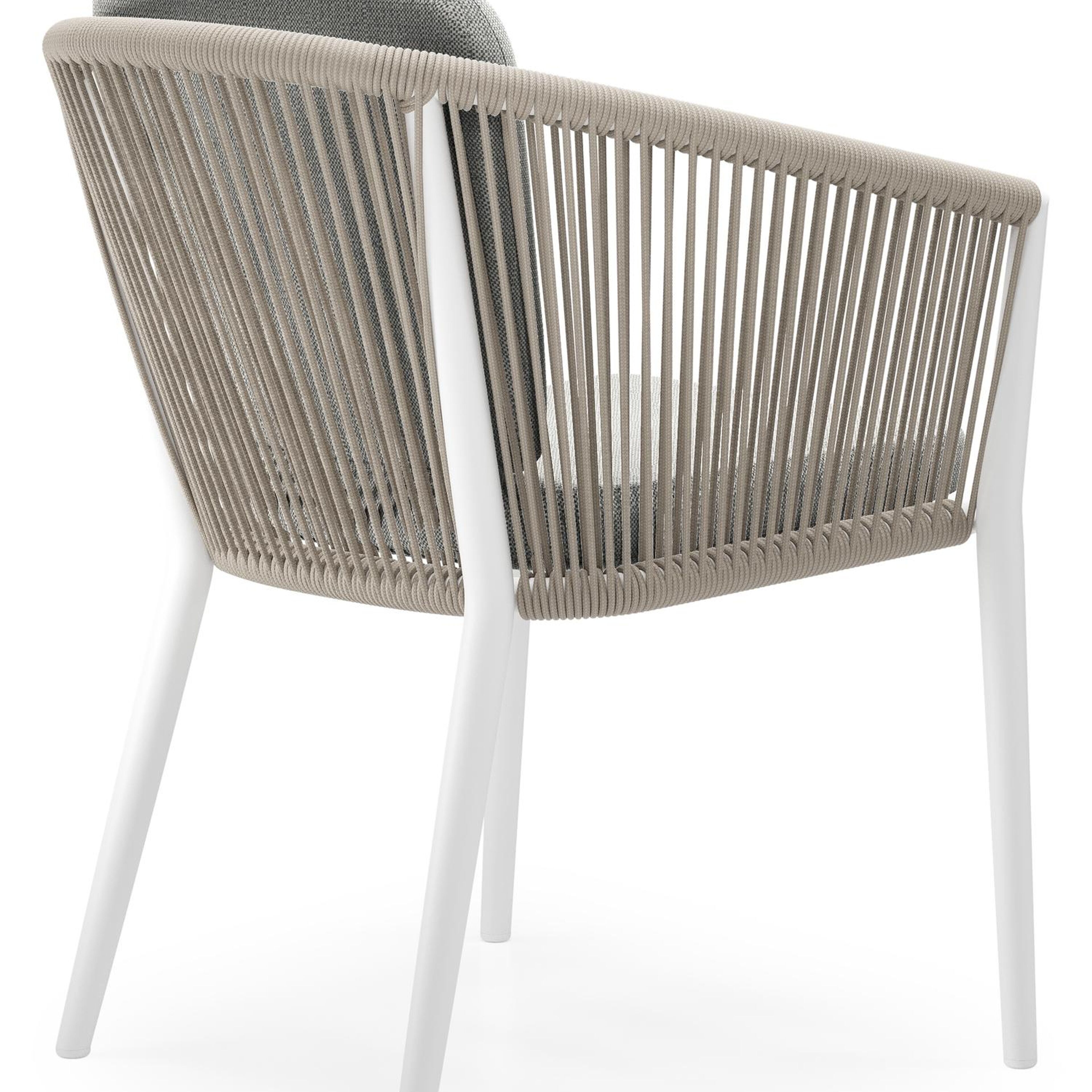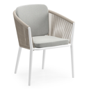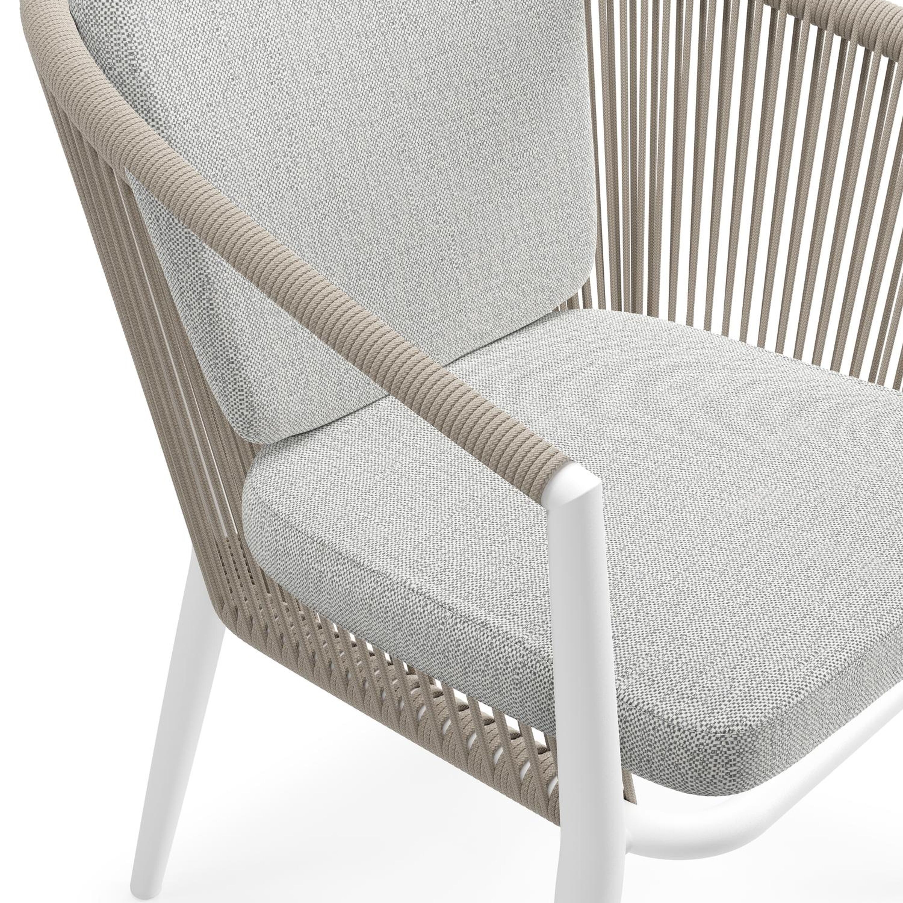 Orso tuinstoel in wit aluminium en beige verticaal geweven ronde rope met kussen in savane nimbus all weather sunbrella® luxe | Exterioo tuinmeubelen