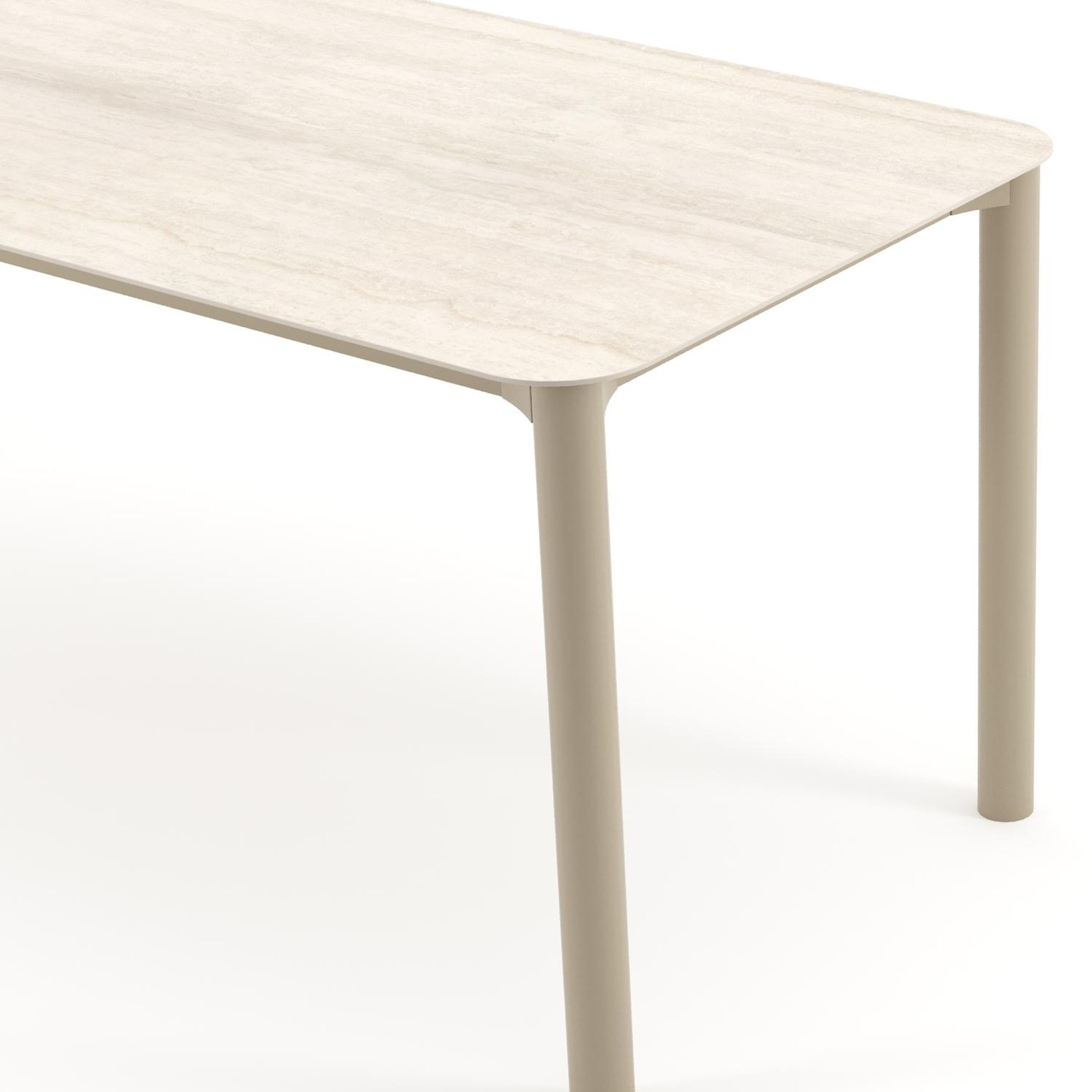 Orso tuintafel rechthoekig afgerond in beige aluminium en volkeramiek Travertino Bianco - L 200 x B 80 x H 74.5 cm | Exterioo tuinmeubelen