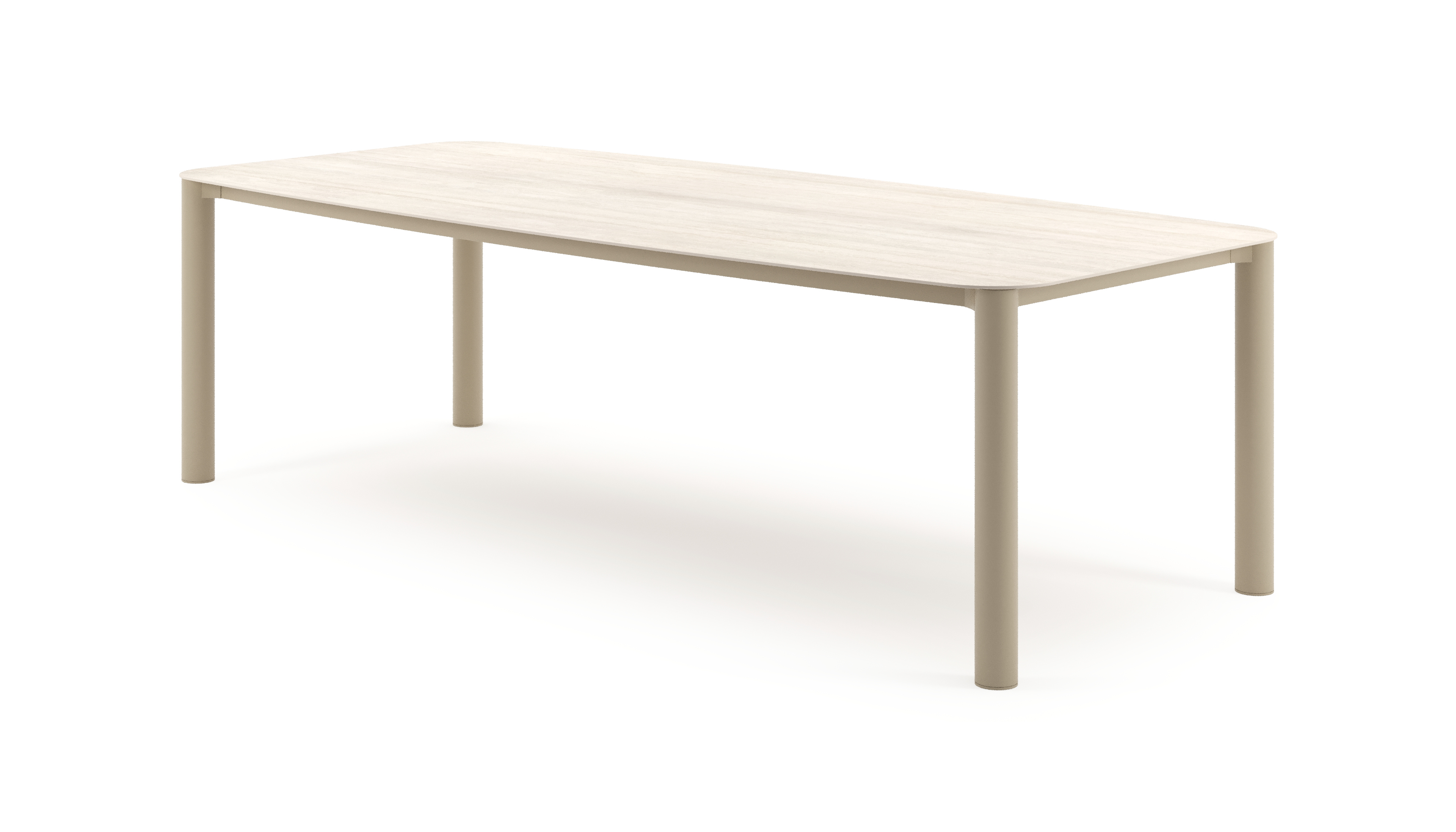De Orso tuintafel, is een ware blikvanger voor je buitenruimte. De ronde poten en het afgerond rechthoekig tafelblad, waarbij de zijden subtiel over de poten zweeft, geeft de tafel een hedendaags natuurlijk design.