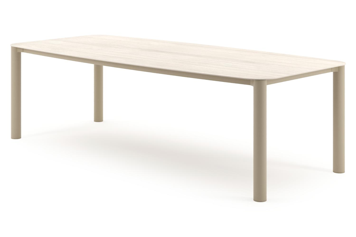 Orso tuintafel bootvorm in beige aluminium en volkeramiek Travertino Bianco - L 255 x B 115 x H 74.5 cm | Exterioo